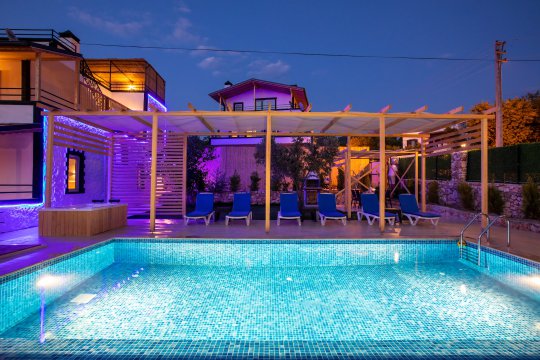 Antalya Kaş'ın Hacıoğlan bölgesinde bulunan 4 kişi kapasiteli havuz alanı korunaklı tatil villamızdır. Çocuk havuzu bulunan villamızda çocuk misafirlerimiz için çocuk oyun alanı yer almaktadır. Bahçesi bulunan villamızda jakuzi yer almaktadır. Villamız çekirdek aile gruplarımız ve balayı çiftlerimiz için oldukça uygundur.Tatiliniz boyunca ihtiyacınız olan tüm araç ve gereçler villamızda bulunmaktadır.