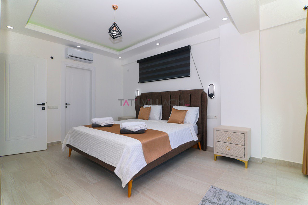 Modern ve zarif detaylarla döşenmiş bu özel villa, üç süit yatak odasıyla toplamda altı kişiye kadar konaklama imkânı sunar. Her odada kendinizi özel hissedeceğiniz, kaliteli mobilyalarla dekore edilmiş bir ambiyans sizleri bekliyor. Geniş bir oturma alanı, tam donanımlı mutfak ve günün her anını keyifli kılacak bir açık hava yaşam alanı ile Villa Adilya, tatil anlayışınızı bir üst seviyeye taşıyor.