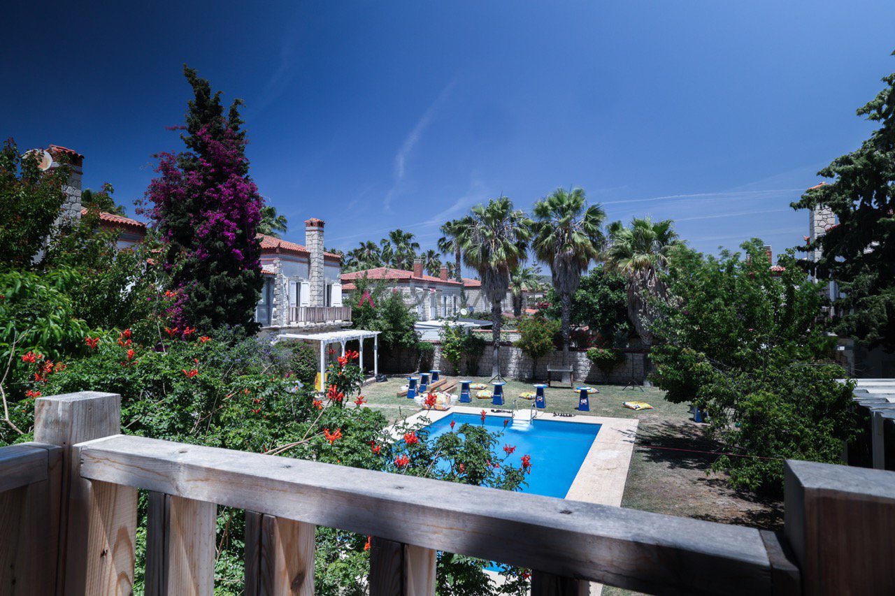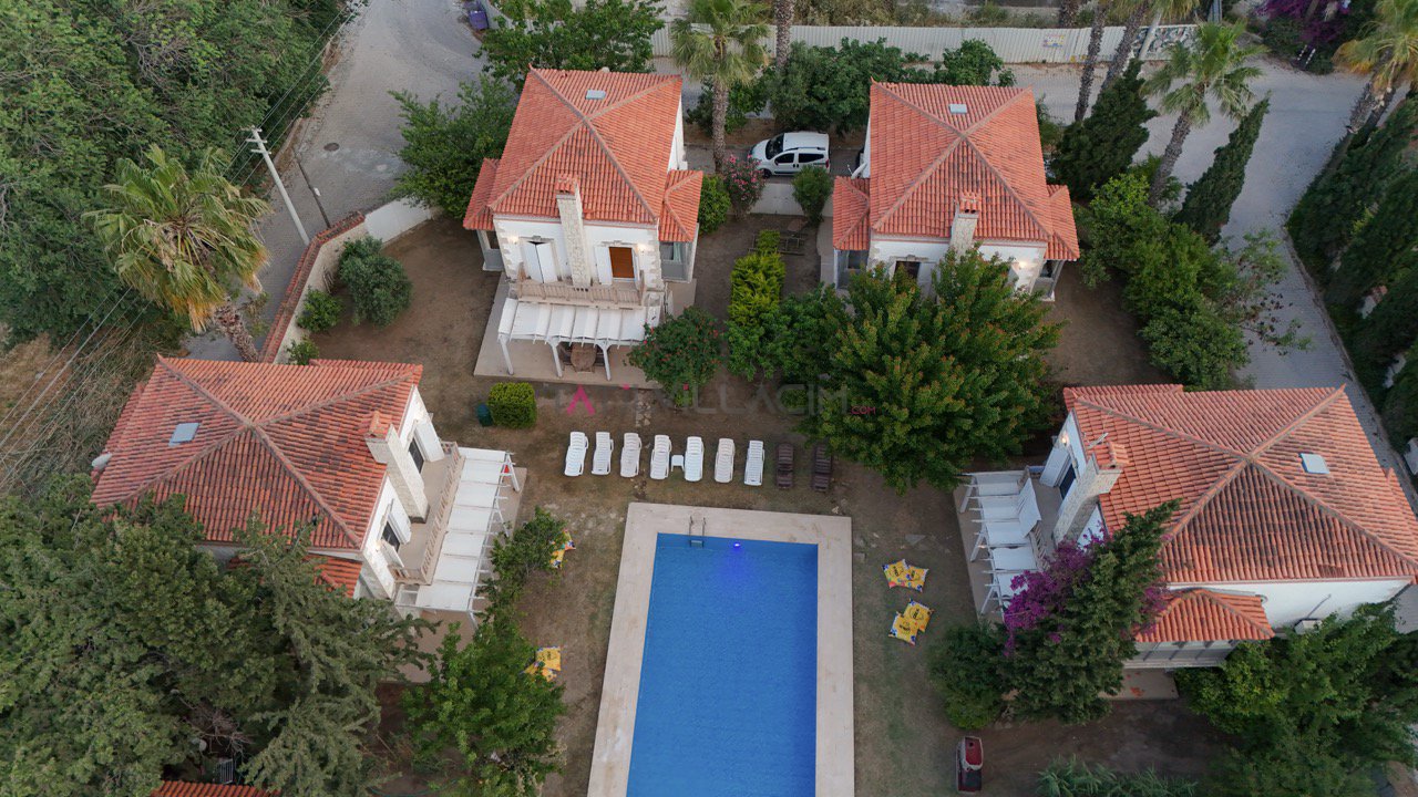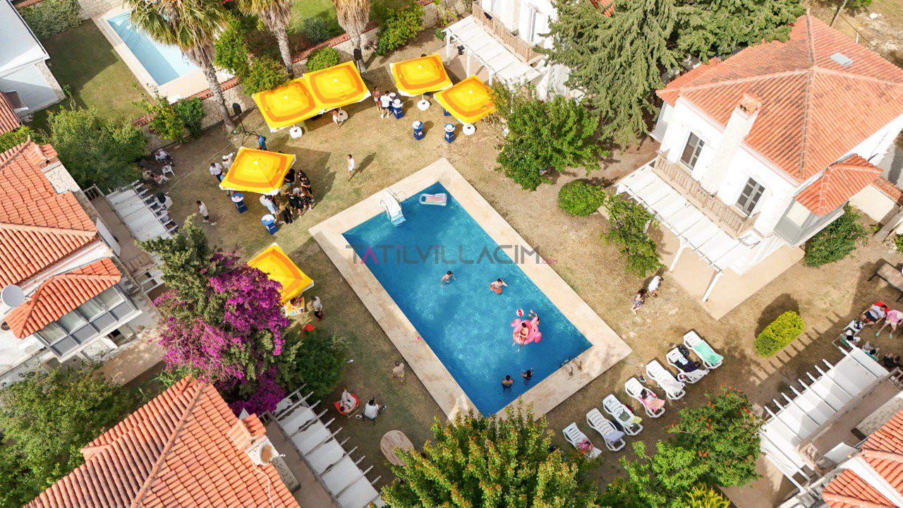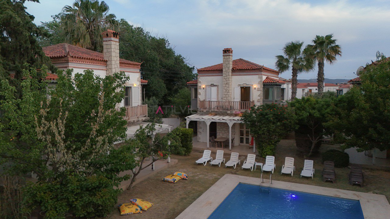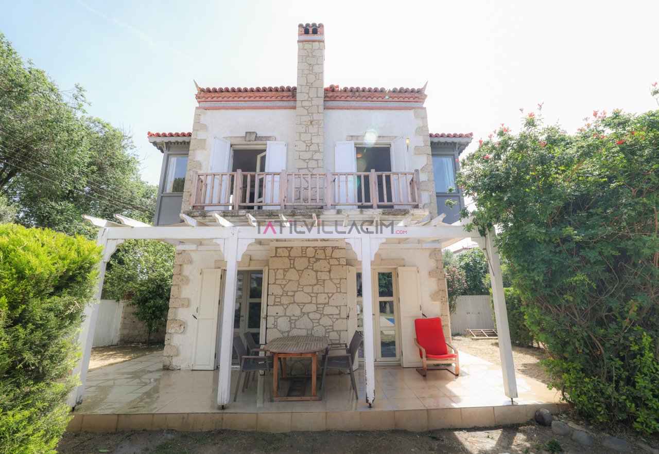 İzmir Çeşme'nin gözde tatil beldesi Alaçatı'da, doğayla iç içe huzurlu bir konumda yer alır. Ortak havuza sahip olan bu villa, geniş aileler için ideal olup 6 kişilik konaklama kapasitesi sunar.