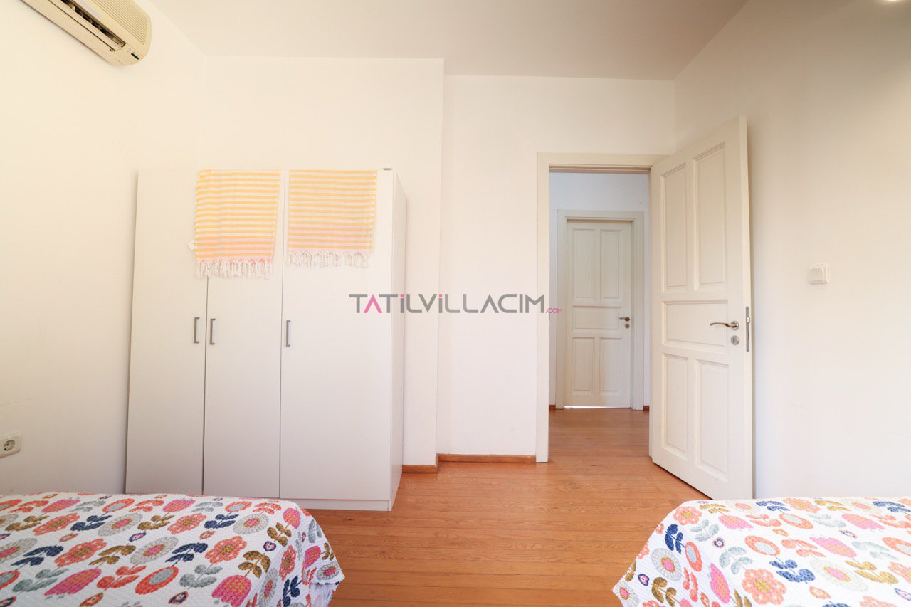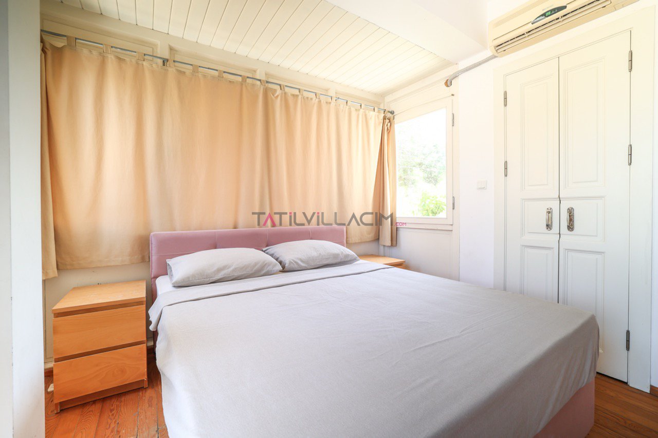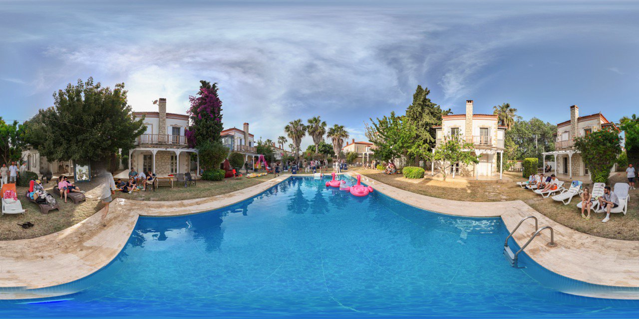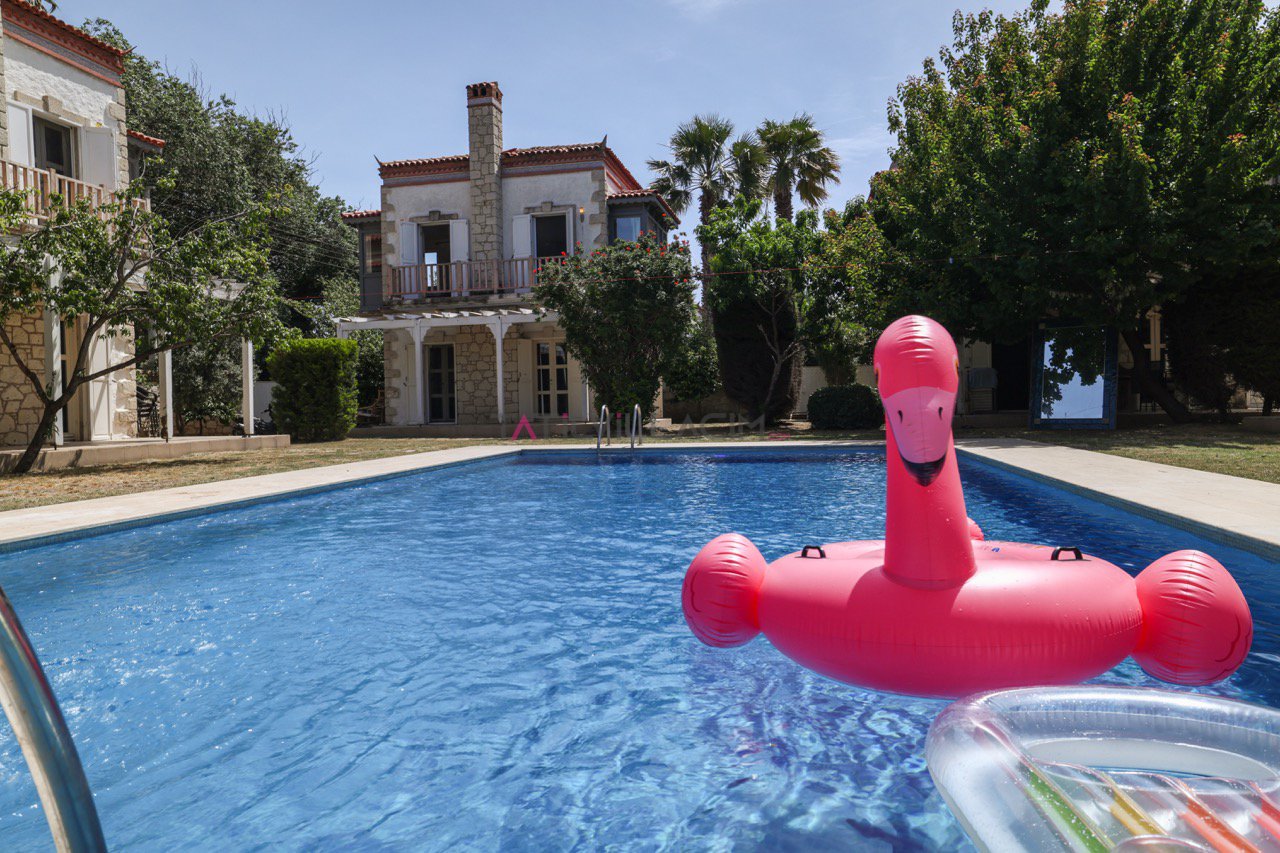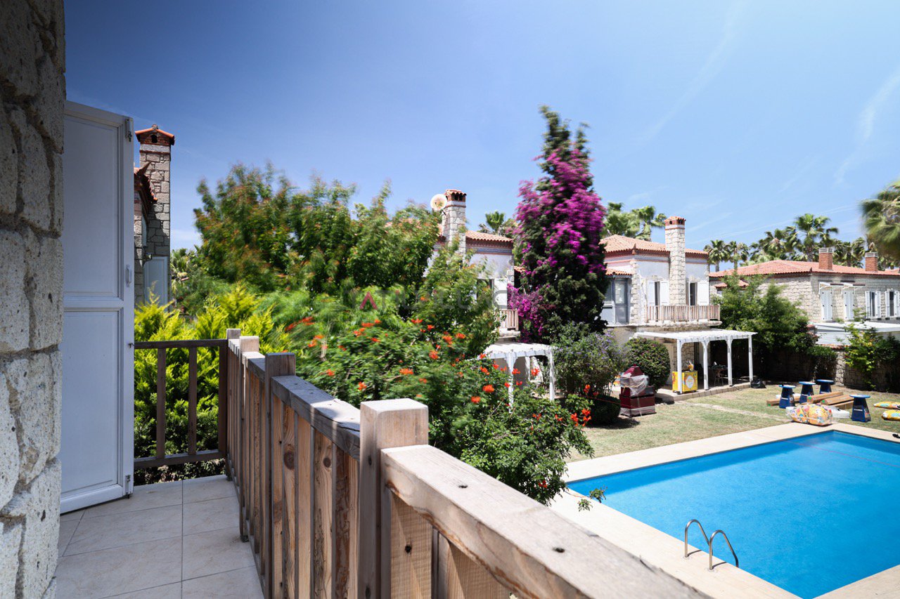 İzmir Çeşme'nin gözde tatil beldesi Alaçatı'da, doğayla iç içe huzurlu bir konumda yer alır. Ortak havuza sahip olan bu villa, geniş aileler için ideal olup 6 kişilik konaklama kapasitesi sunar.