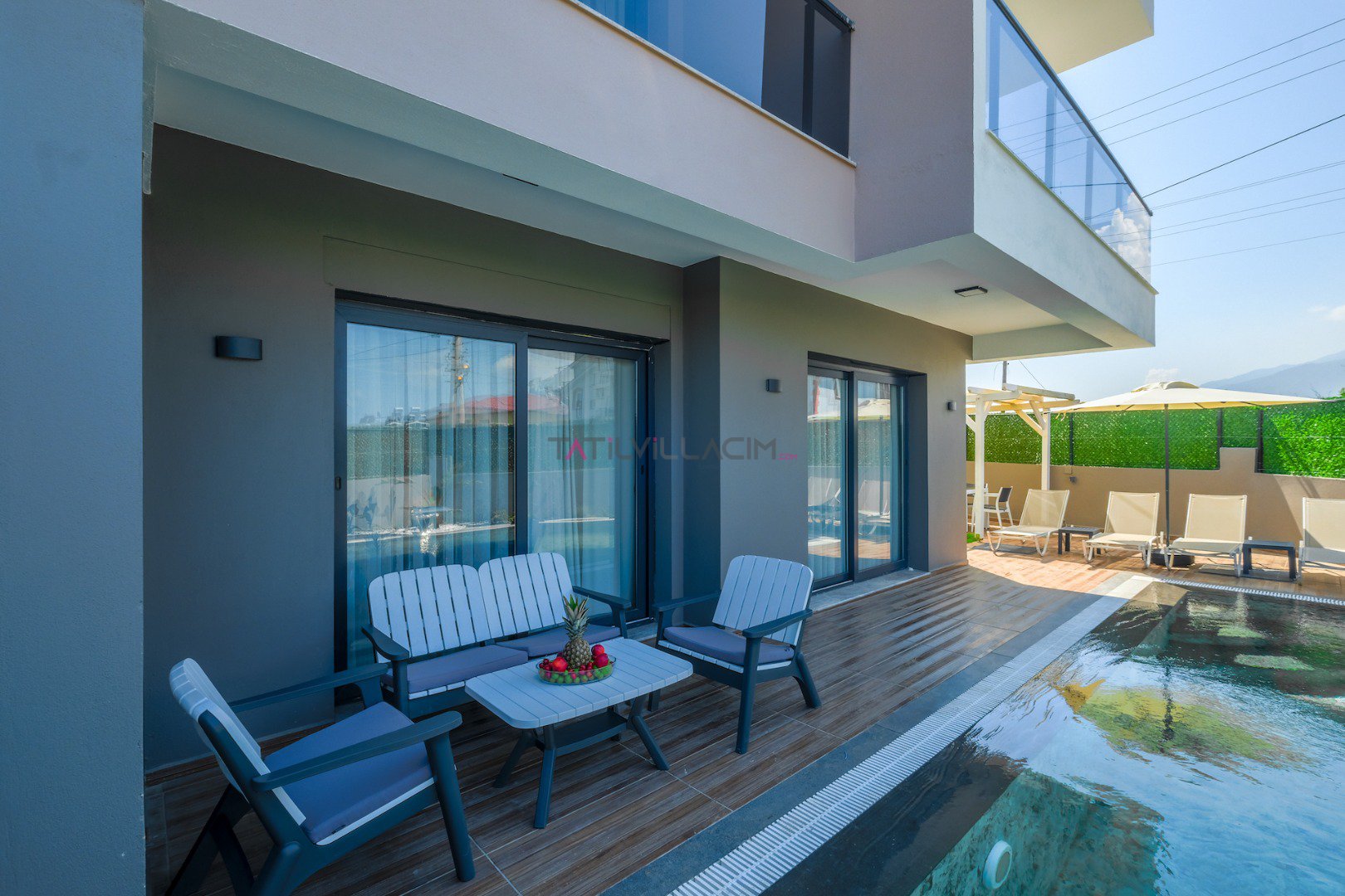 Villa Araka; Fethiye Çamköy'de bulunan 4 yatak odası ile 8 kişi konaklama kapasiteli tatil villamız.