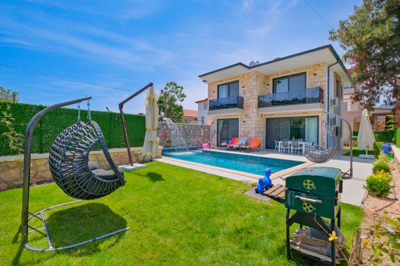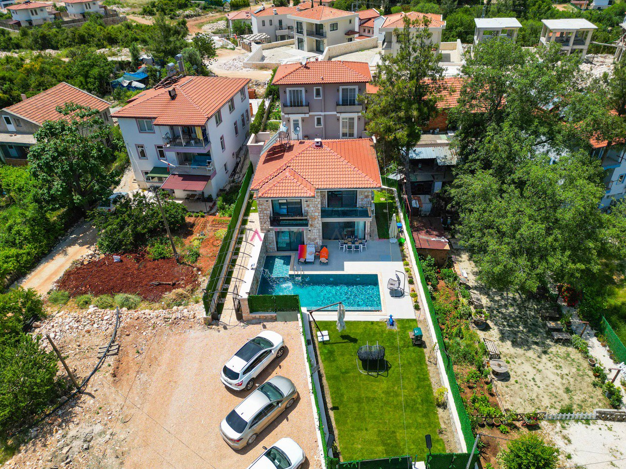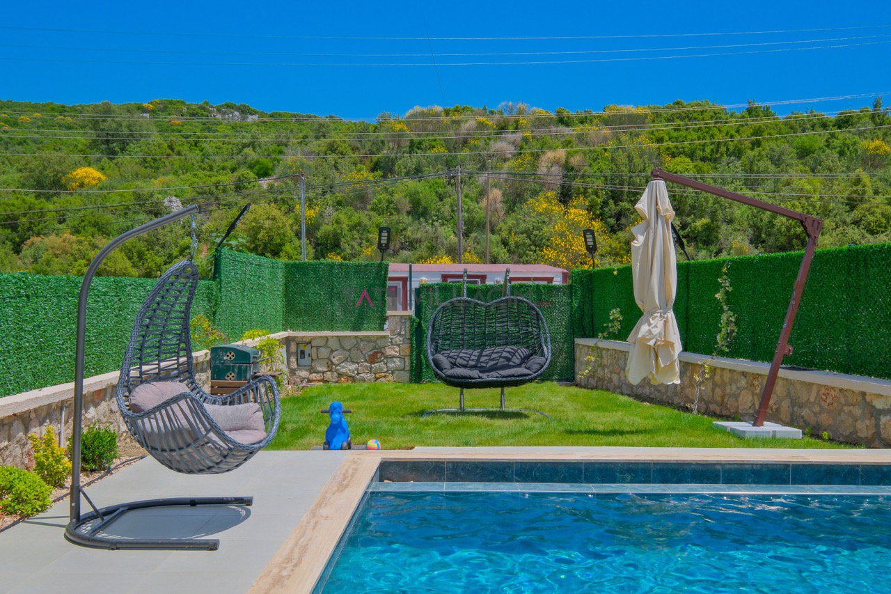 Dış alanda 9x4 metre büyüklüğündeki özel yüzme havuzu ve çocuk havuzu ile sıcak yaz günlerinde serinliğin tadını çıkarabilirsiniz. Havuz alanı tamamen korunaklı olup dışarıdan görünmemektedir. Taş duvarlarla çevrili geniş bahçe ve oturma alanları, doğayla iç içe geçirilen huzurlu saatler için idealdir.