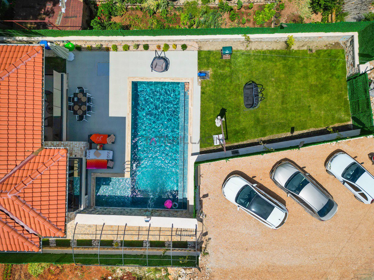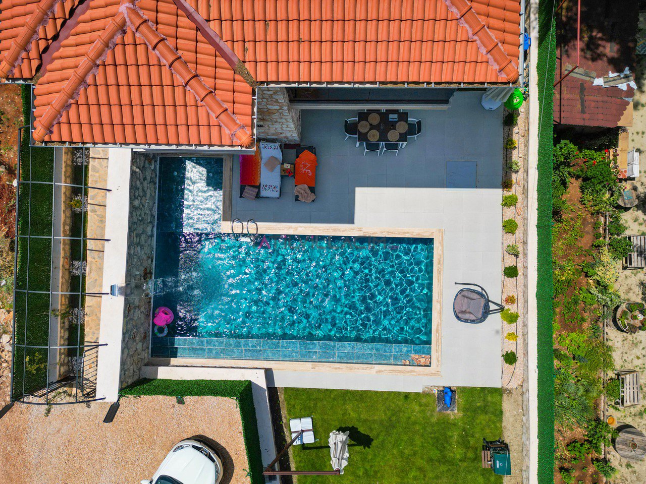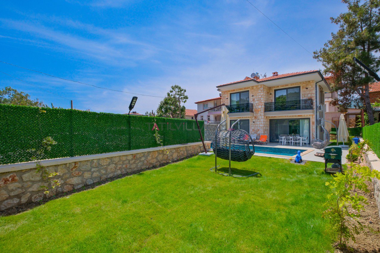 Dış alanda 9x4 metre büyüklüğündeki özel yüzme havuzu ve çocuk havuzu ile sıcak yaz günlerinde serinliğin tadını çıkarabilirsiniz. Havuz alanı tamamen korunaklı olup dışarıdan görünmemektedir. Taş duvarlarla çevrili geniş bahçe ve oturma alanları, doğayla iç içe geçirilen huzurlu saatler için idealdir.