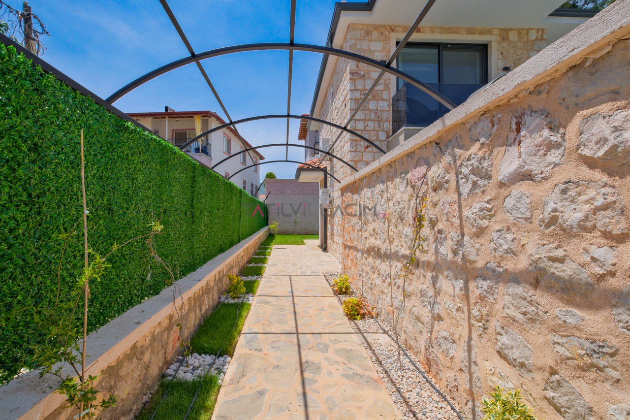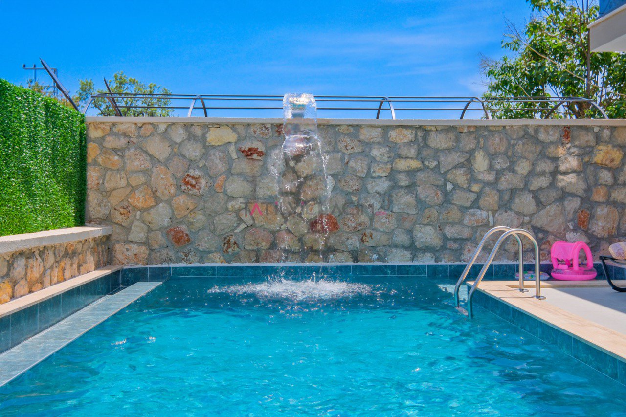 Tamamen korunaklı havuz ve taş duvarlarla çevrili özel bahçe