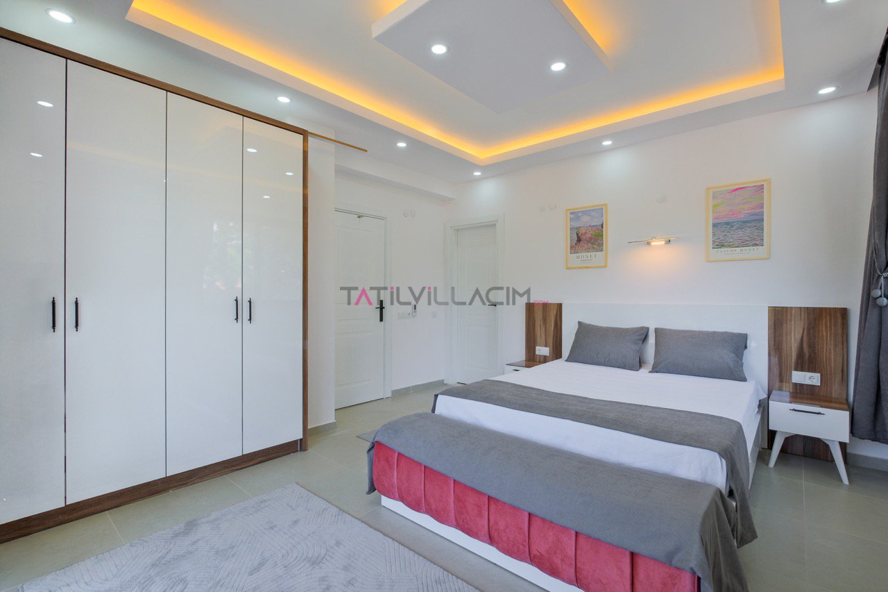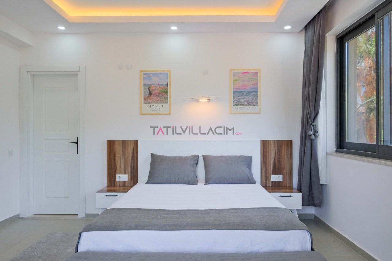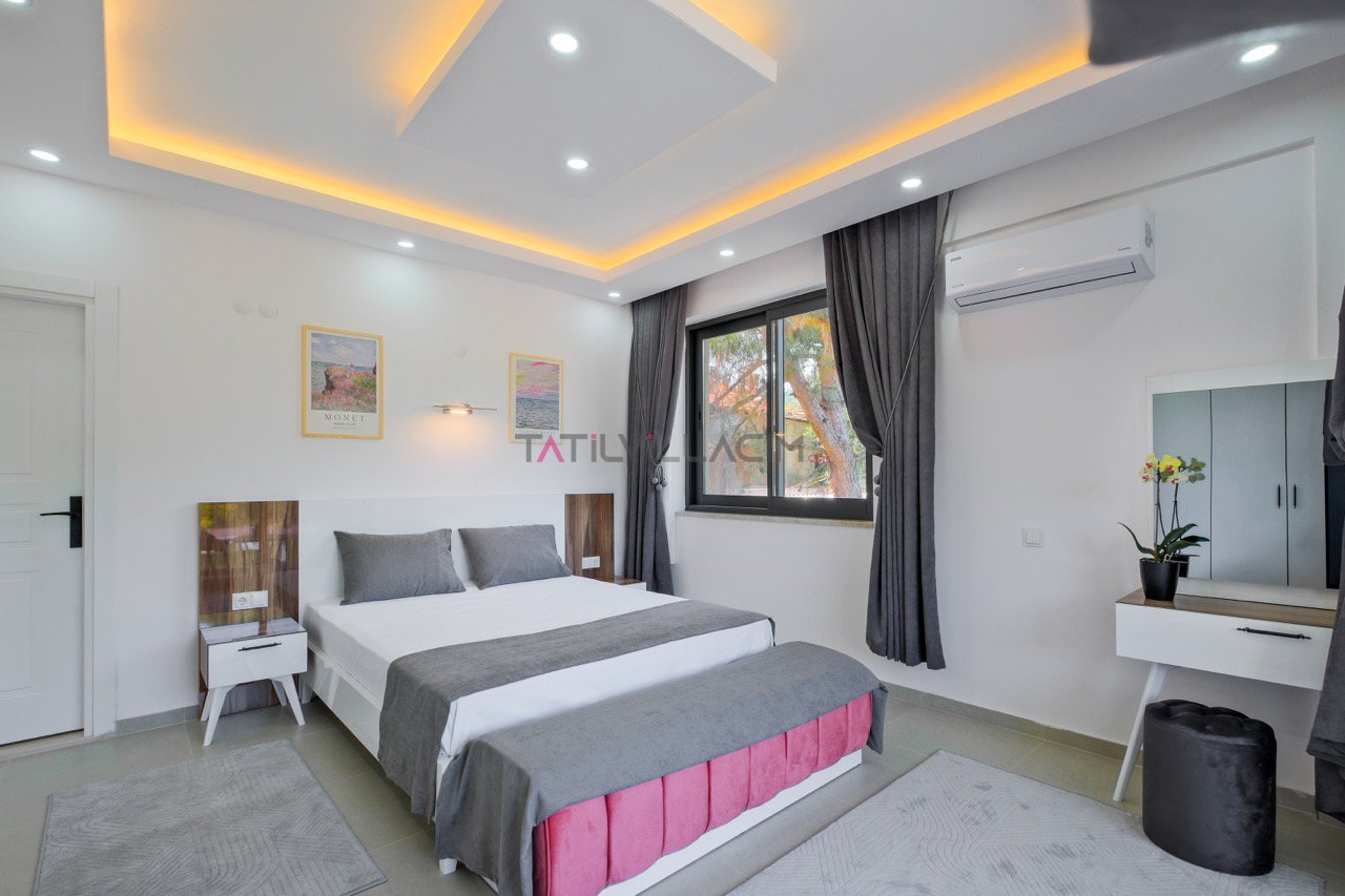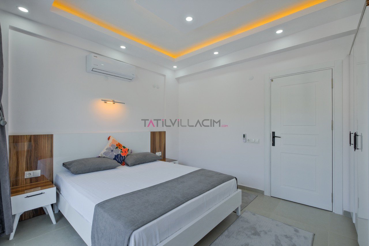 Özel tasarıma sahip dubleks yapısında 3 yatak odası ve 3 banyo bulunan villamız, ferah 3+1 yaşam alanı ile her misafirin kendine ait rahat bir alan bulmasını sağlar. İç mekân, modern mobilyalarla döşenmiş olup 4 ayrı klima ve güneş enerjili sıcak su sistemi gibi detaylarla tatilinizin her anını konforlu kılar.