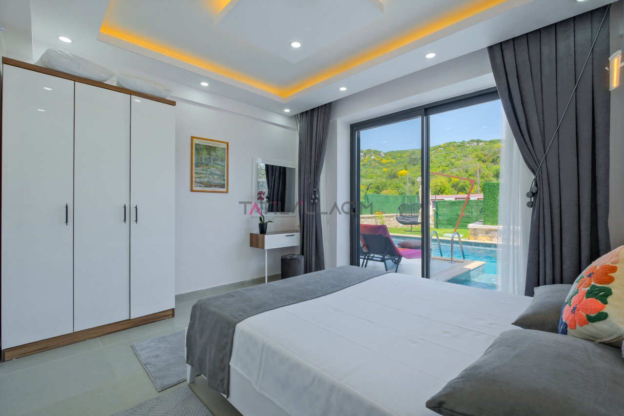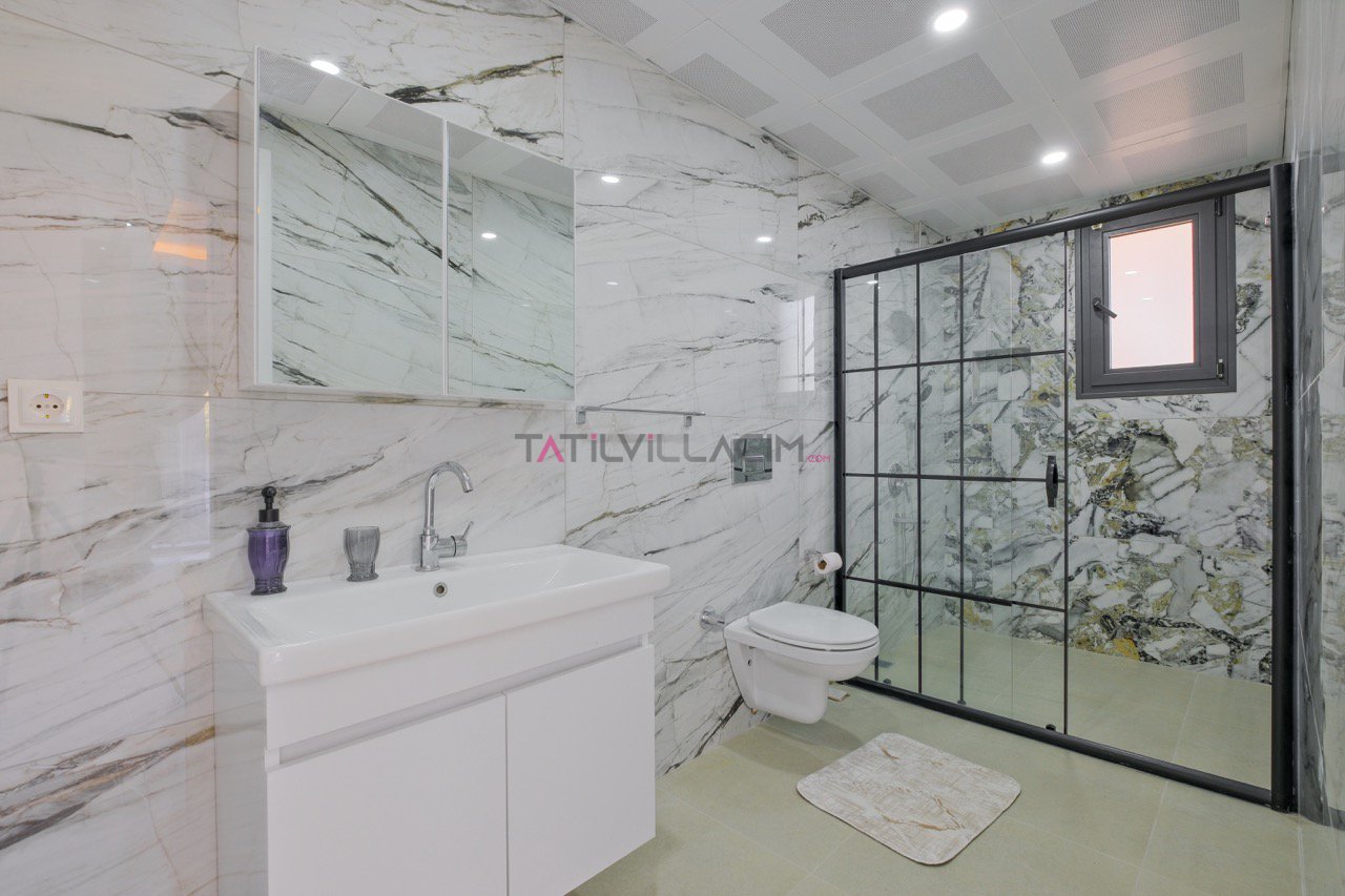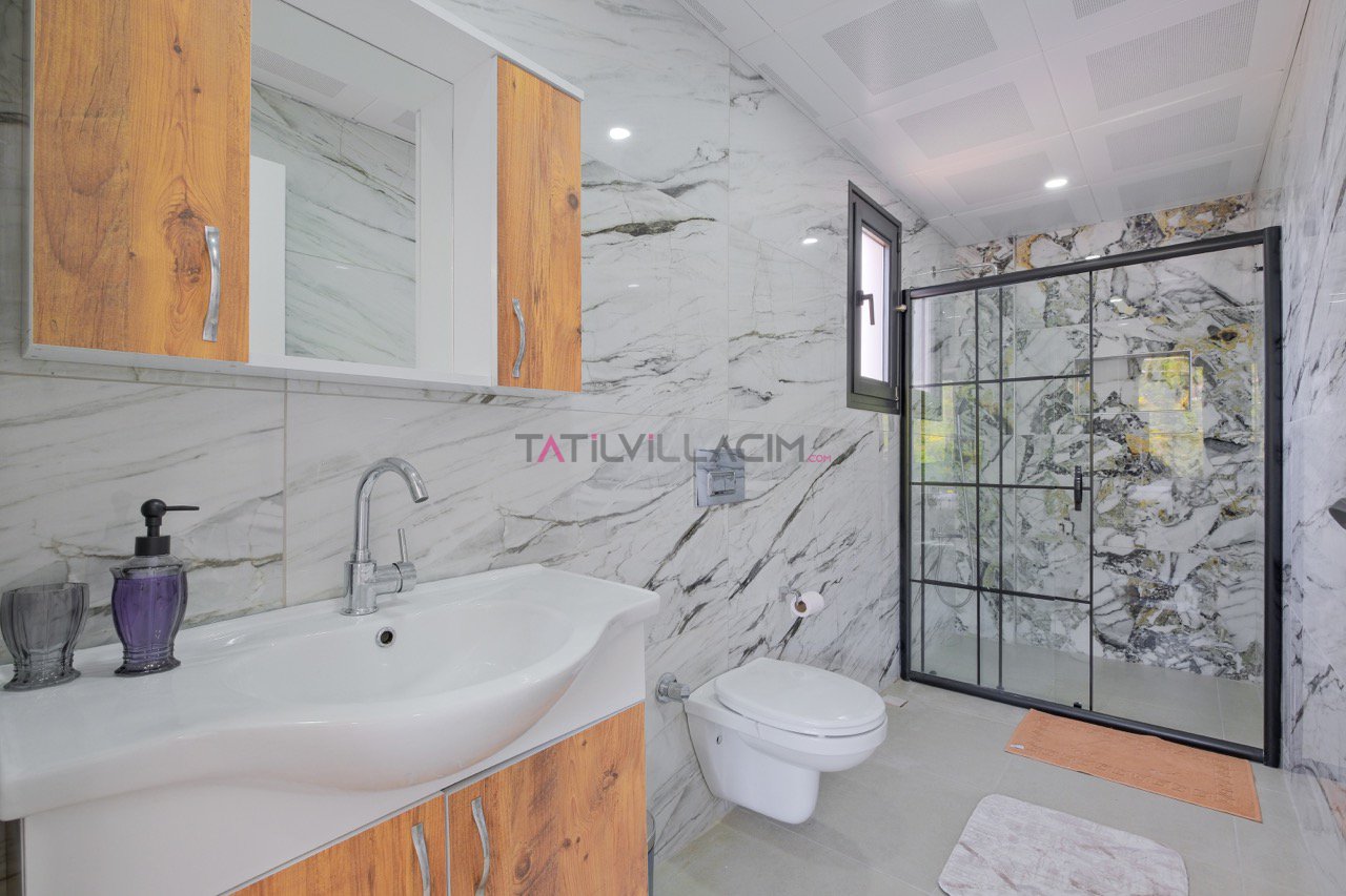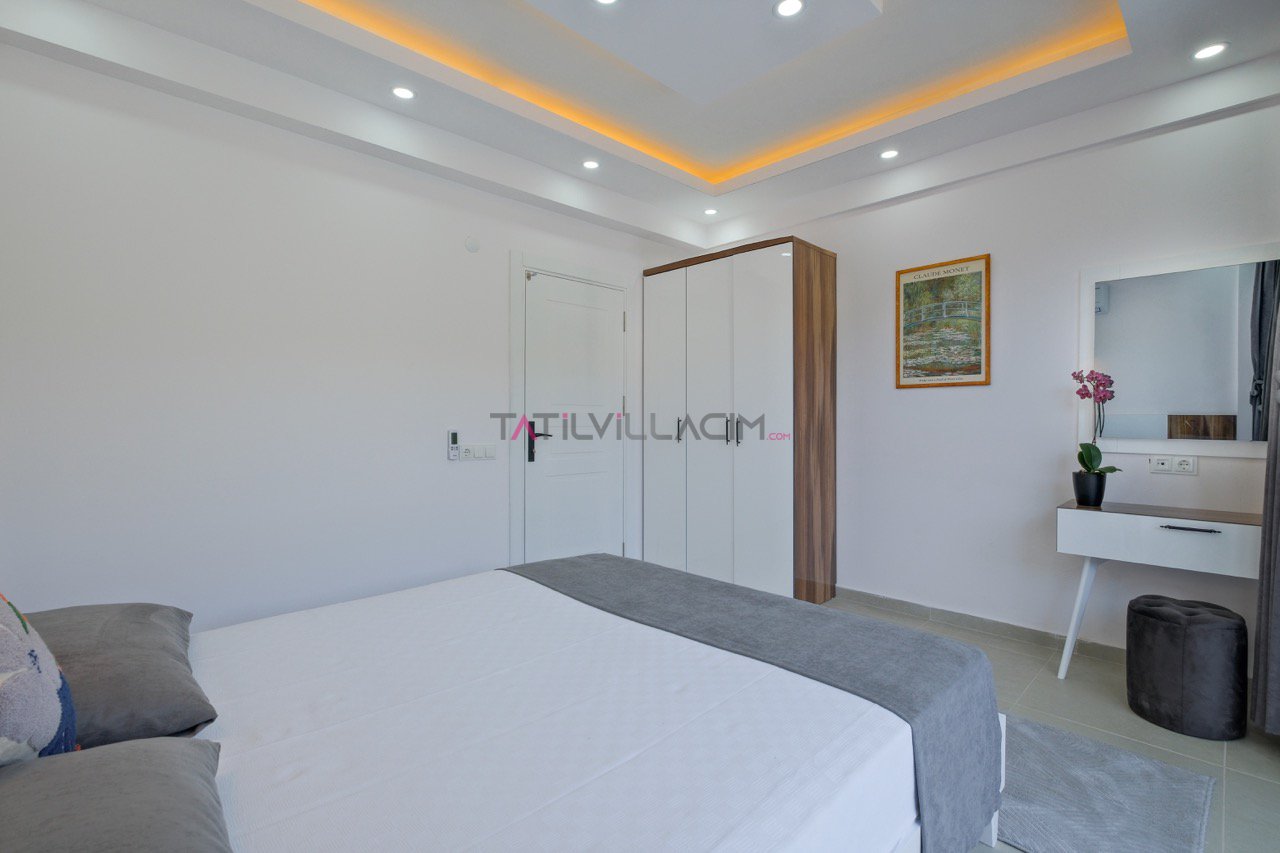 Özel tasarıma sahip dubleks yapısında 3 yatak odası ve 3 banyo bulunan villamız, ferah 3+1 yaşam alanı ile her misafirin kendine ait rahat bir alan bulmasını sağlar. İç mekân, modern mobilyalarla döşenmiş olup 4 ayrı klima ve güneş enerjili sıcak su sistemi gibi detaylarla tatilinizin her anını konforlu kılar.