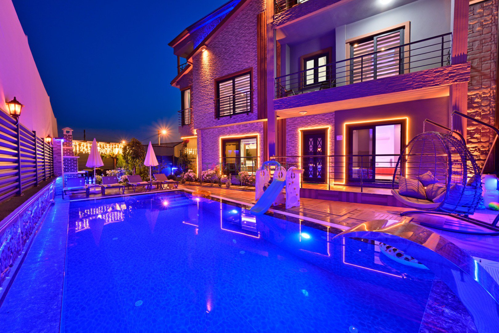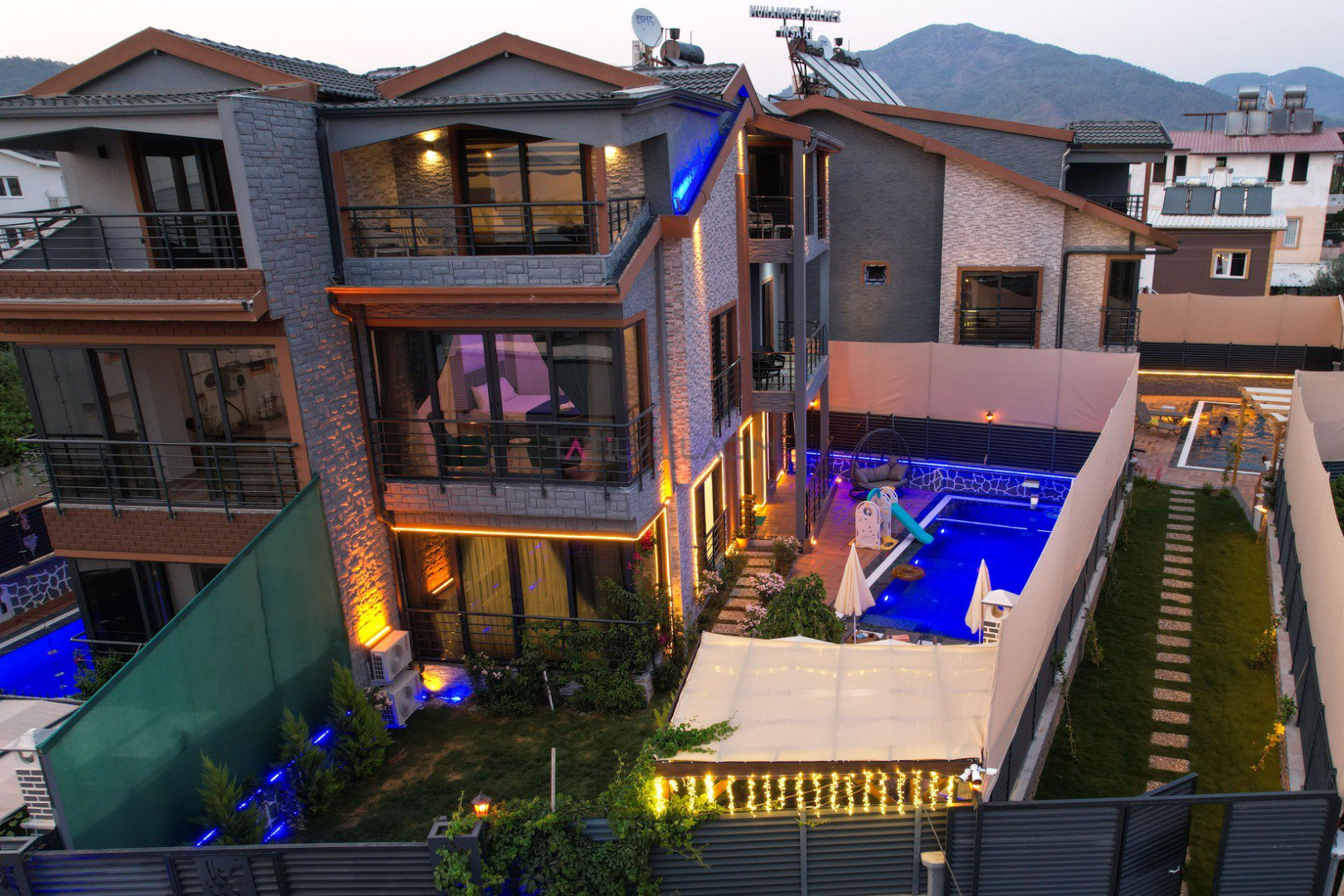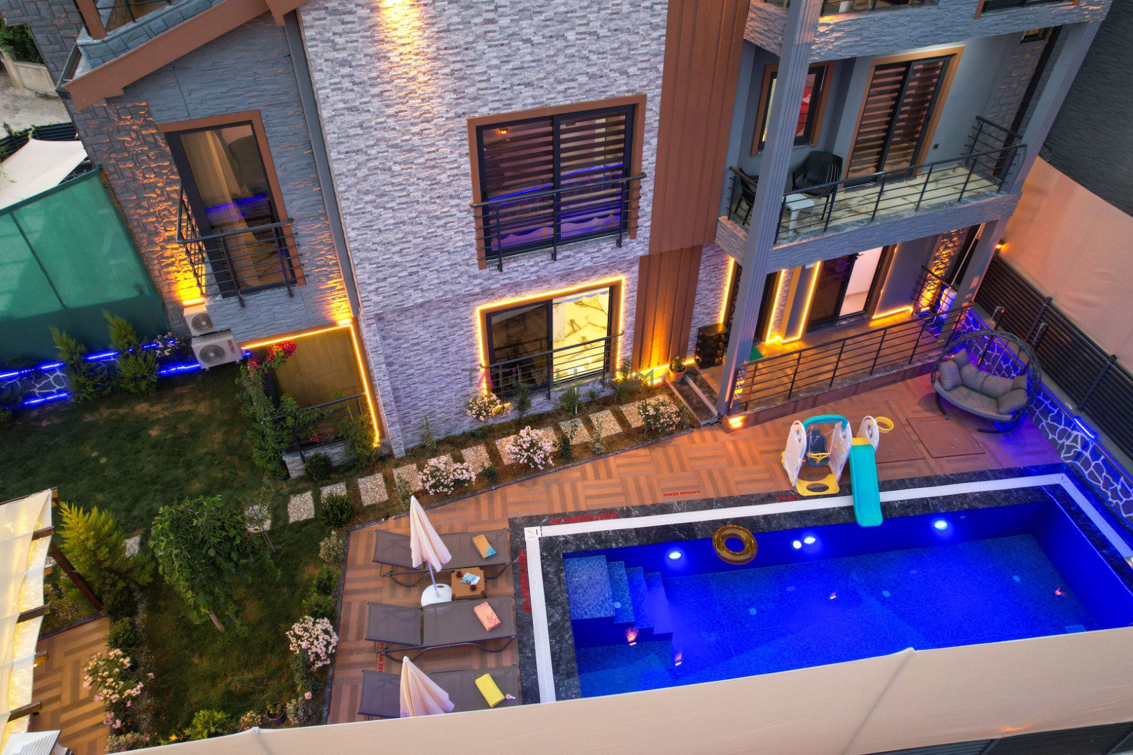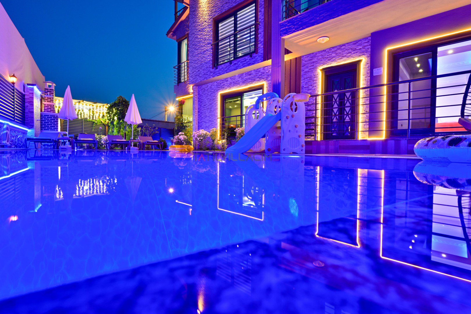 Havuz:Villamızın özel yüzme havuzu korunaklı şekilde tasarlanmış olup dışarıdan görünmeyecek şekilde mahremiyet sunar. Bu özelliğiyle özellikle muhafazakâr ailelerin ve balayı çiftlerinin de tercih sebebi olmuştur. Ayrıca villada özel otopark alanı da bulunmaktadır.