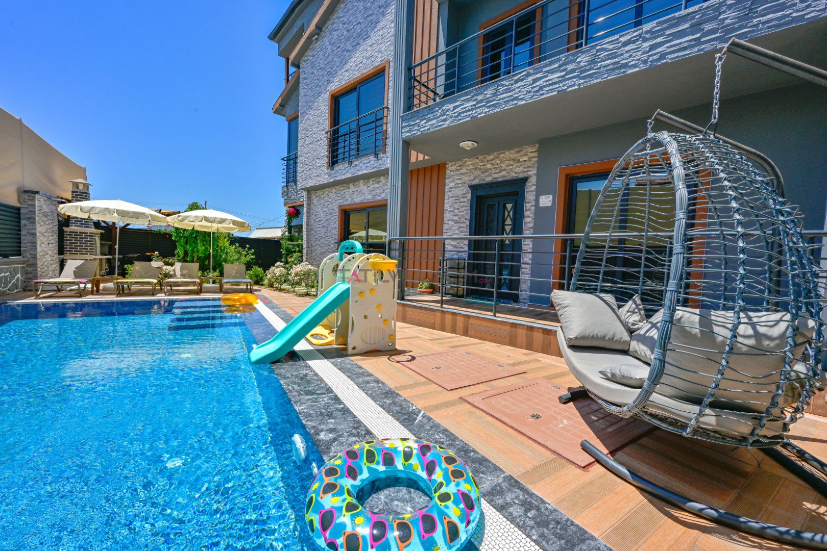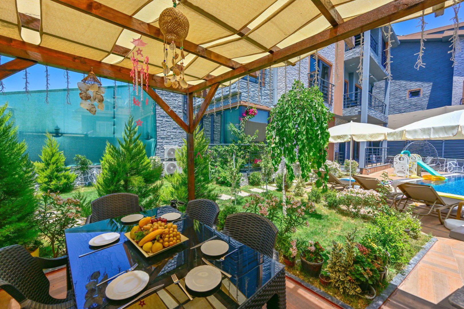 🌿 Geniş bahçesi, korunaklı özel havuzu, çocuk oyun alanı ve merkeze yakın konumuyla Villa Çağlı; kalabalık aileler ve huzurlu bir tatil arayan çiftler için biçilmiş kaftan!