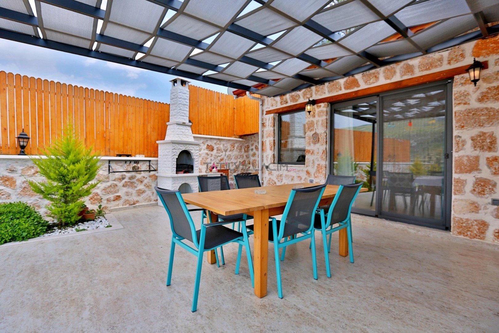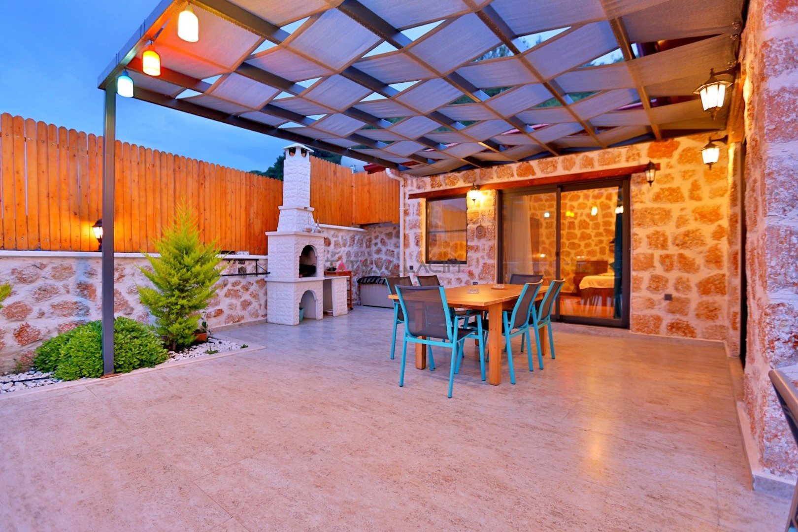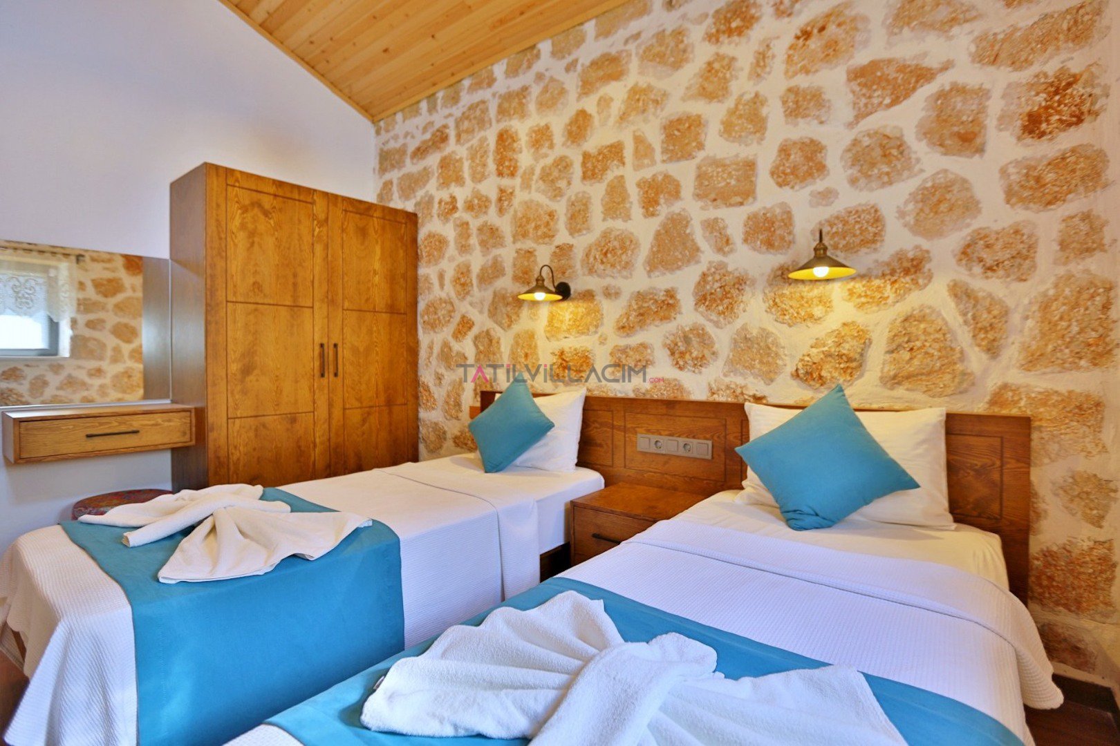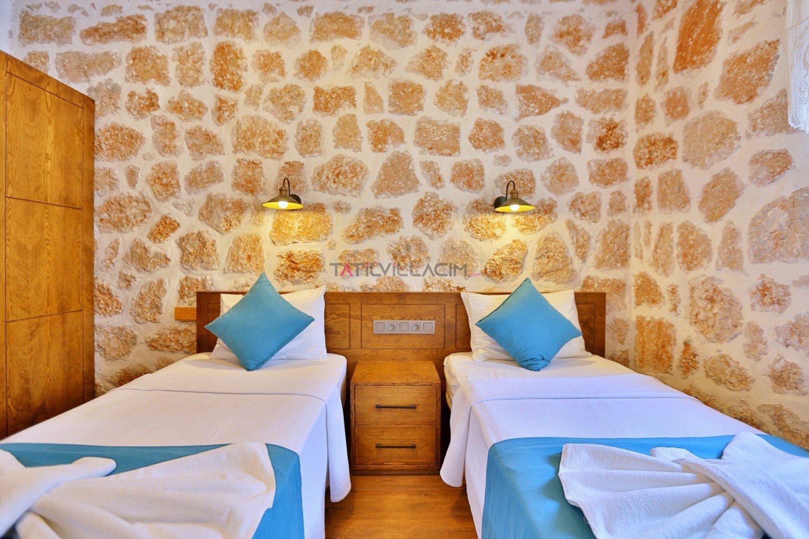 Villa Çam; Antalya/Kaş/Kalkan/Sarıbelen bölgesinde yer alan 2 yatak odalı 4 kişi kapasiteli tatil villasıdır.