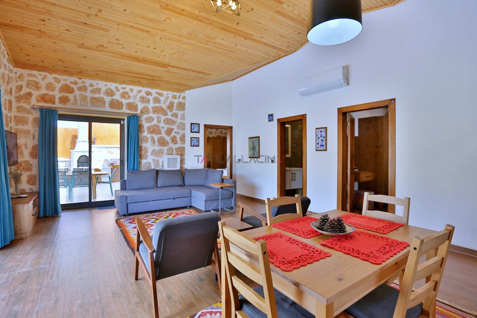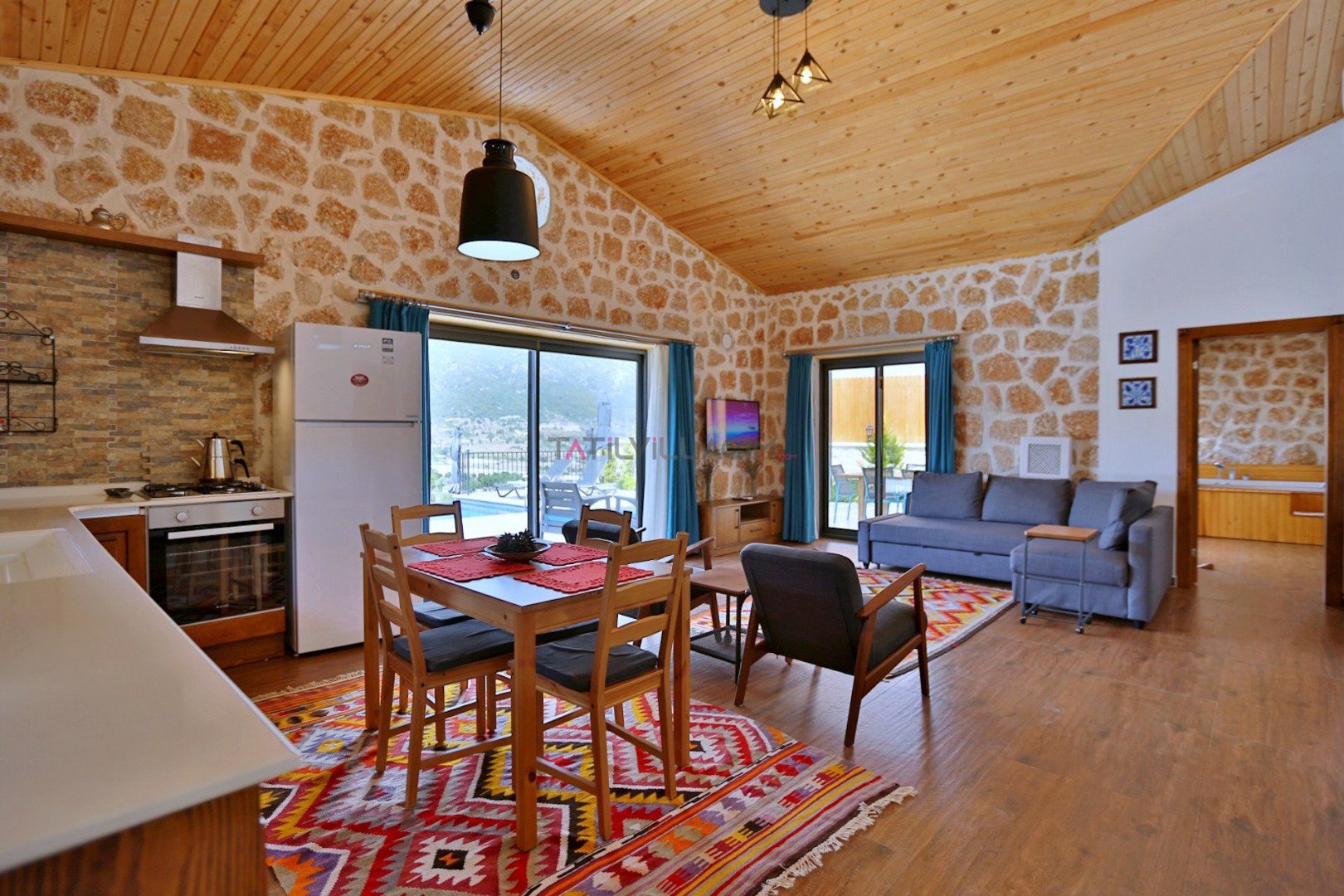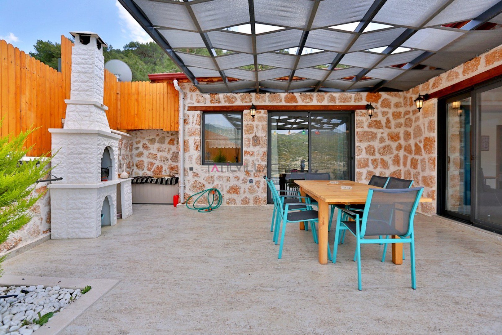 Villa Çam; Antalya/Kaş/Kalkan/Sarıbelen bölgesinde yer alan 2 yatak odalı 4 kişi kapasiteli tatil villasıdır.