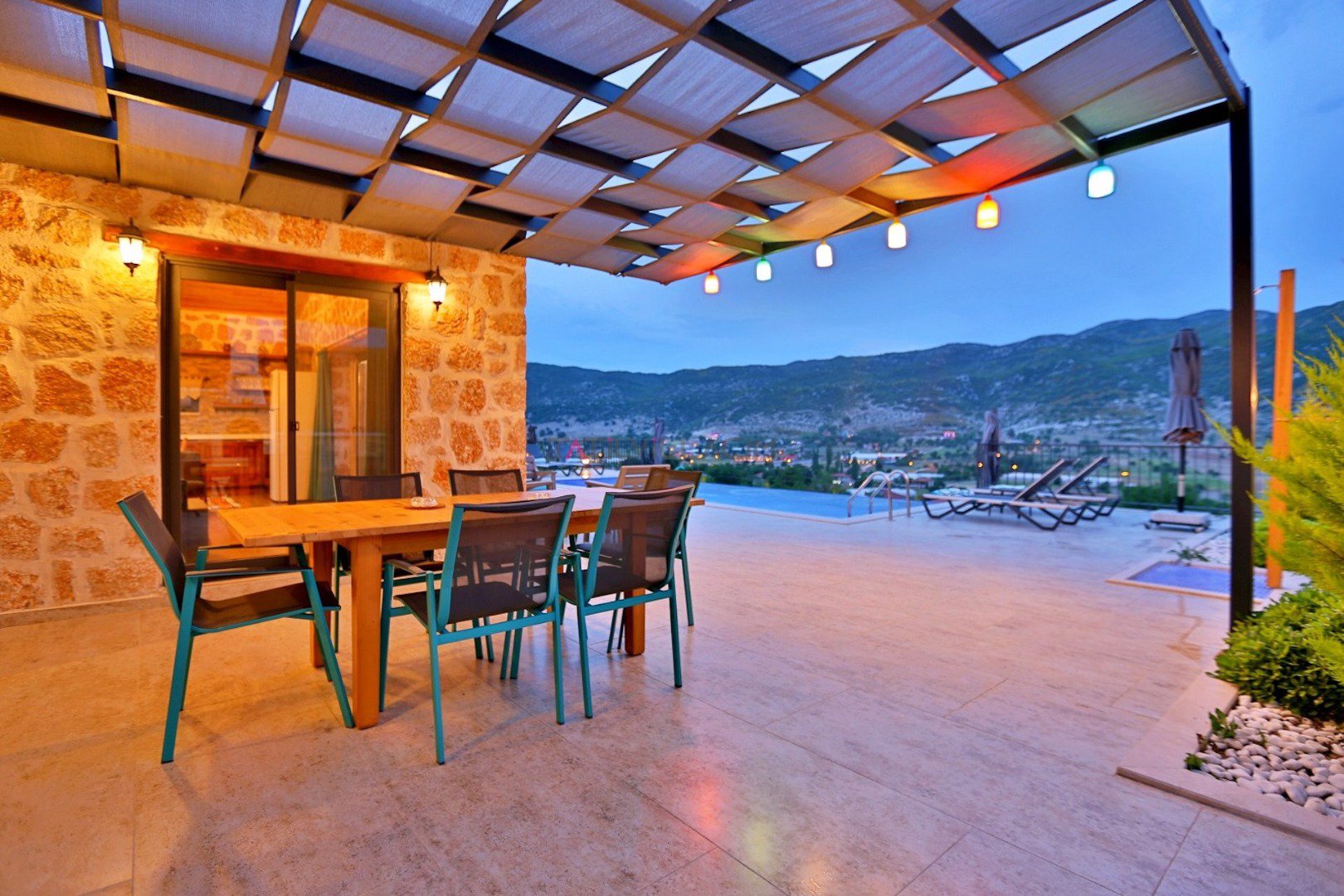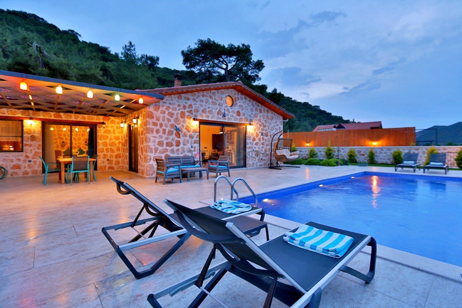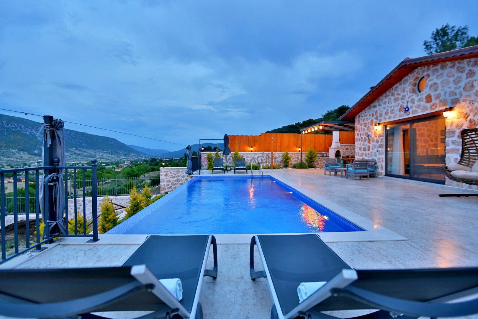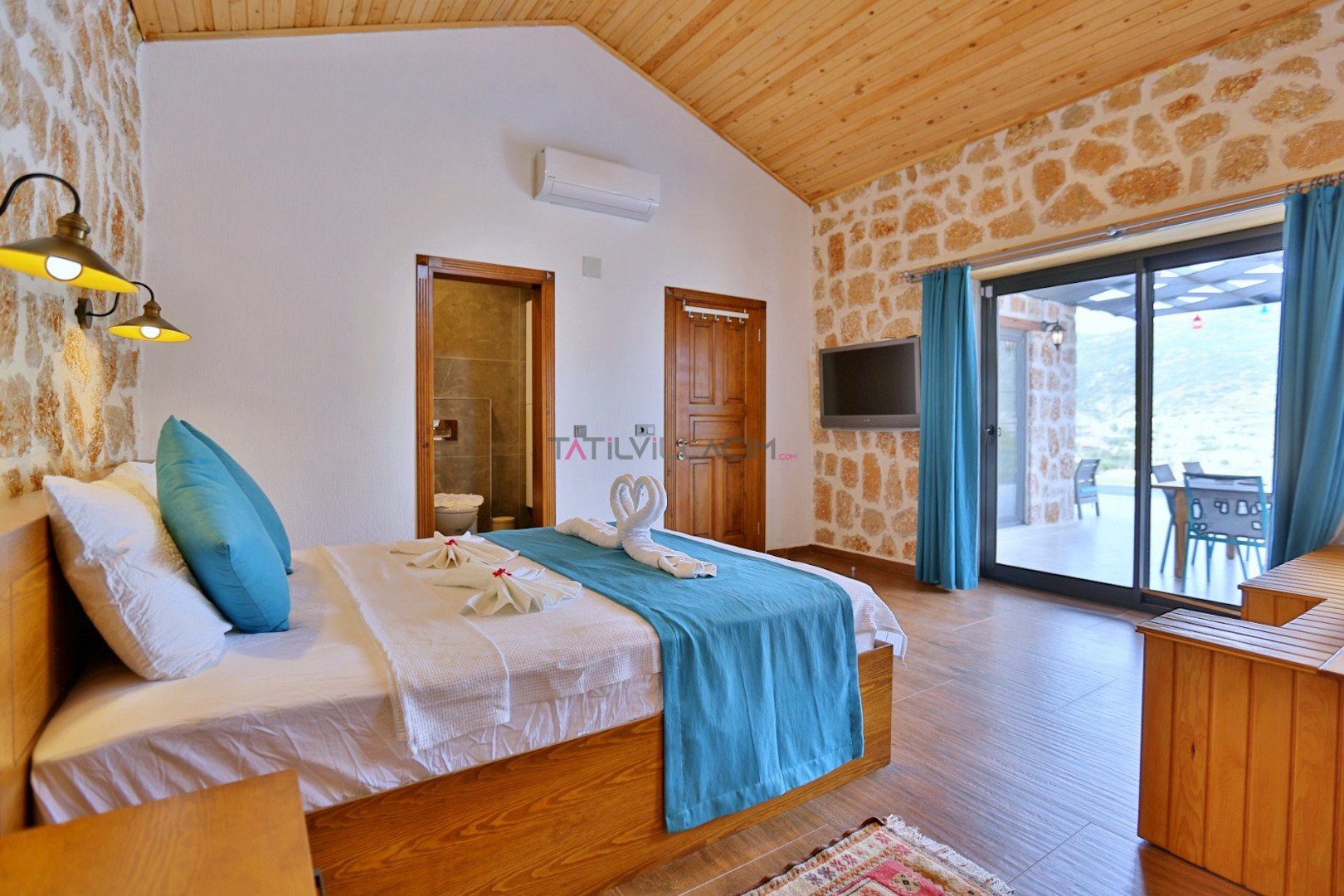 Villa Çam; Antalya/Kaş/Kalkan/Sarıbelen bölgesinde yer alan 2 yatak odalı 4 kişi kapasiteli tatil villasıdır.