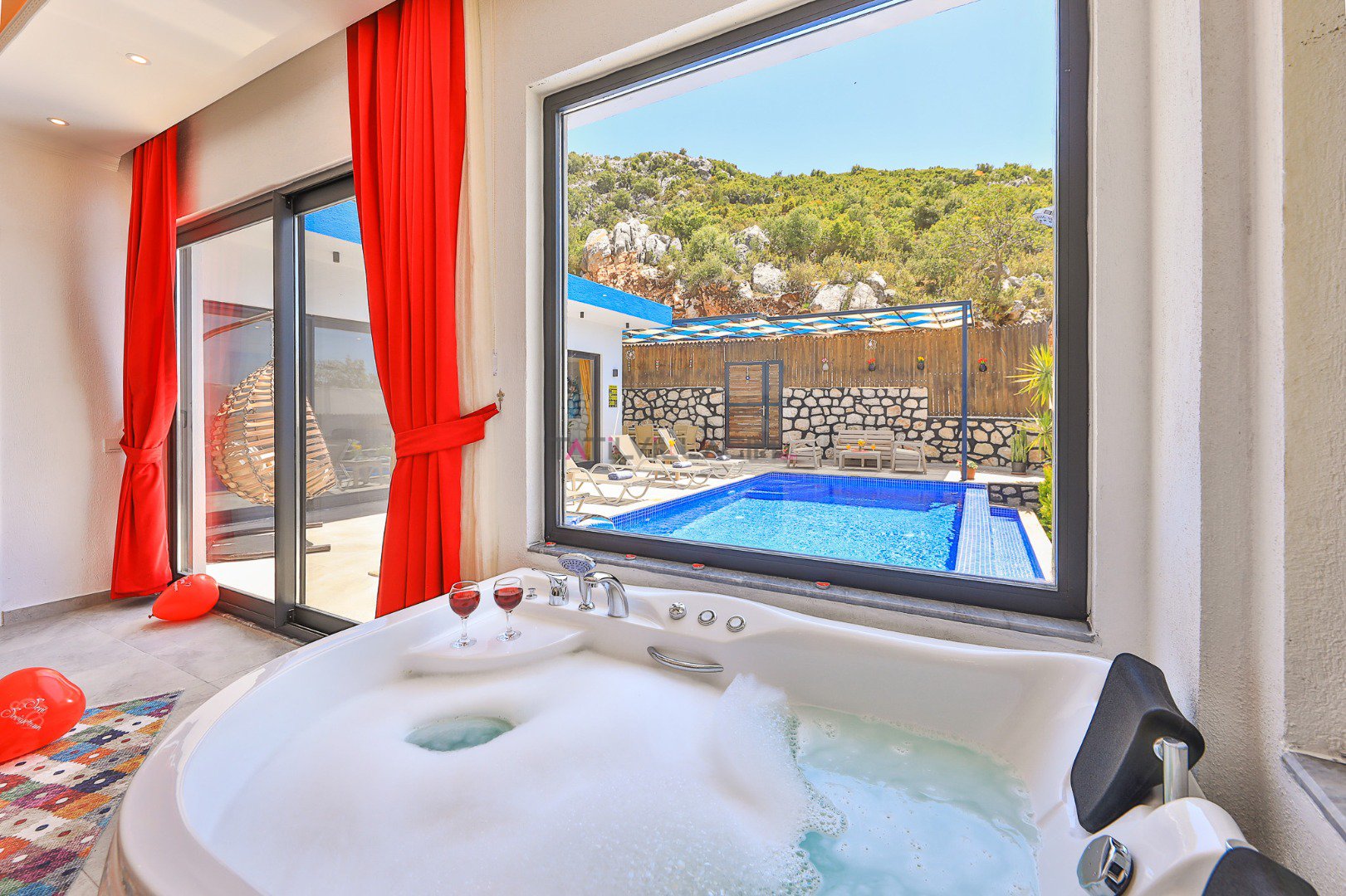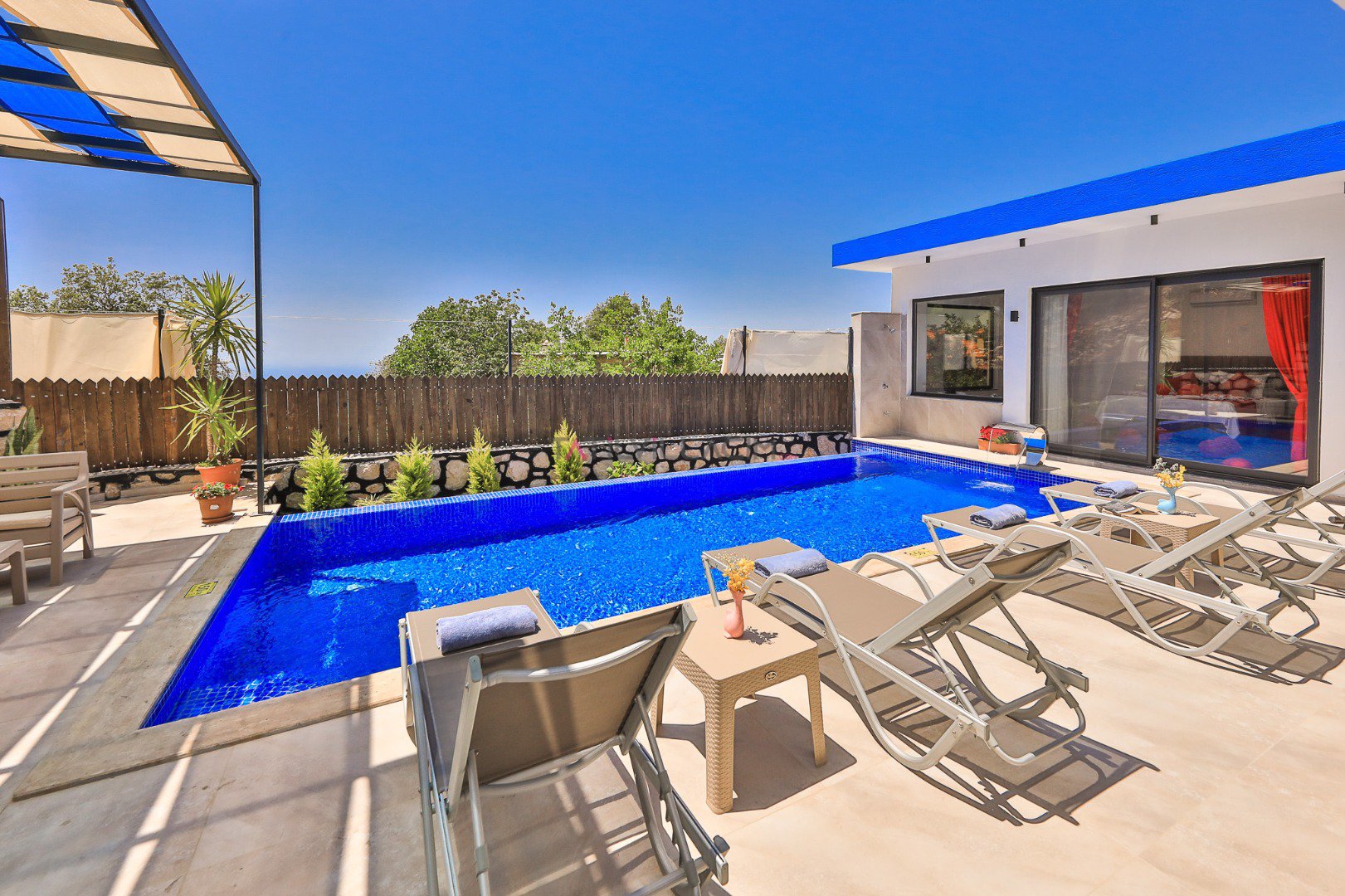 Kalkan İslamlar bölgesinde bulunan Villa Cancan 2 yatak odalı olup 4 kişi konaklama kapasitesine sahip jakuzili tatil villasıdır.Doğa içerisine konumlandırılmış olan villamız gözlerden uzak sessiz sakin ve huzurlu bir tatil isteyen misafirlerimiz için ideal bir seçenek olacaktır.Havuz çevresi korunaklı olan villamızın havuz terasında oturma alanı ve barbekü alanı bulunmaktadır.