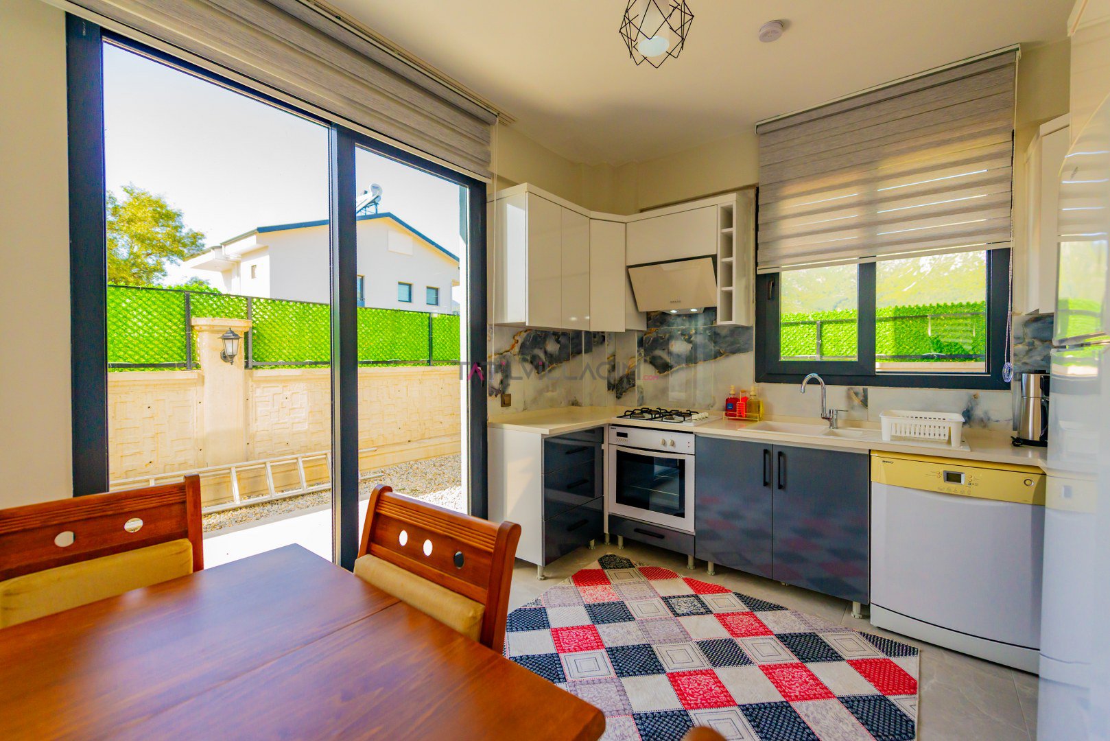 Villa Çiner’in dış mekanında geniş bir yüzme havuzu, konforlu oturma alanı ve özel barbekü köşesi yer almaktadır. İç mekânda ise şık ve rahat bir oturma odası, tam donanımlı mutfak, birinci yatak odasında çift kişilik yatak ve ebeveyn banyosu, ikinci yatak odasında ise iki tek kişilik yatak ve yine özel banyo bulunmaktadır.