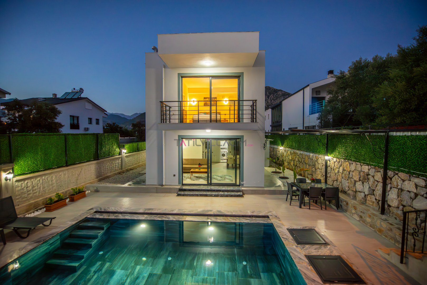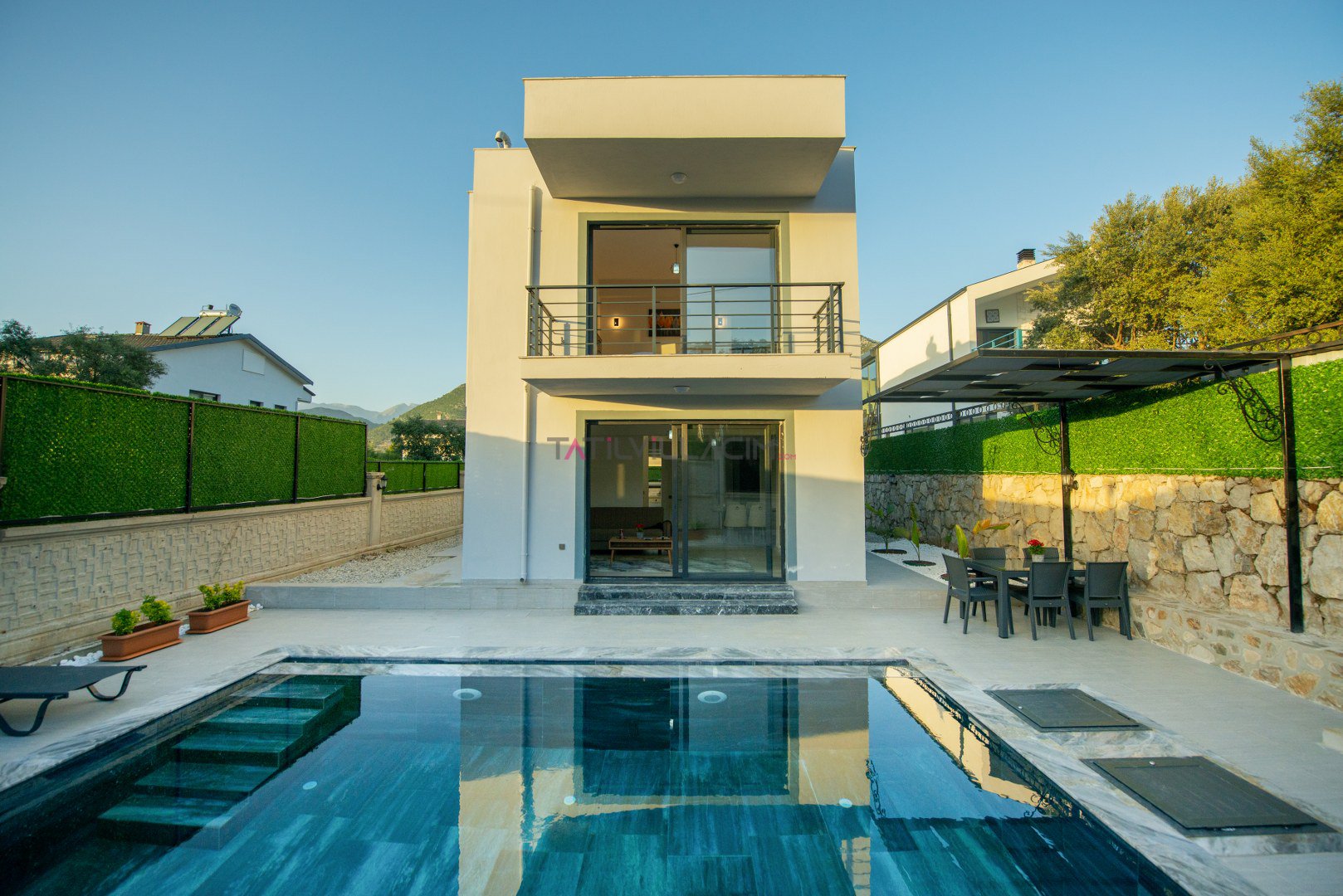 Villa Çiner, Fethiye’nin doğal güzellikleriyle öne çıkan Yeşilüzümlü bölgesinde konumlanan, 2 yatak odalı ve 4 kişilik konaklama kapasitesine sahip özel bir tatil villasıdır. Korunaklı havuz alanı sayesinde tamamen size ait, huzurlu ve mahrem bir tatil imkânı sunar. Özellikle balayı çiftleri ve çekirdek aileler için ideal bir tercih olan villa, doğa ile baş başa sakin ve konforlu bir tatil arayan misafirlerimizin beklentilerini fazlasıyla karşılamaktadır.