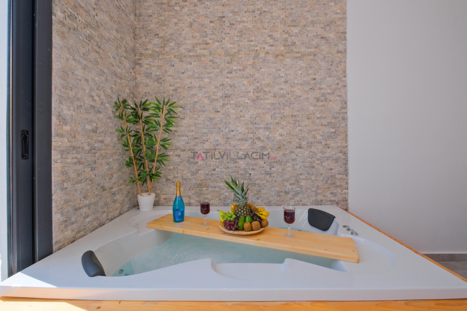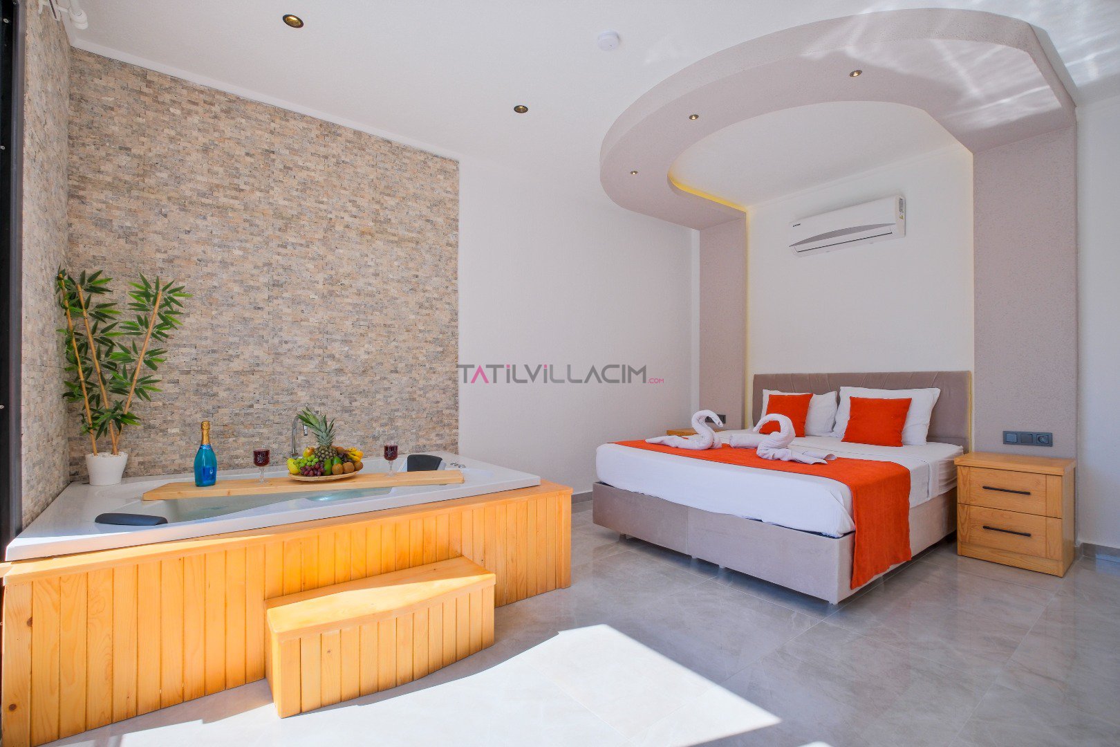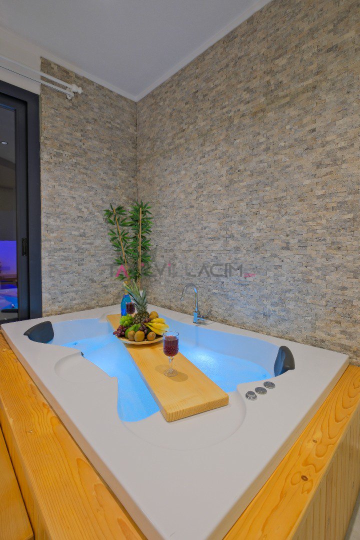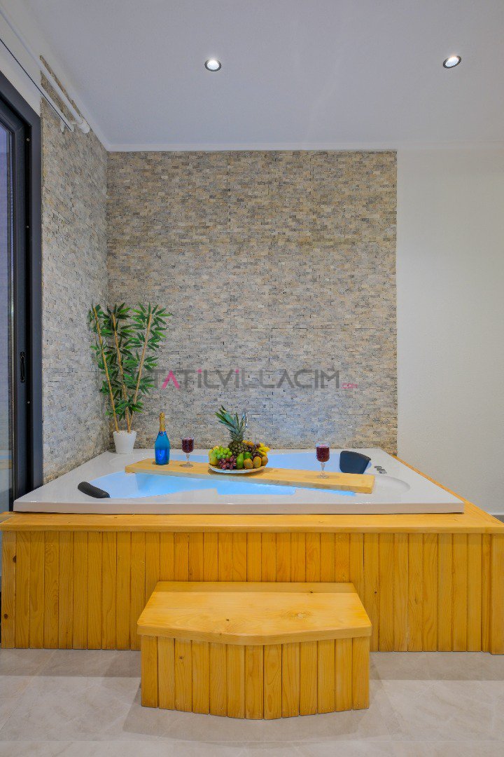 Villada yer alan jakuzili oda, tatilinize ekstra rahatlık ve lüks katarken, doğayla iç içe keyif dolu bir konaklama fırsatı sağlar.