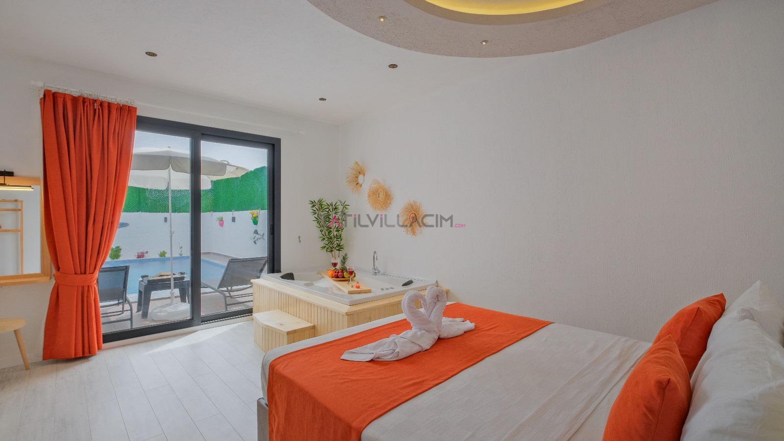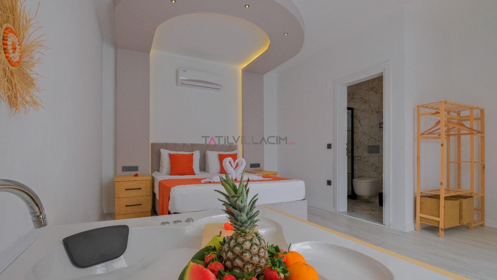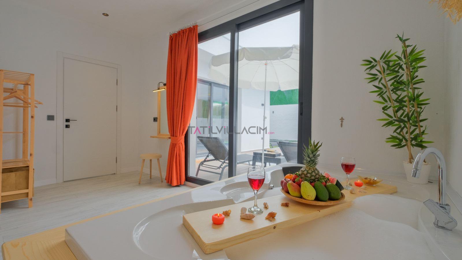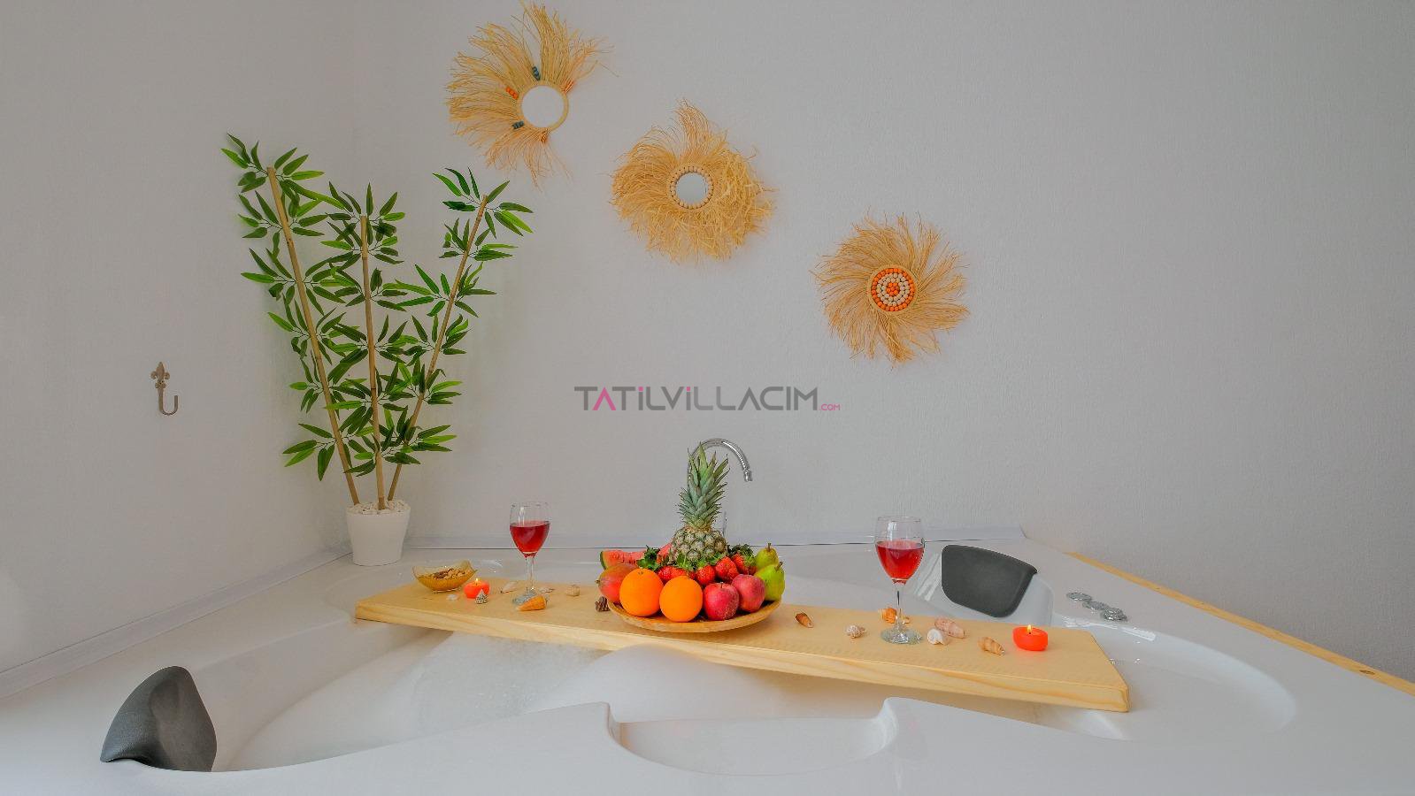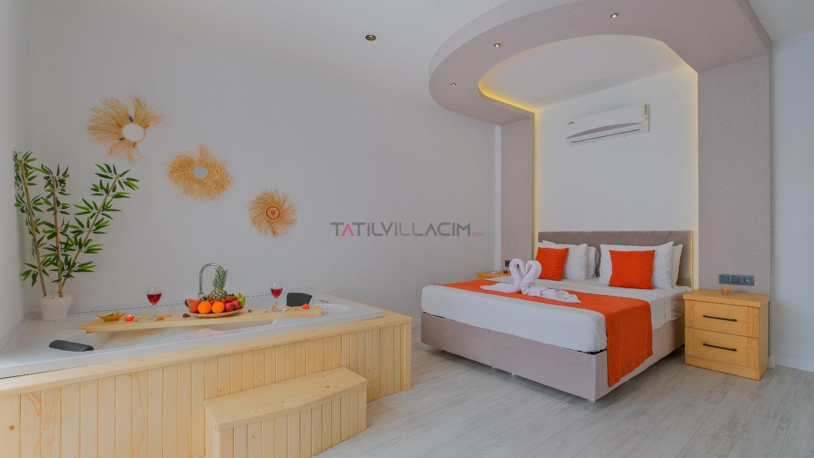 Villada yer alan jakuzili oda, tatilinize ekstra rahatlık ve lüks katarken, doğayla iç içe keyif dolu bir konaklama fırsatı sağlar.
