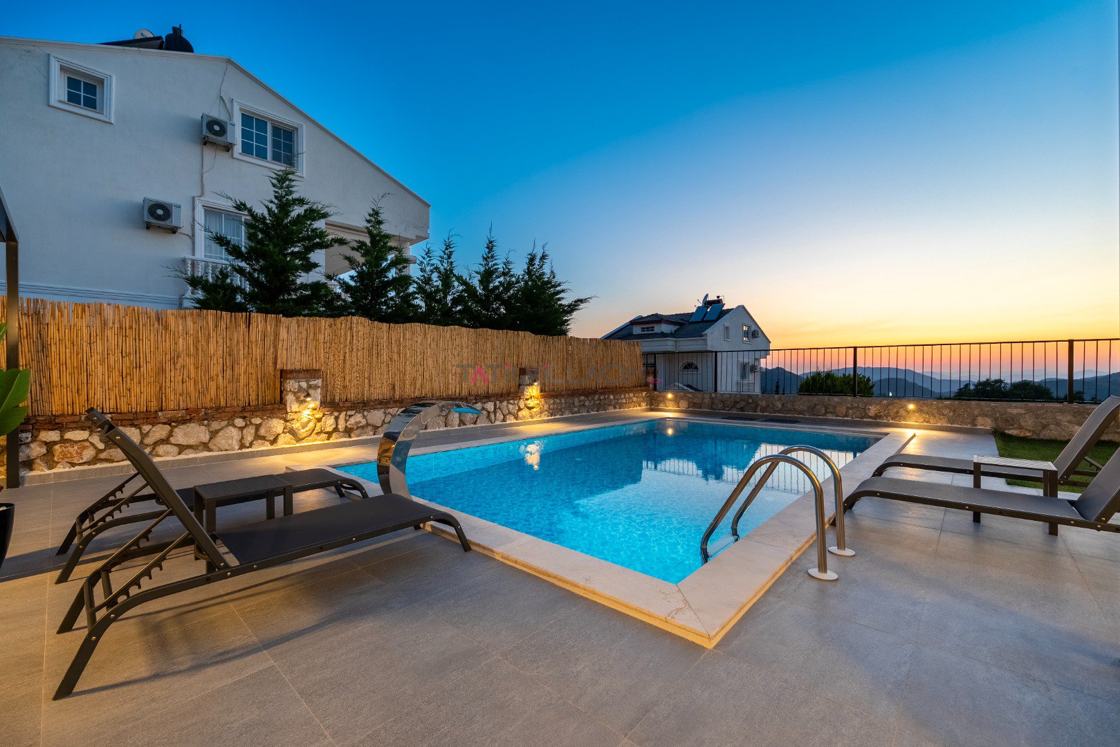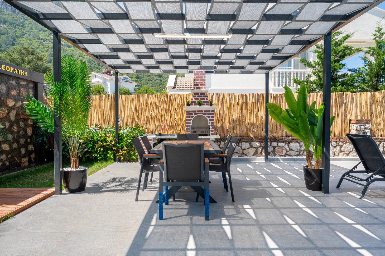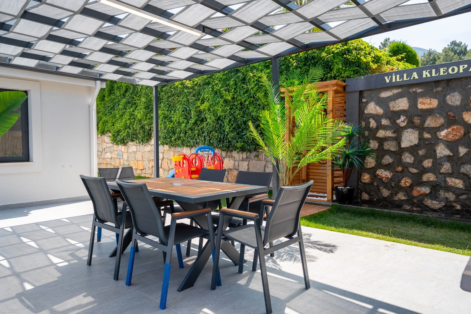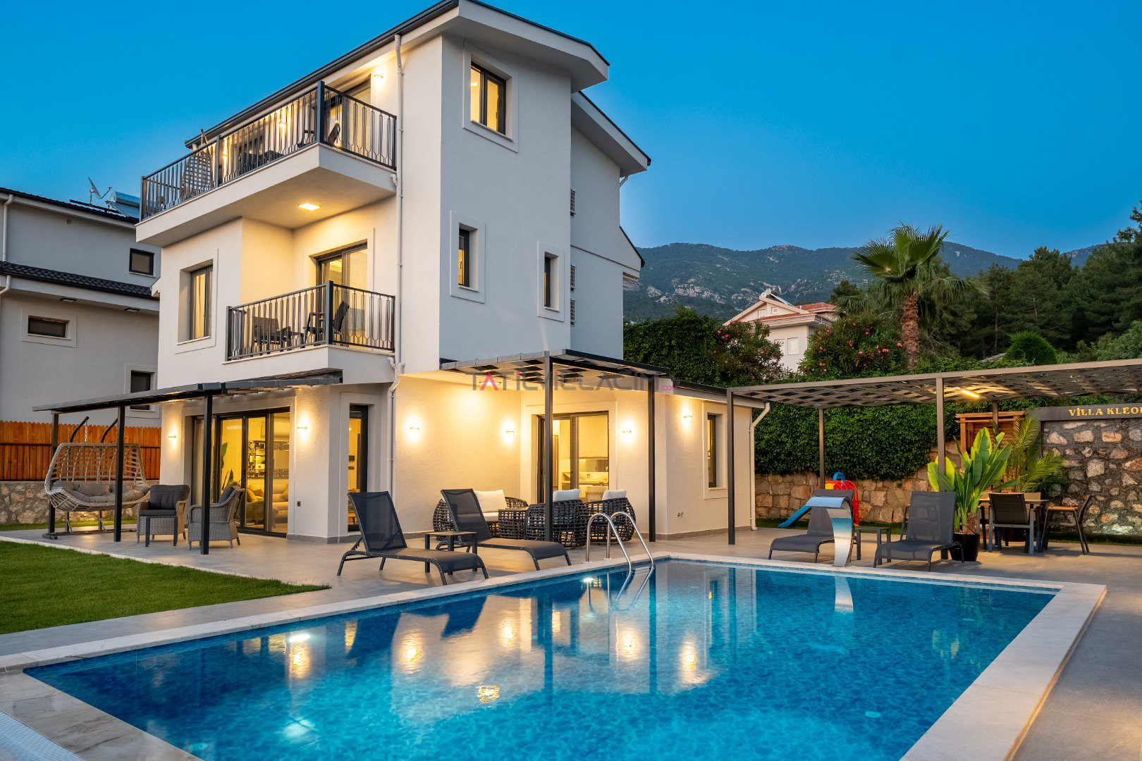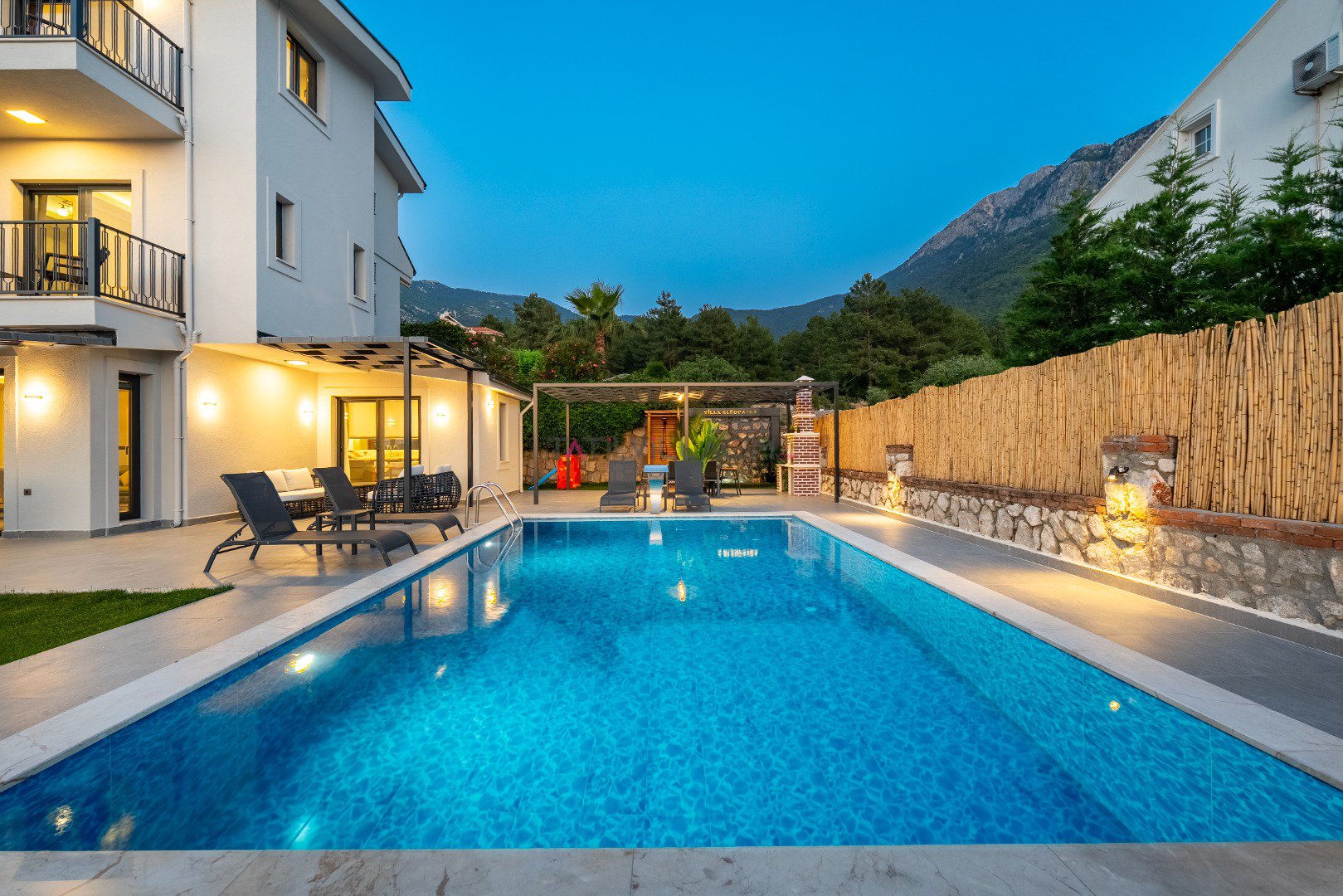 Toplam 6 kişilik konaklama kapasitesine sahip olan villamızda 3 yatak odası ve 3 banyo bulunmaktadır. Müstakil yapısı, geniş özel bahçesi, jakuzi, sauna ve çocuk oyun alanı ile konforlu ve keyifli bir tatil için ideal bir ortam sunmaktadır. Teleferik biniş noktasına yalnızca 700 metre uzaklıkta bulunan Villa Cleo ’da, gün boyunca yamaç paraşütü uçuşlarını izleyebileceğiniz panoramik deniz ve Babadağ manzarasının tadını çıkarabilirsiniz.