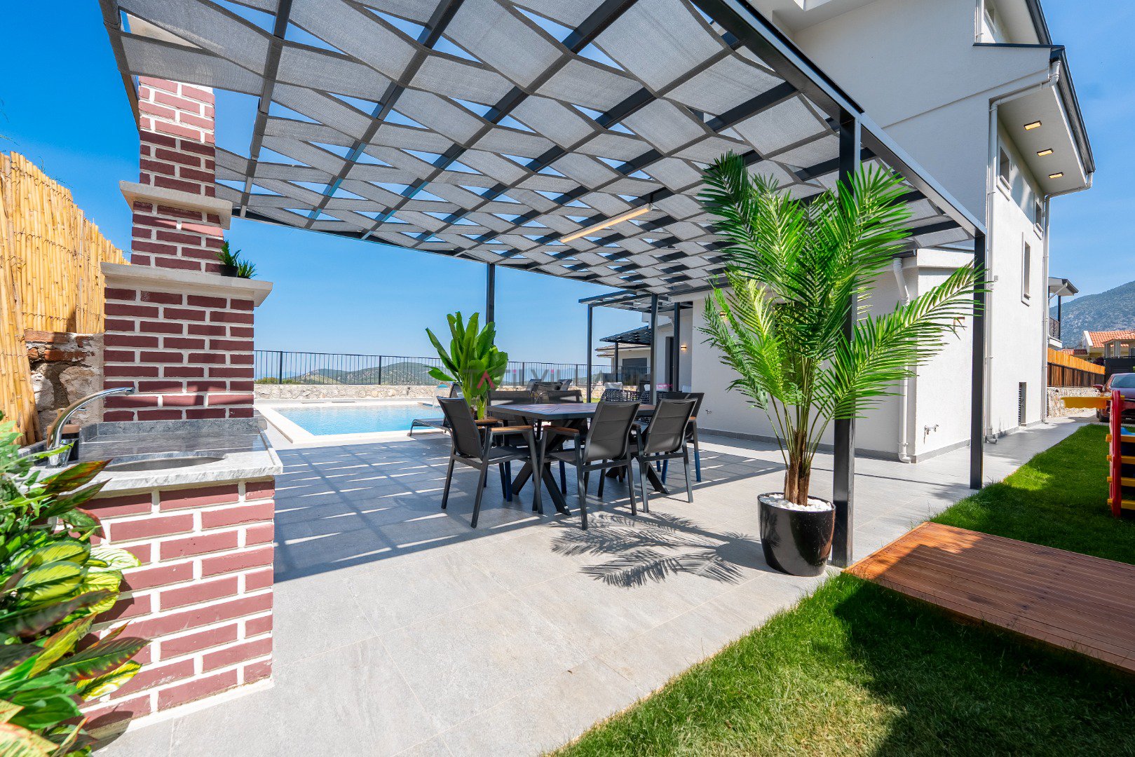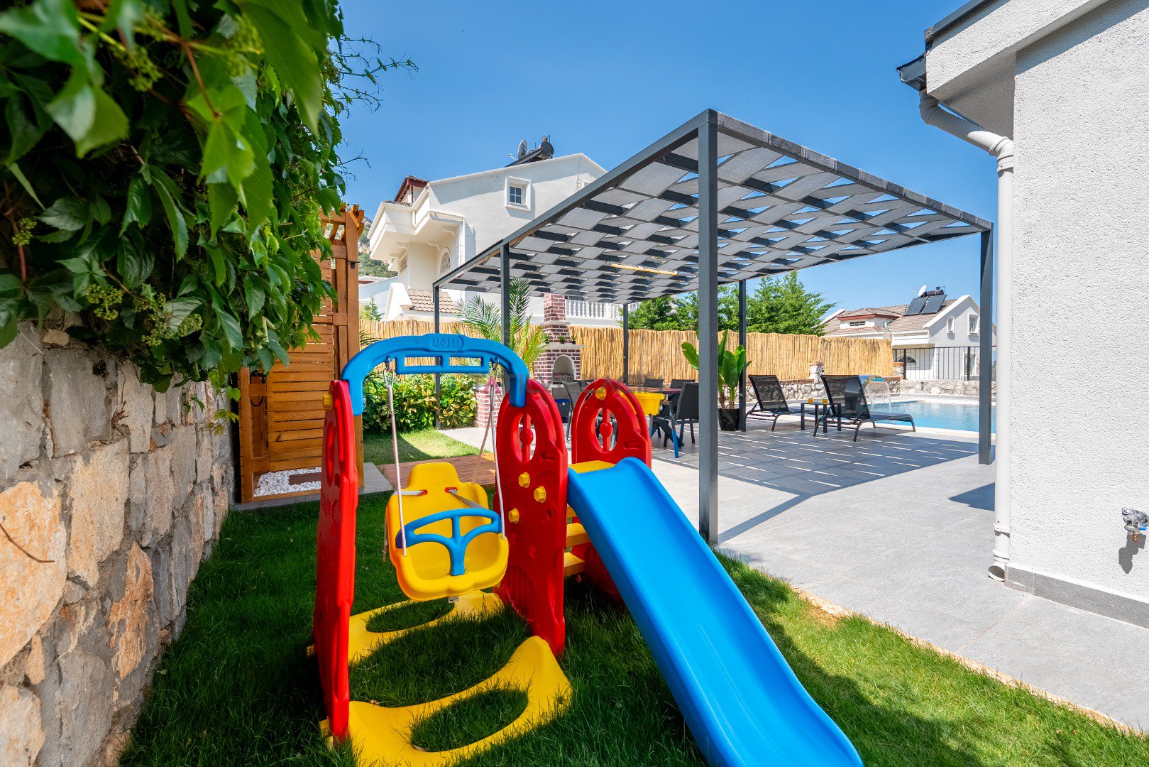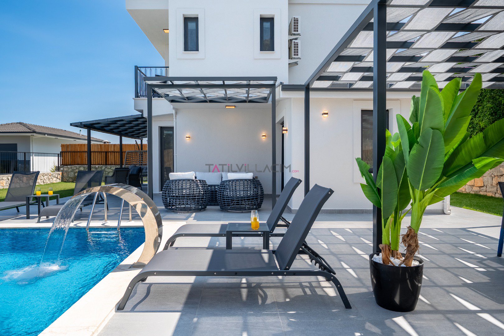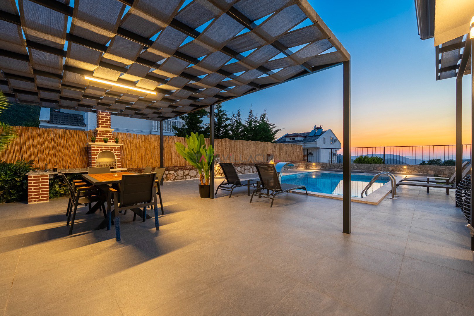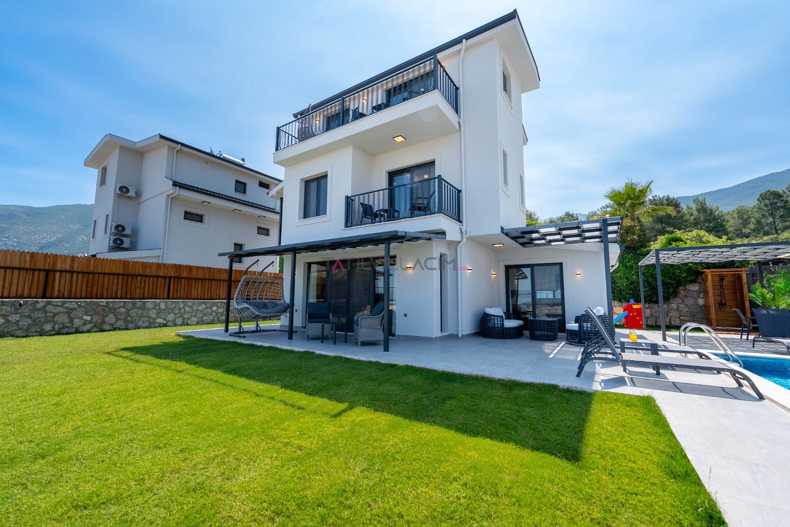 Toplam 6 kişilik konaklama kapasitesine sahip olan villamızda 3 yatak odası ve 3 banyo bulunmaktadır. Müstakil yapısı, geniş özel bahçesi, jakuzi, sauna ve çocuk oyun alanı ile konforlu ve keyifli bir tatil için ideal bir ortam sunmaktadır. Teleferik biniş noktasına yalnızca 700 metre uzaklıkta bulunan Villa Cleo ’da, gün boyunca yamaç paraşütü uçuşlarını izleyebileceğiniz panoramik deniz ve Babadağ manzarasının tadını çıkarabilirsiniz.