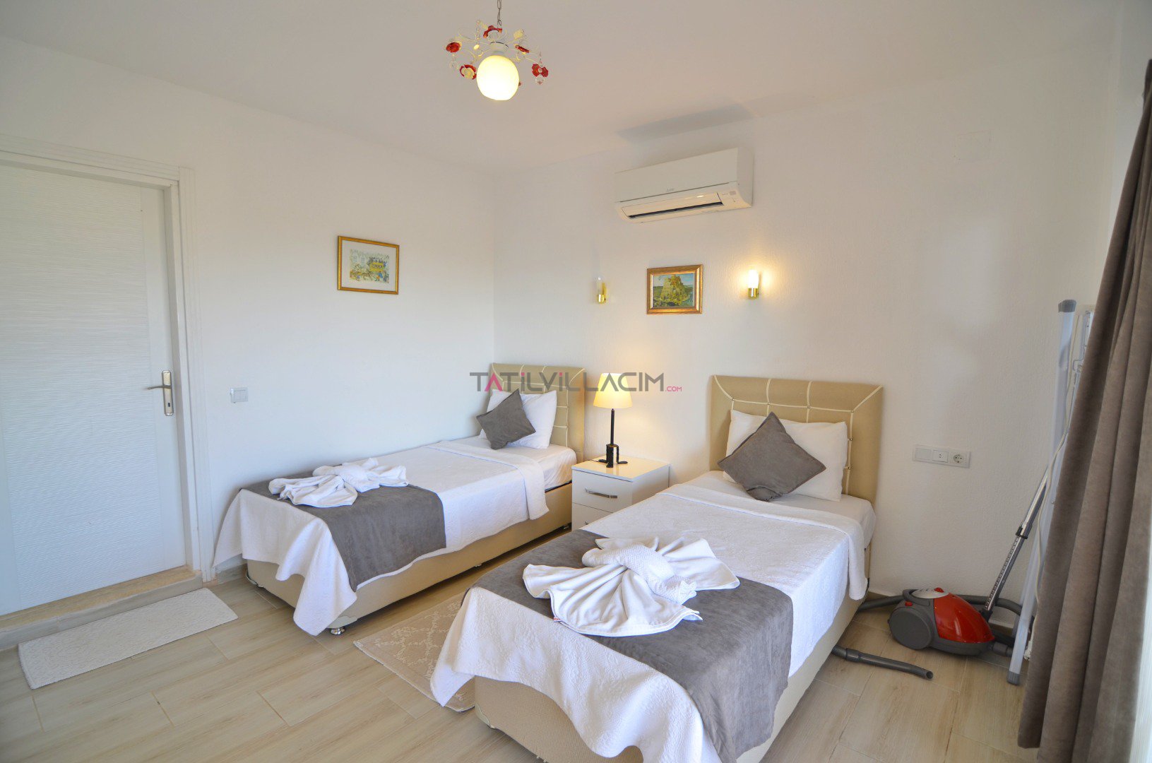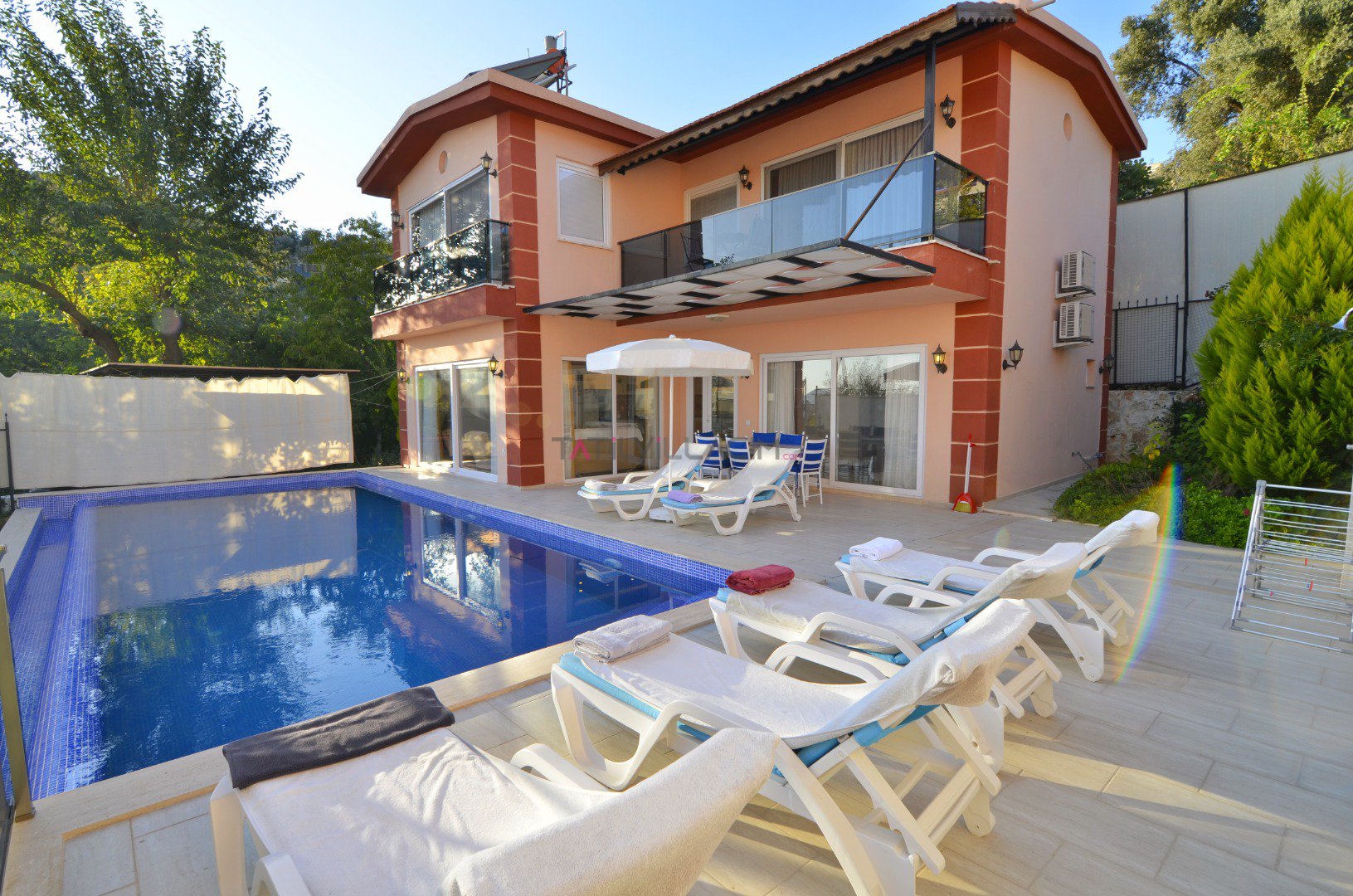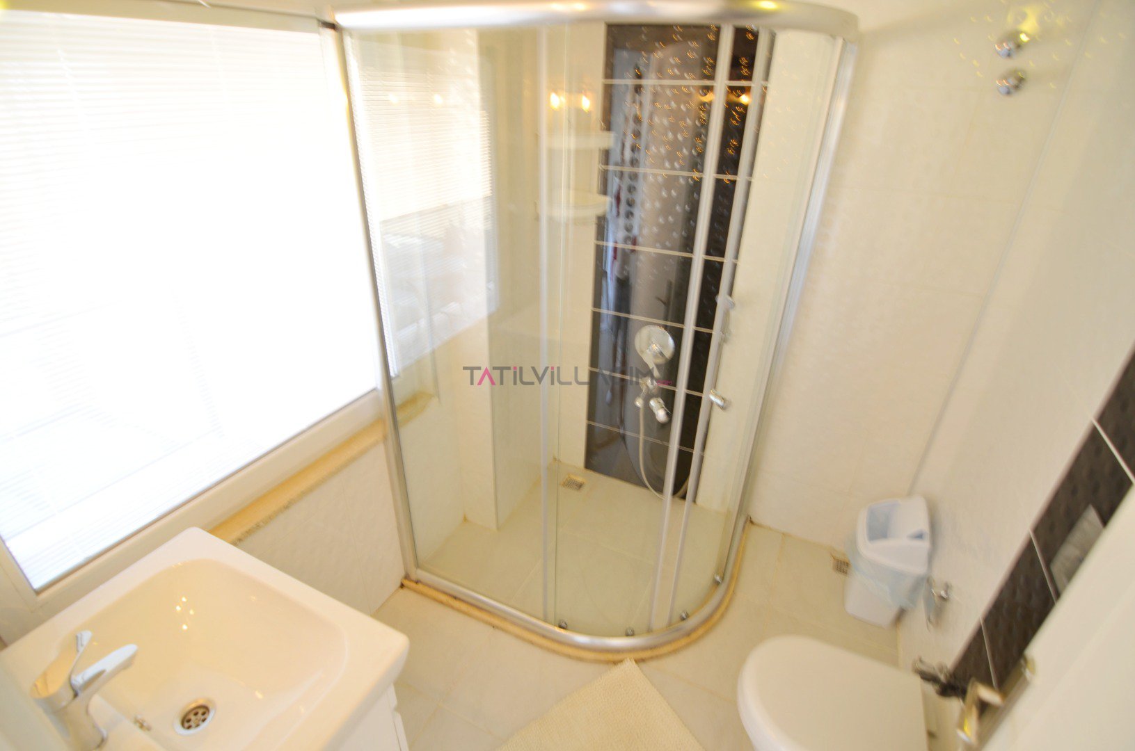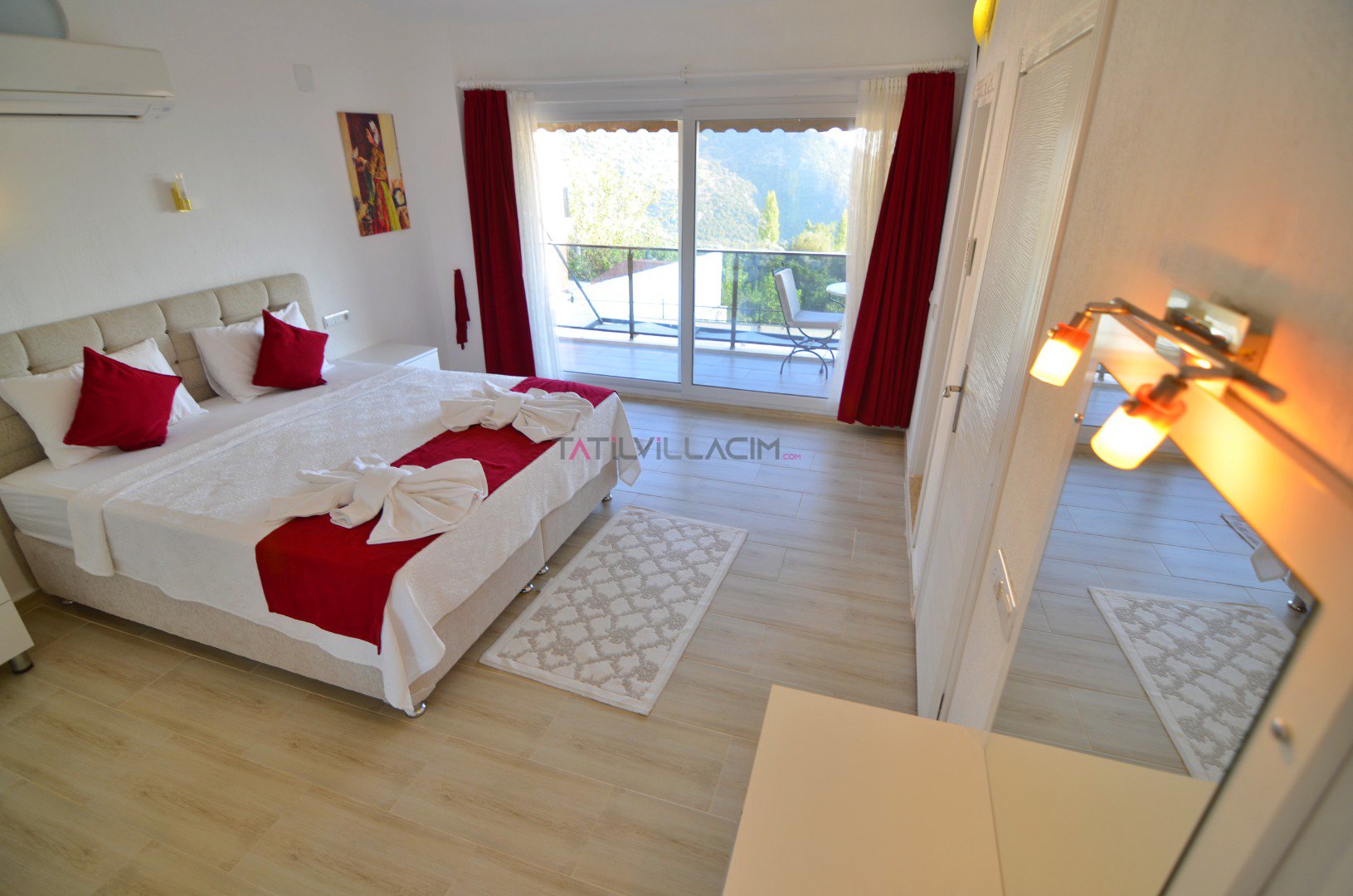 Kalkanın İslamlar bölgesinde bulunan 6 kişi kapasiteli havuz alanı dışarıdan görünmeyen muhafazakar tatil villası