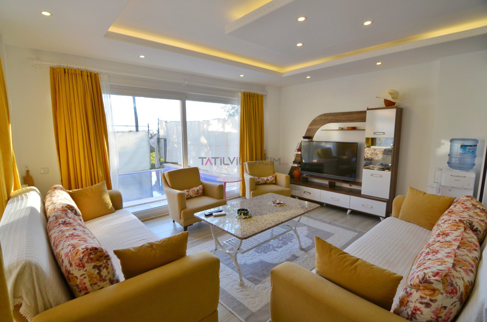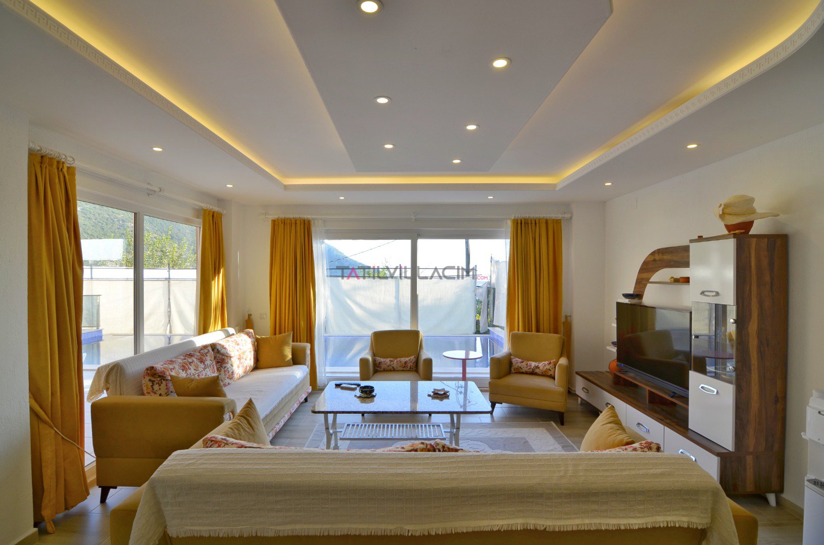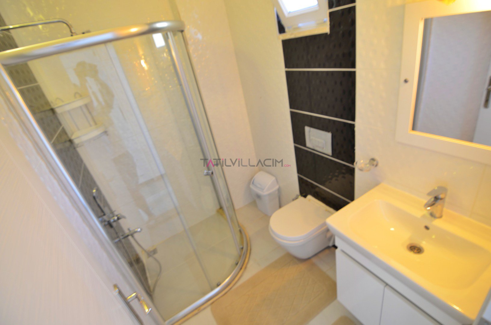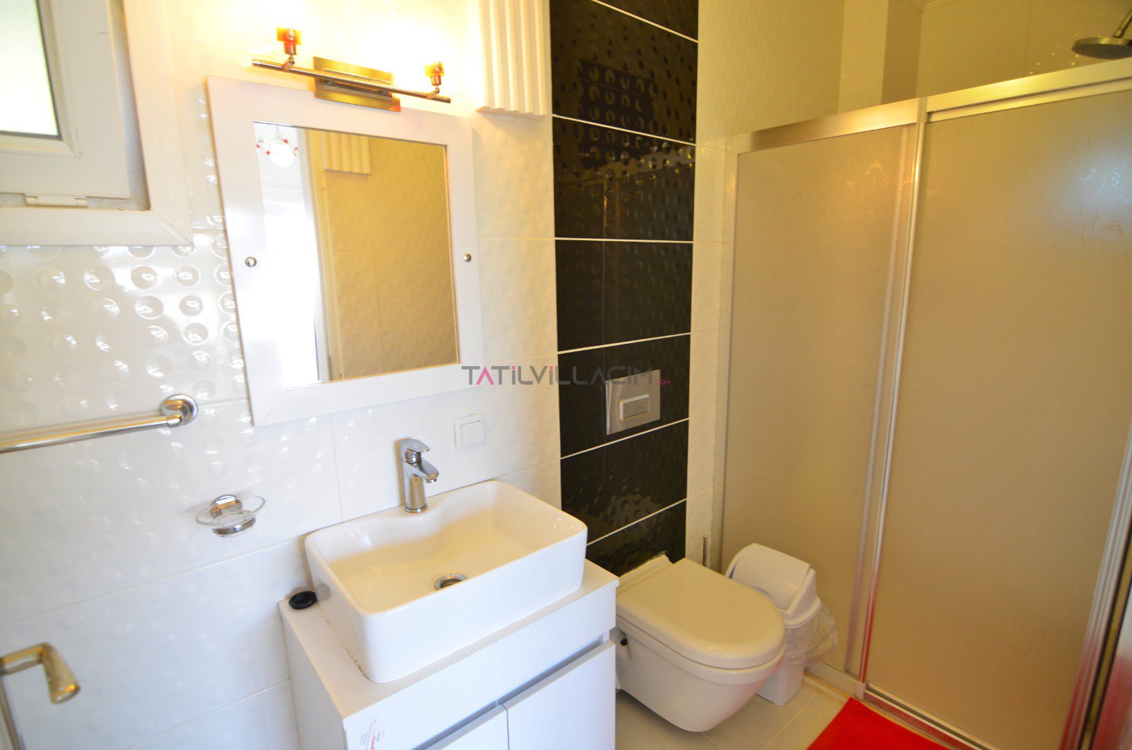 Kalkanın İslamlar bölgesinde bulunan 6 kişi kapasiteli havuz alanı dışarıdan görünmeyen muhafazakar tatil villası