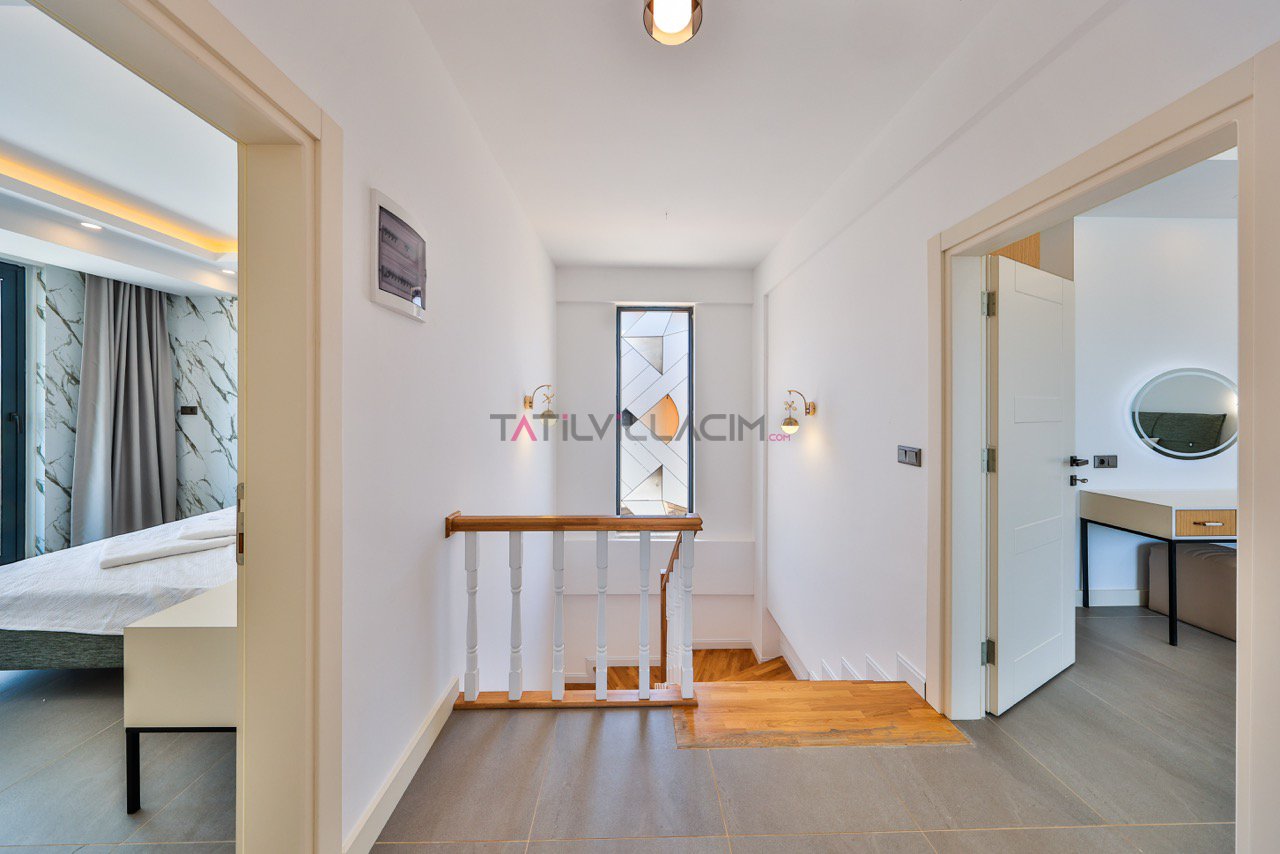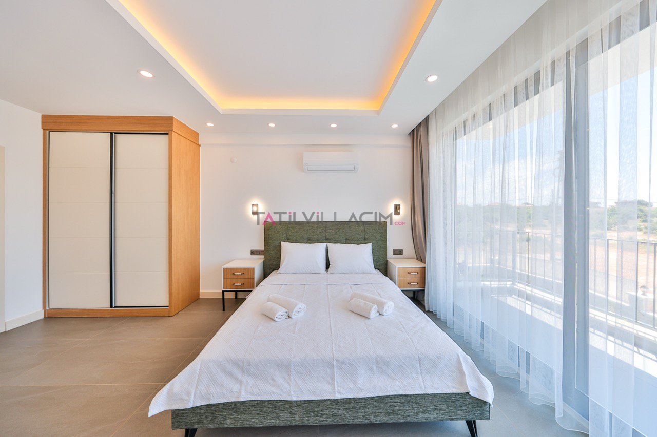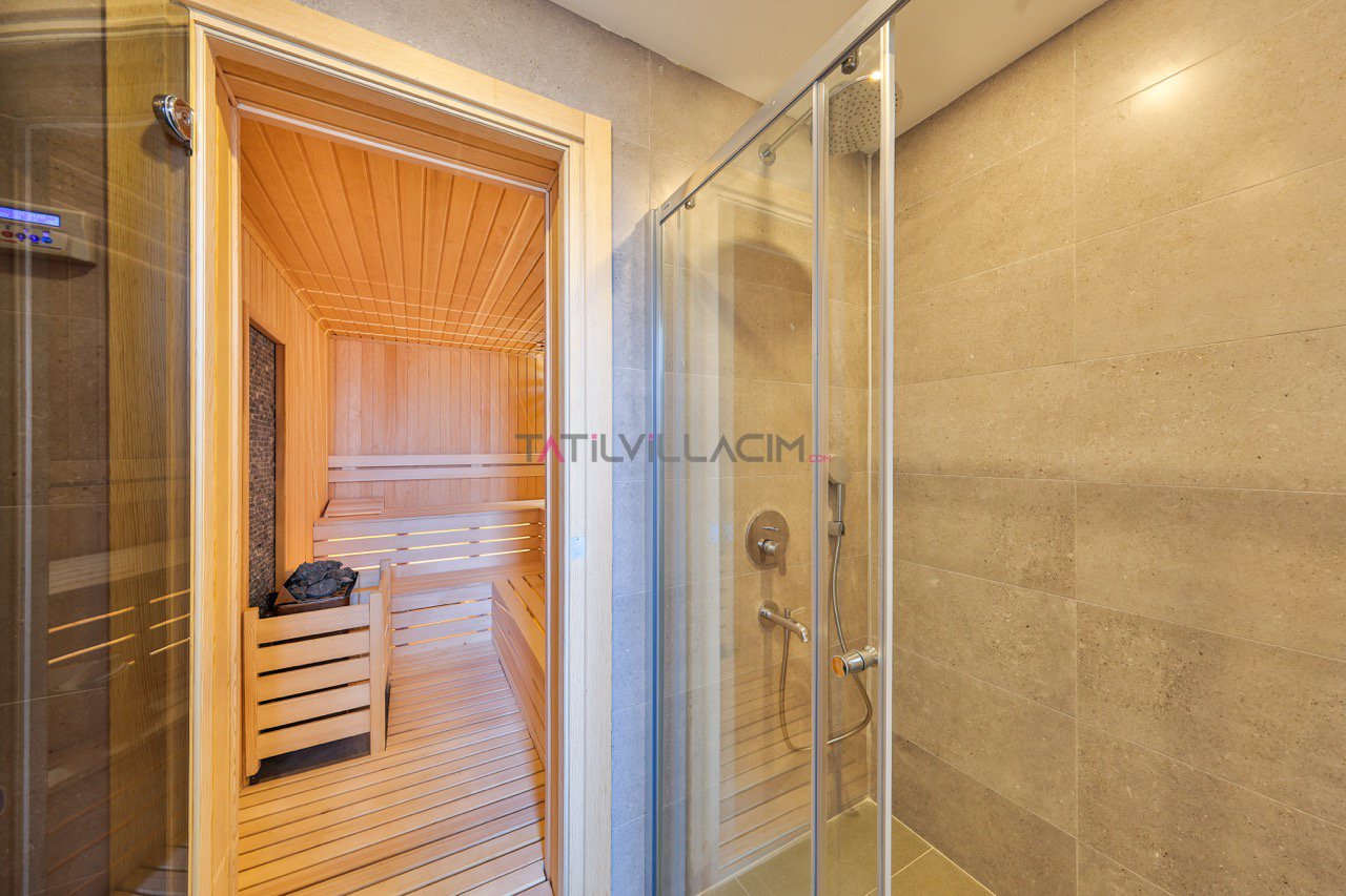 Villa Derinbağ, 4 yatak odalı yapısıyla kalabalık aileler veya arkadaş grupları için geniş ve rahat yaşam alanları sunar. Villanın iç tasarımı şık, modern ve ferah bir anlayışla dekore edilmiştir. Salıncak, langırt gibi eğlenceli aktivite alanları hem yetişkinler hem çocuklar için keyifli zaman geçirme imkânı sağlar. Isıtmalı kapalı havuz ve sauna ile yılın her döneminde konforlu bir tatil mümkündür.