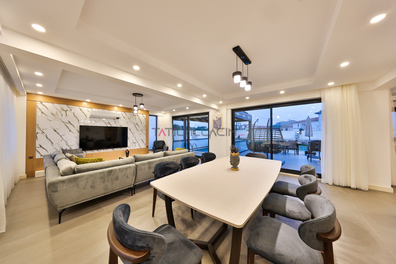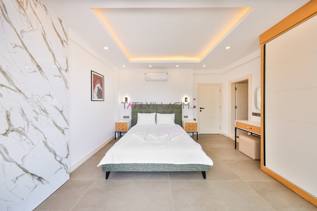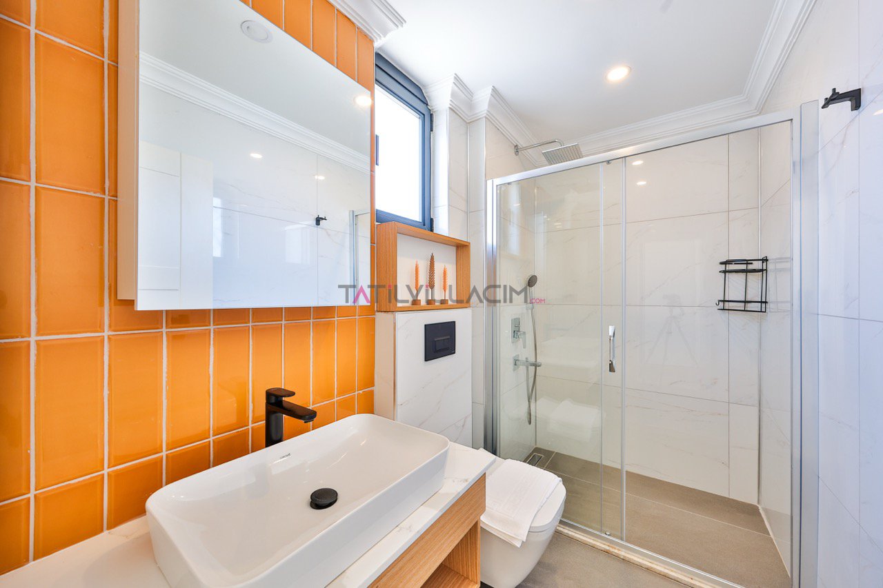 Villa Derinbağ, 4 yatak odalı yapısıyla kalabalık aileler veya arkadaş grupları için geniş ve rahat yaşam alanları sunar. Villanın iç tasarımı şık, modern ve ferah bir anlayışla dekore edilmiştir. Salıncak, langırt gibi eğlenceli aktivite alanları hem yetişkinler hem çocuklar için keyifli zaman geçirme imkânı sağlar. Isıtmalı kapalı havuz ve sauna ile yılın her döneminde konforlu bir tatil mümkündür.