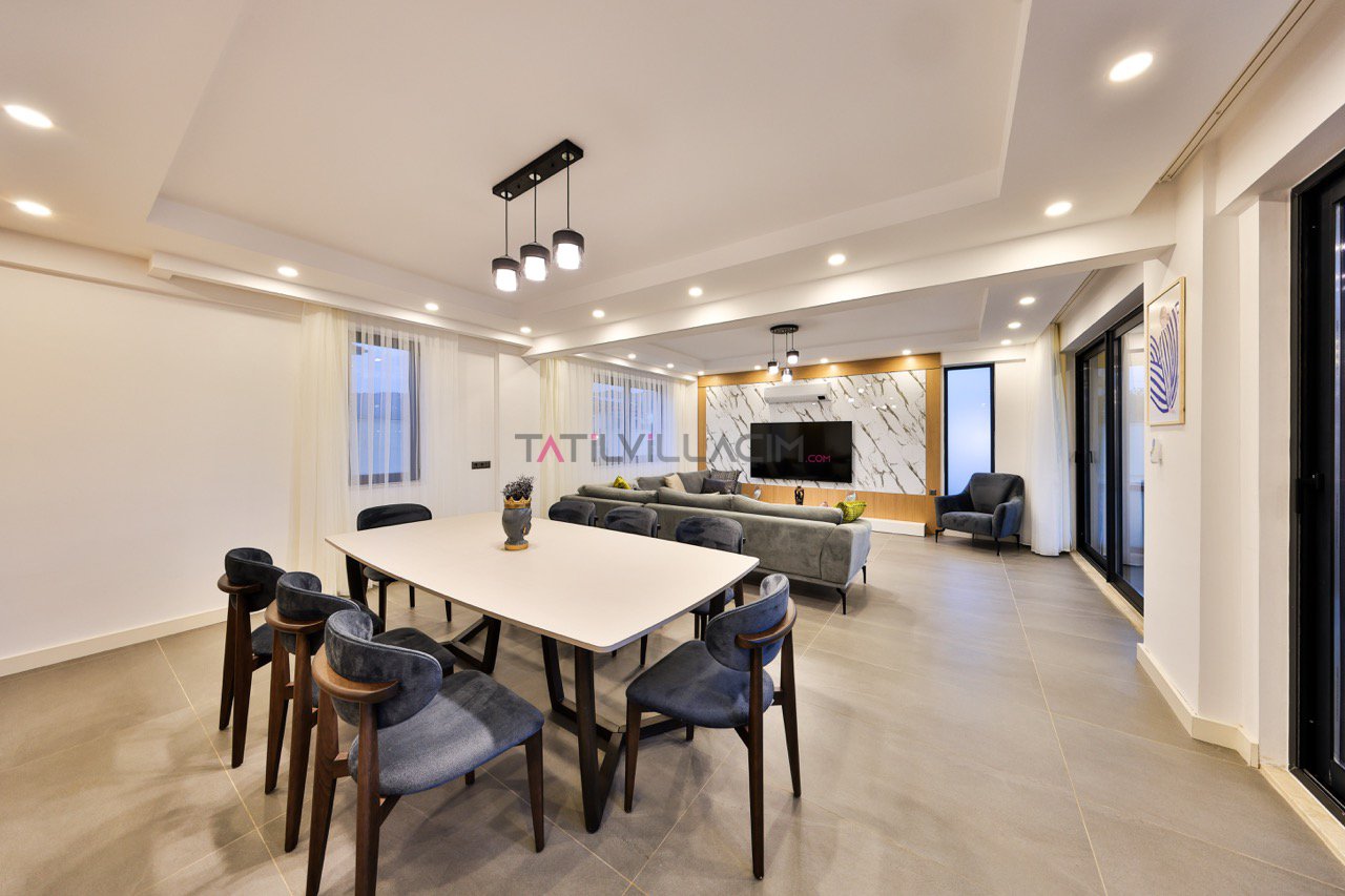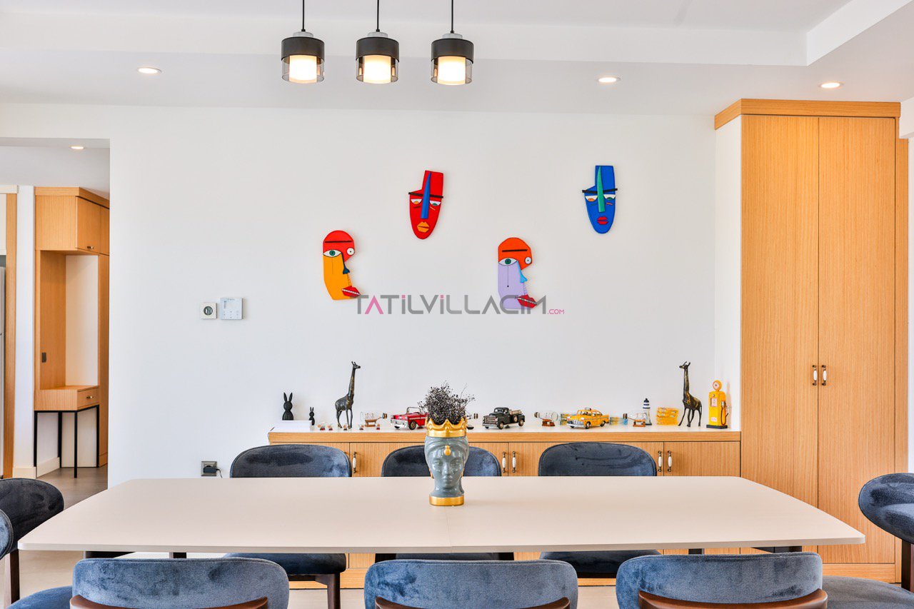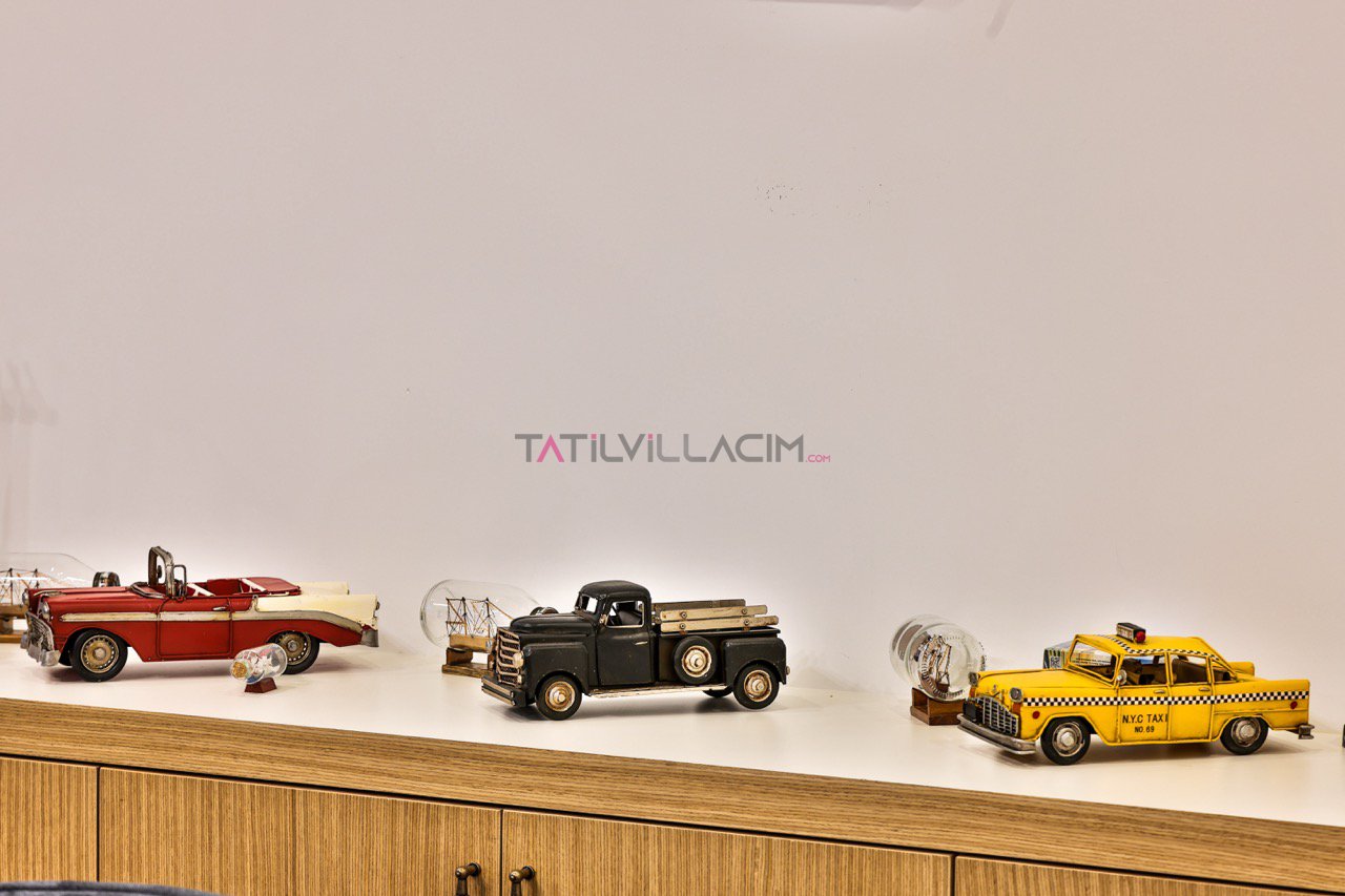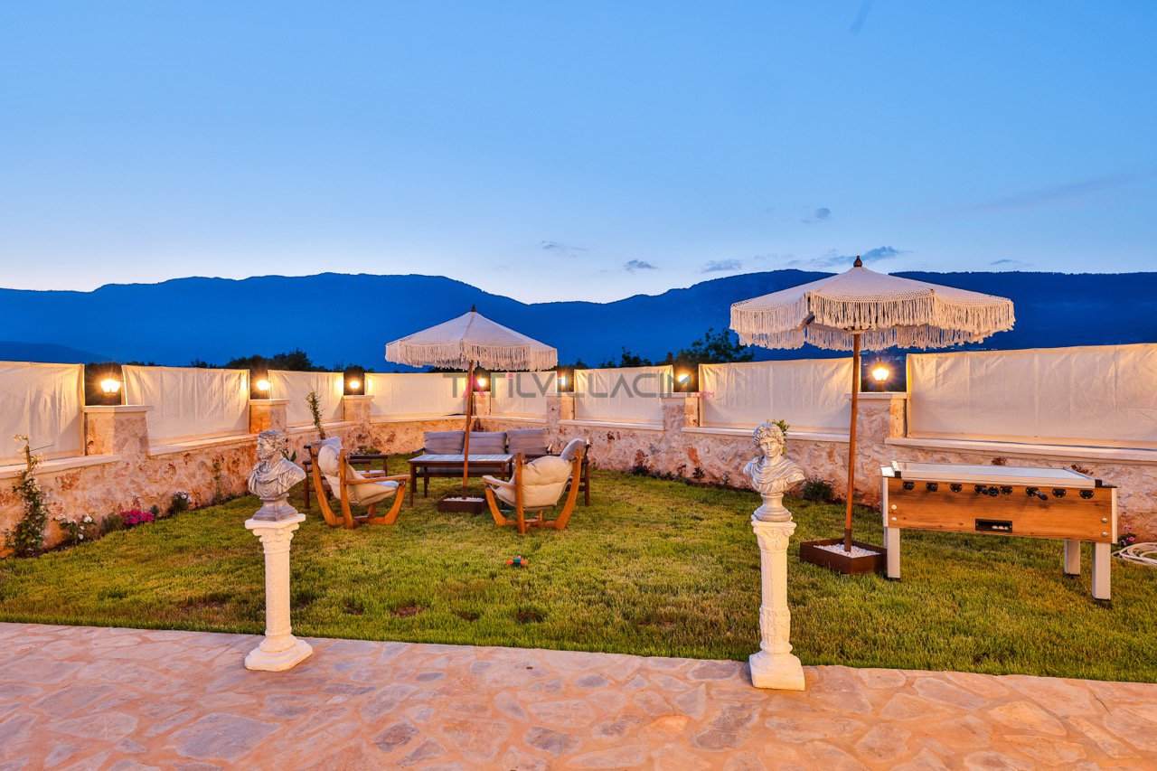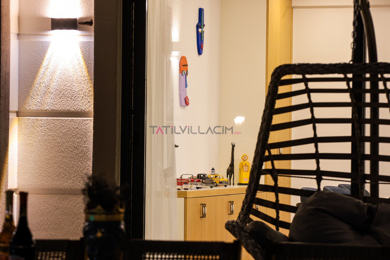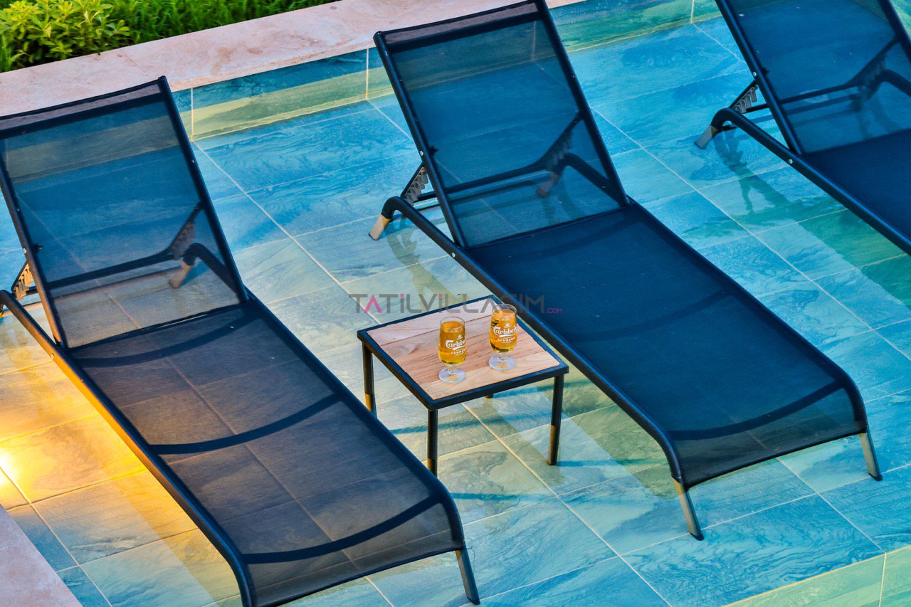 Bahçesinde yer alan zarif heykeller ve özenle düzenlenmiş oturma alanları, villayı adeta bir açık hava sanat galerisine dönüştürür. Geniş bahçe mobilyaları, gün batımını izlerken ya da akşam serinliğinde sevdiklerinizle sohbet ederken mükemmel bir atmosfer sunar.