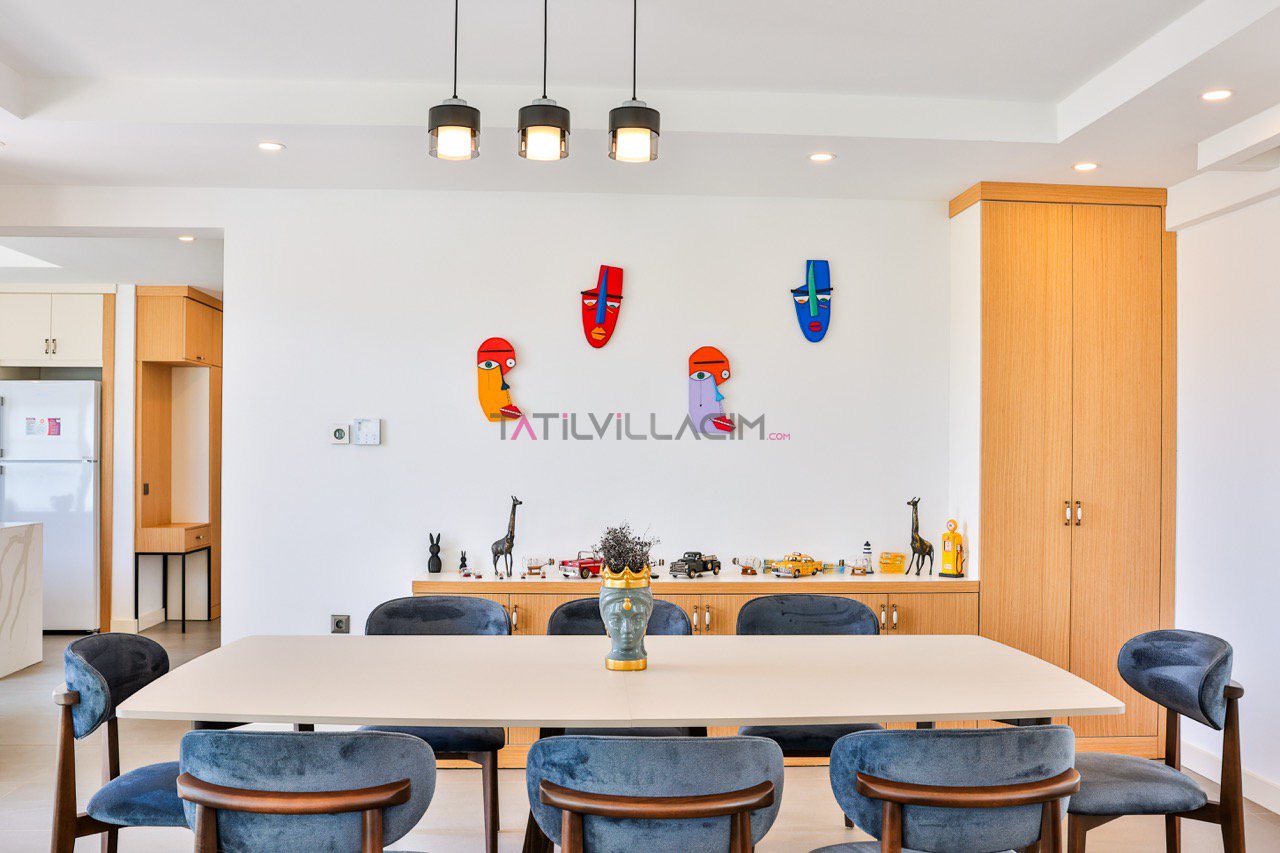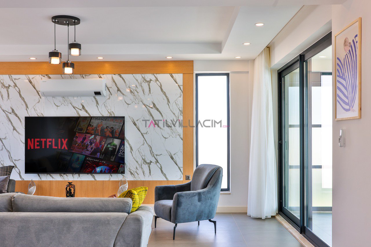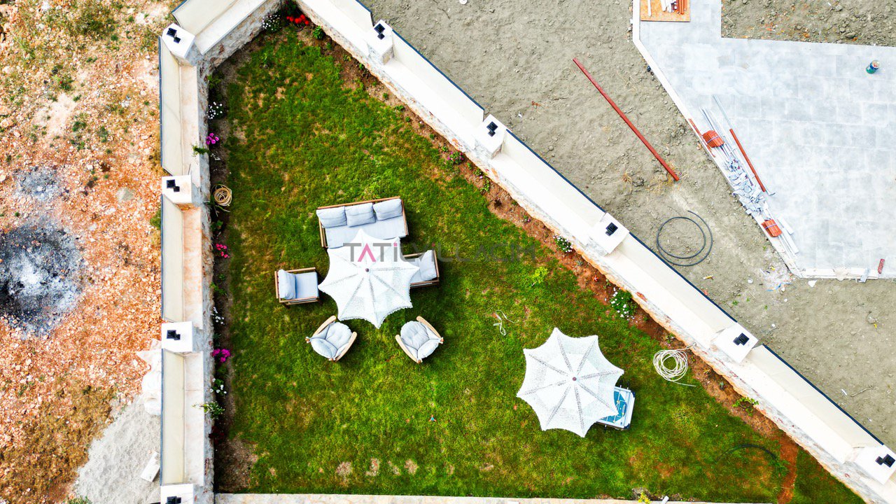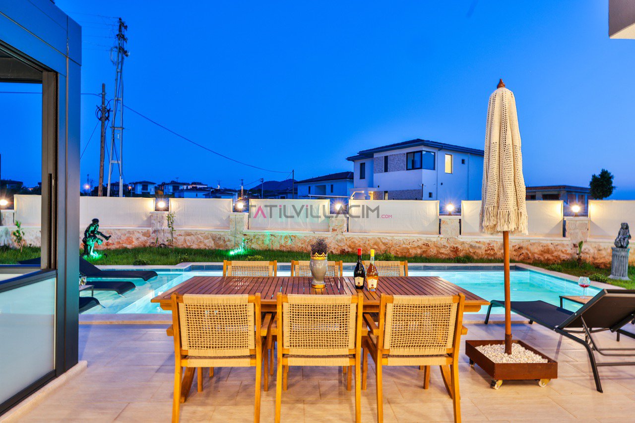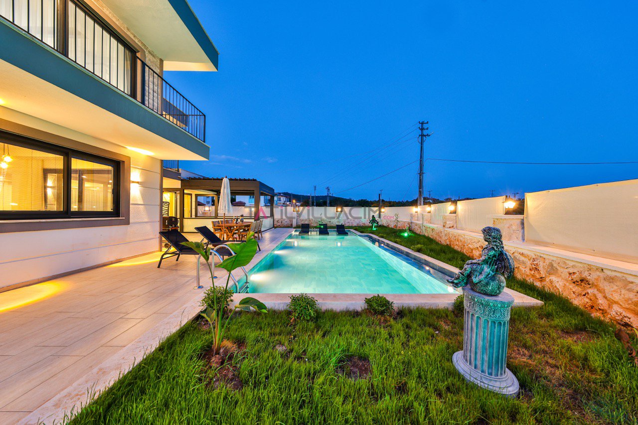 Bahçesinde yer alan zarif heykeller ve özenle düzenlenmiş oturma alanları, villayı adeta bir açık hava sanat galerisine dönüştürür. Geniş bahçe mobilyaları, gün batımını izlerken ya da akşam serinliğinde sevdiklerinizle sohbet ederken mükemmel bir atmosfer sunar.