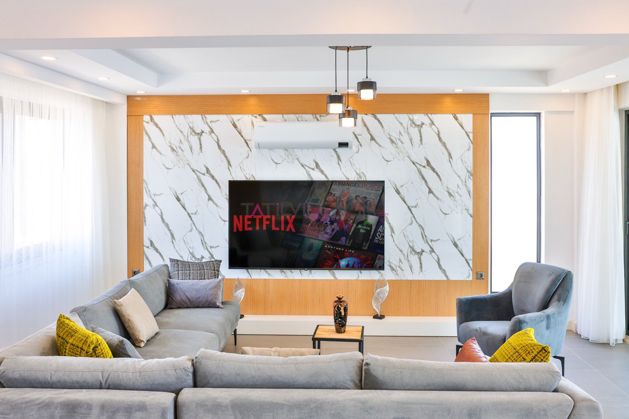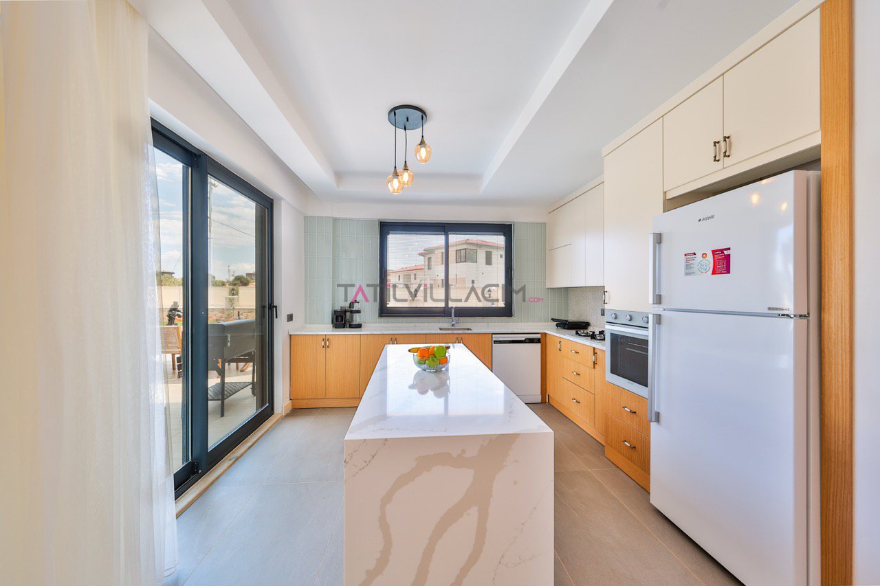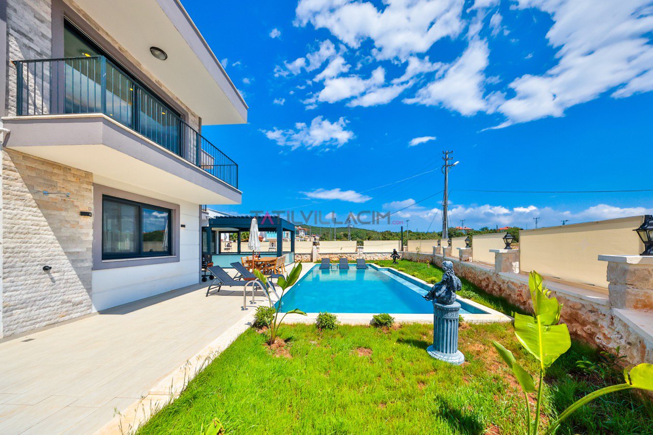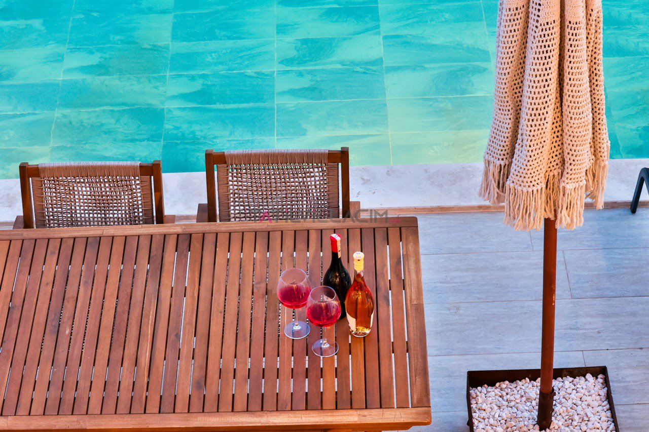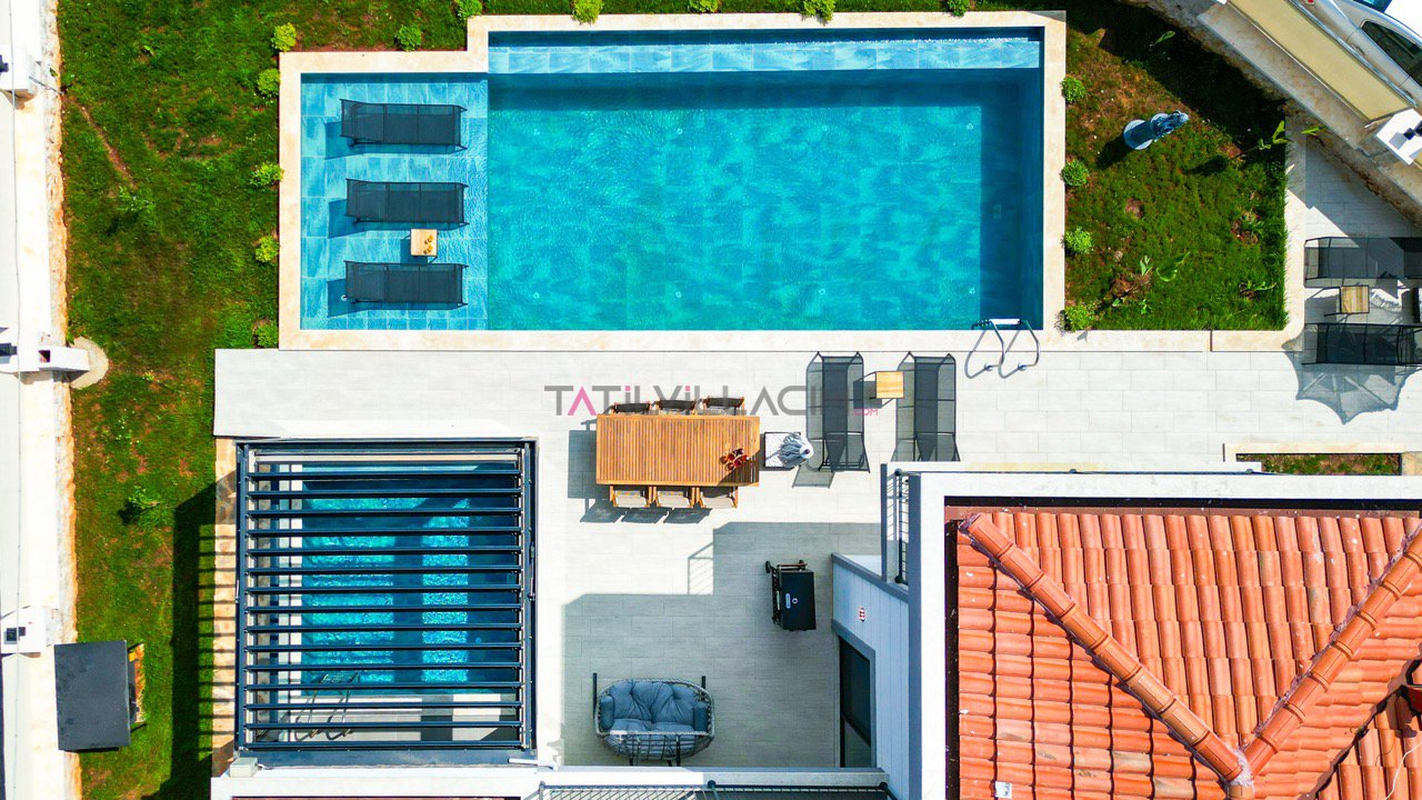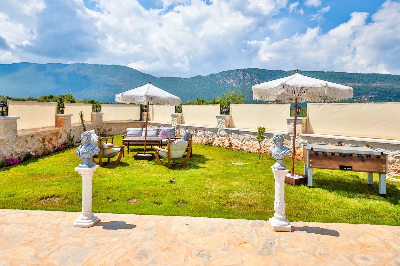 Bahçesinde yer alan zarif heykeller ve özenle düzenlenmiş oturma alanları, villayı adeta bir açık hava sanat galerisine dönüştürür. Geniş bahçe mobilyaları, gün batımını izlerken ya da akşam serinliğinde sevdiklerinizle sohbet ederken mükemmel bir atmosfer sunar.