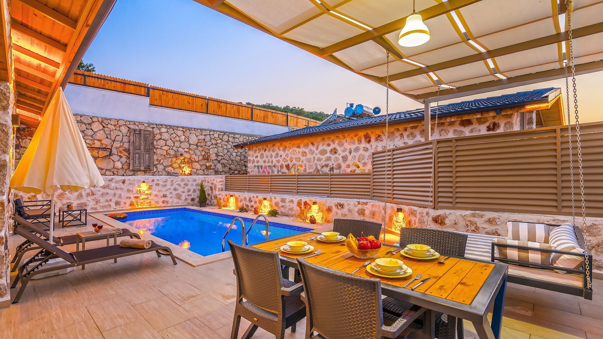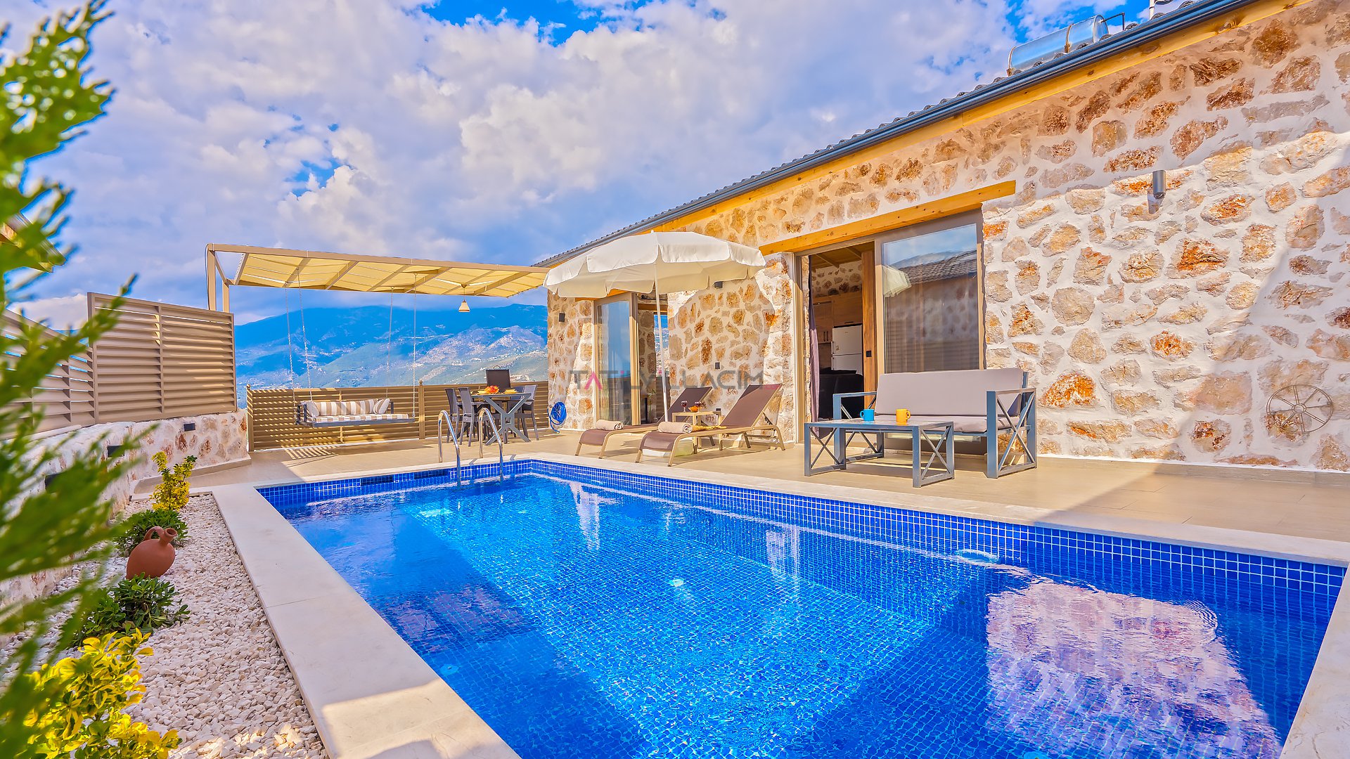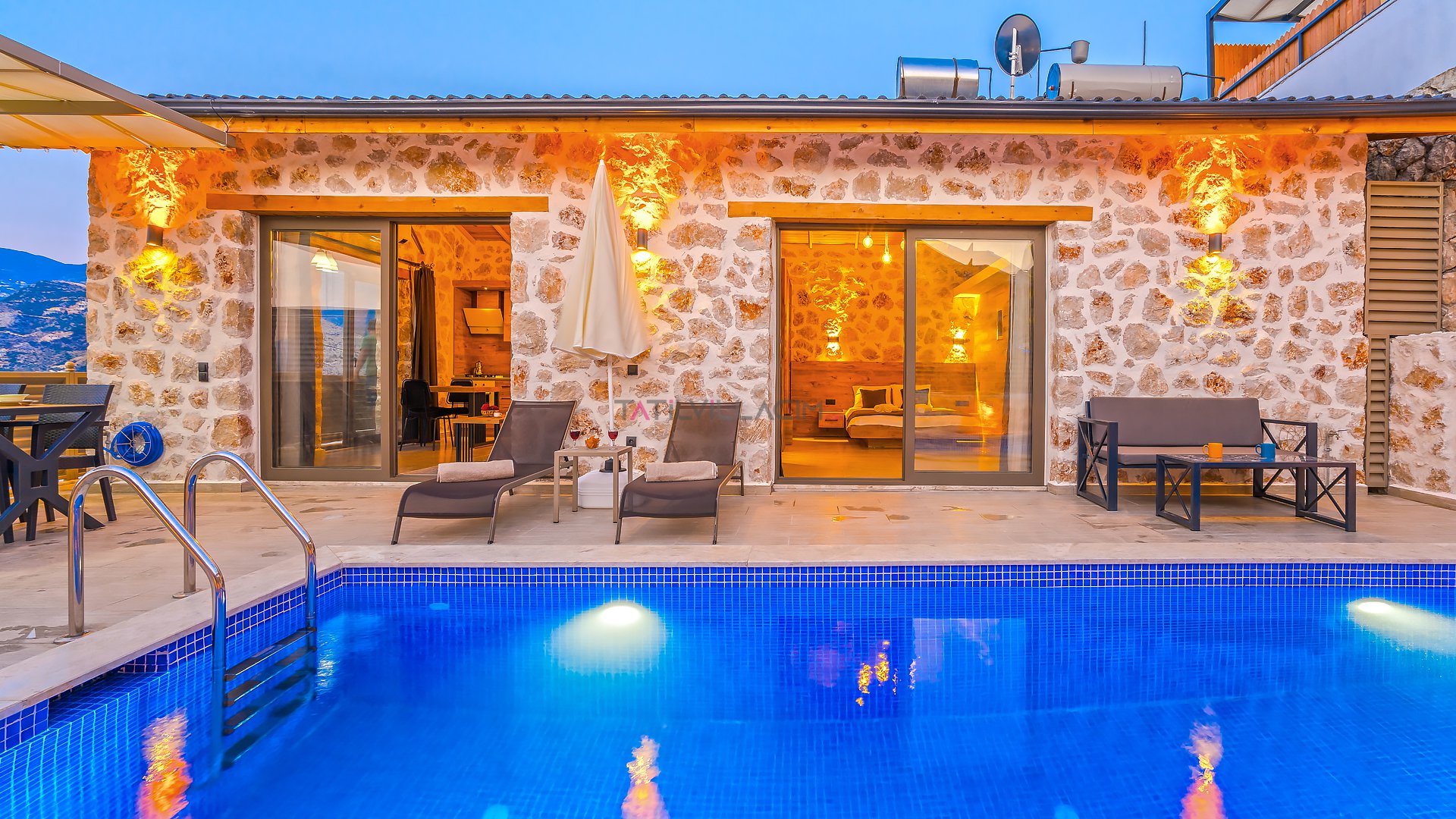 Villa Özellikleri Barbekü (Mangal) Bardak Takımı Bulaşık Makinası Buzdolabı Çamaşır Makinası Dağ Doğa 1 Çift Kişilik Yatak Amerikan Mutfak Ankastre 4 lü Ocak Ankastre Fırın Full Eşyalı ve Mobilyalı Havuz Terasına Çıkış İnternet Bağlantısı Kablosuz Modem Kaşık Çatal Bıçak Takımı Klima Oturma Grubu Özel Bahçeli Özel Havuz Sandalyeler Sehpa Şemsiye Şezlong Tencere ve Tava Takımı TV Uydu Alıcı Yemek Masası Yemek Takımı Barbekü Doğa Manzaralı Jeneratör