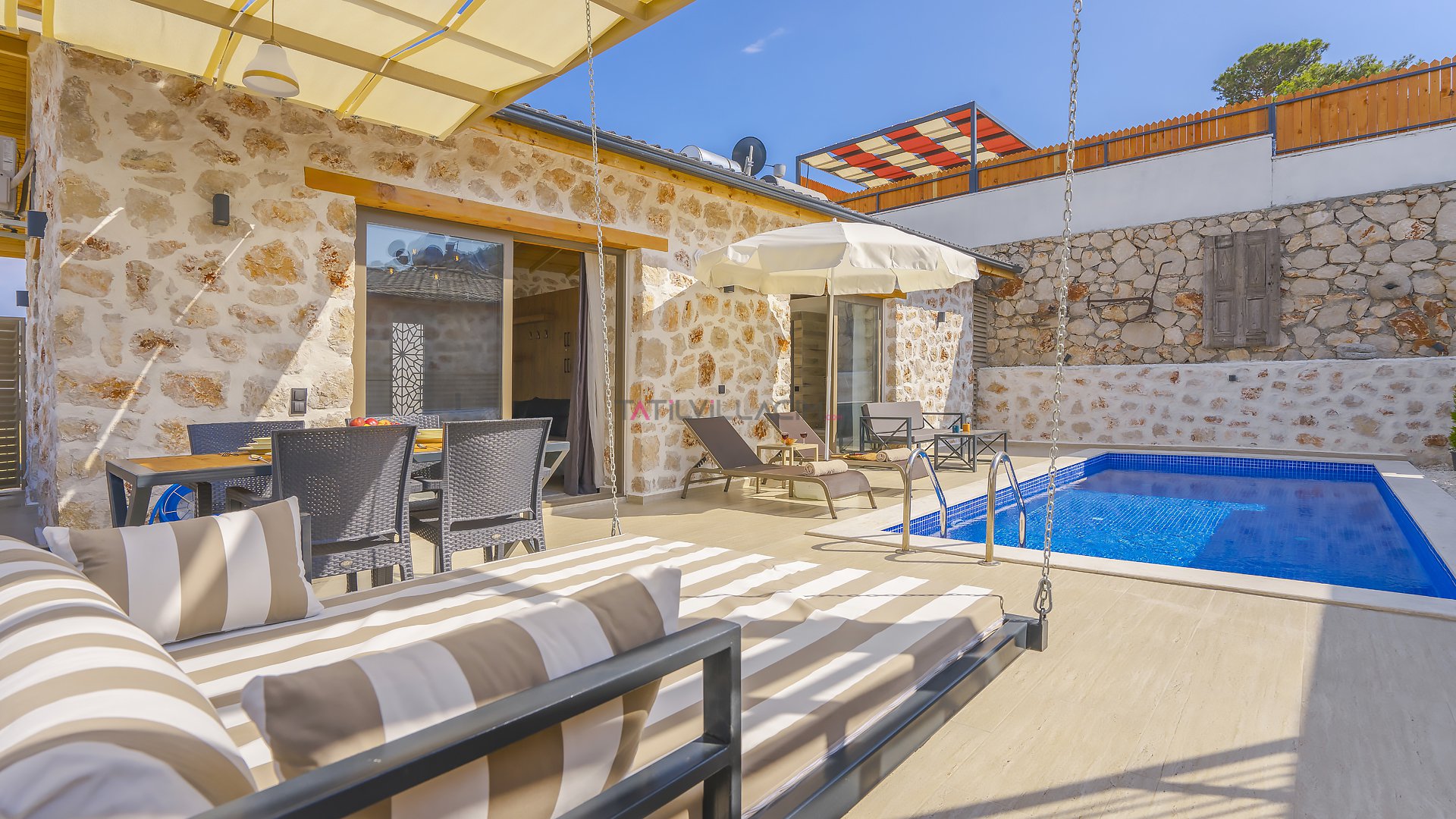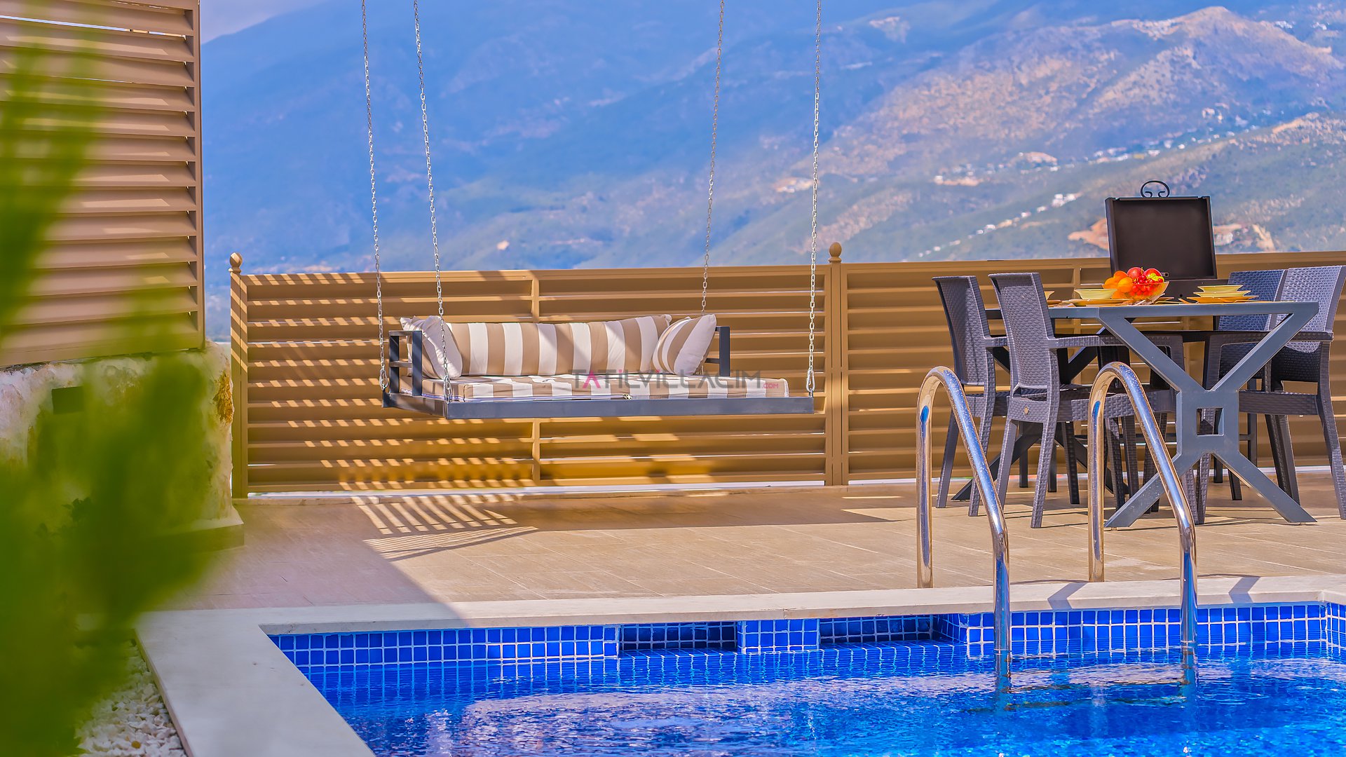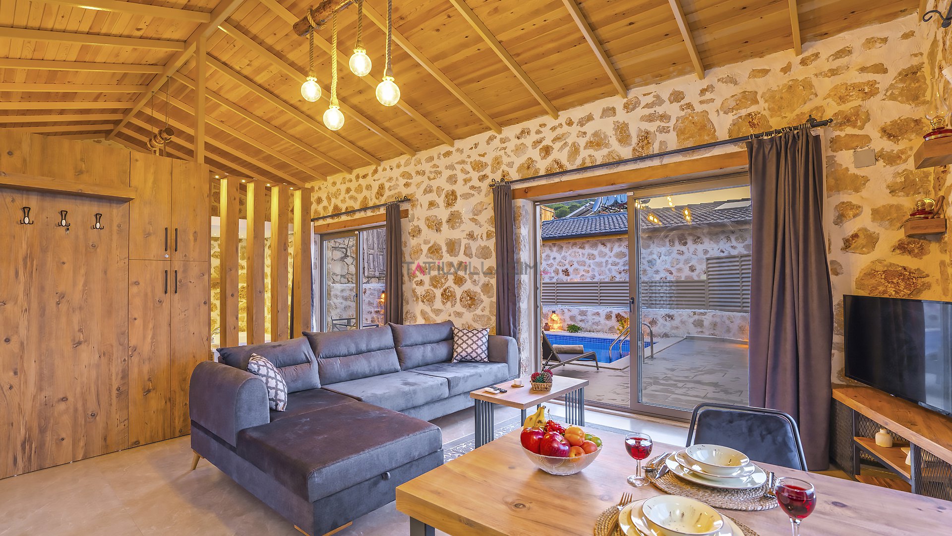 Villa Özellikleri Barbekü (Mangal) Bardak Takımı Bulaşık Makinası Buzdolabı Çamaşır Makinası Dağ Doğa 1 Çift Kişilik Yatak Amerikan Mutfak Ankastre 4 lü Ocak Ankastre Fırın Full Eşyalı ve Mobilyalı Havuz Terasına Çıkış İnternet Bağlantısı Kablosuz Modem Kaşık Çatal Bıçak Takımı Klima Oturma Grubu Özel Bahçeli Özel Havuz Sandalyeler Sehpa Şemsiye Şezlong Tencere ve Tava Takımı TV Uydu Alıcı Yemek Masası Yemek Takımı Barbekü Doğa Manzaralı Jeneratör