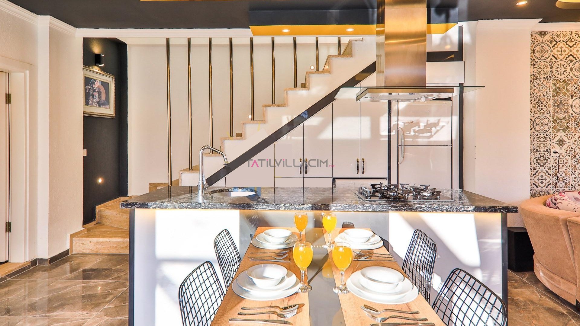Villada bulunan modern tasarımlı yatak odaları, jakuzili suit oda, tam donanımlı mutfak