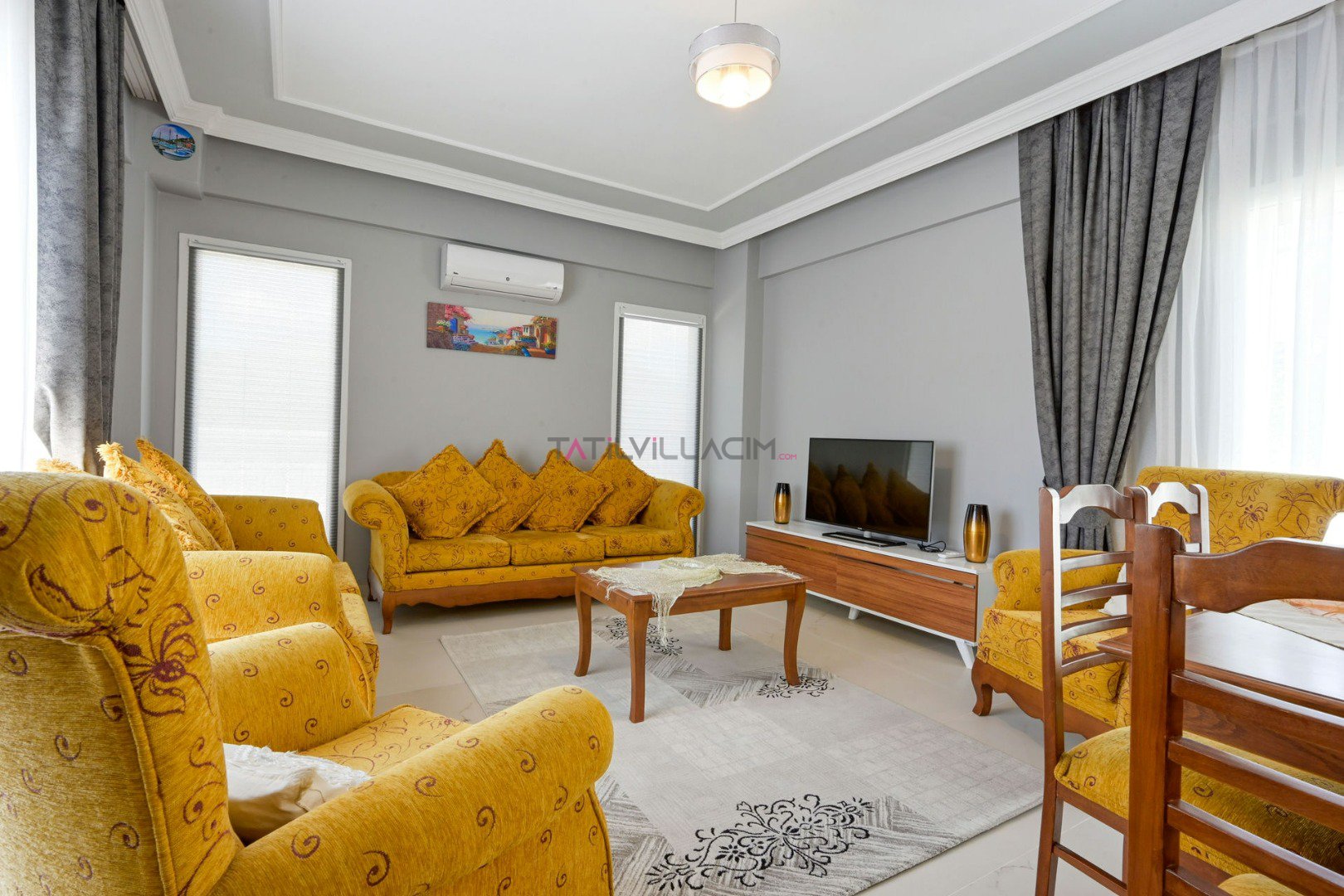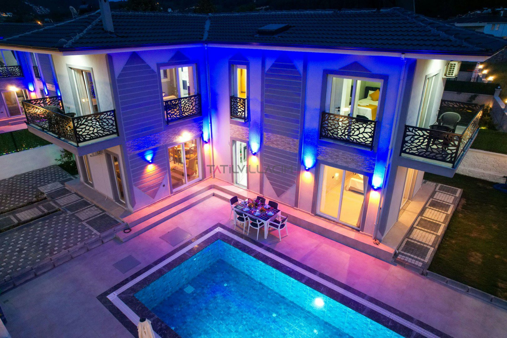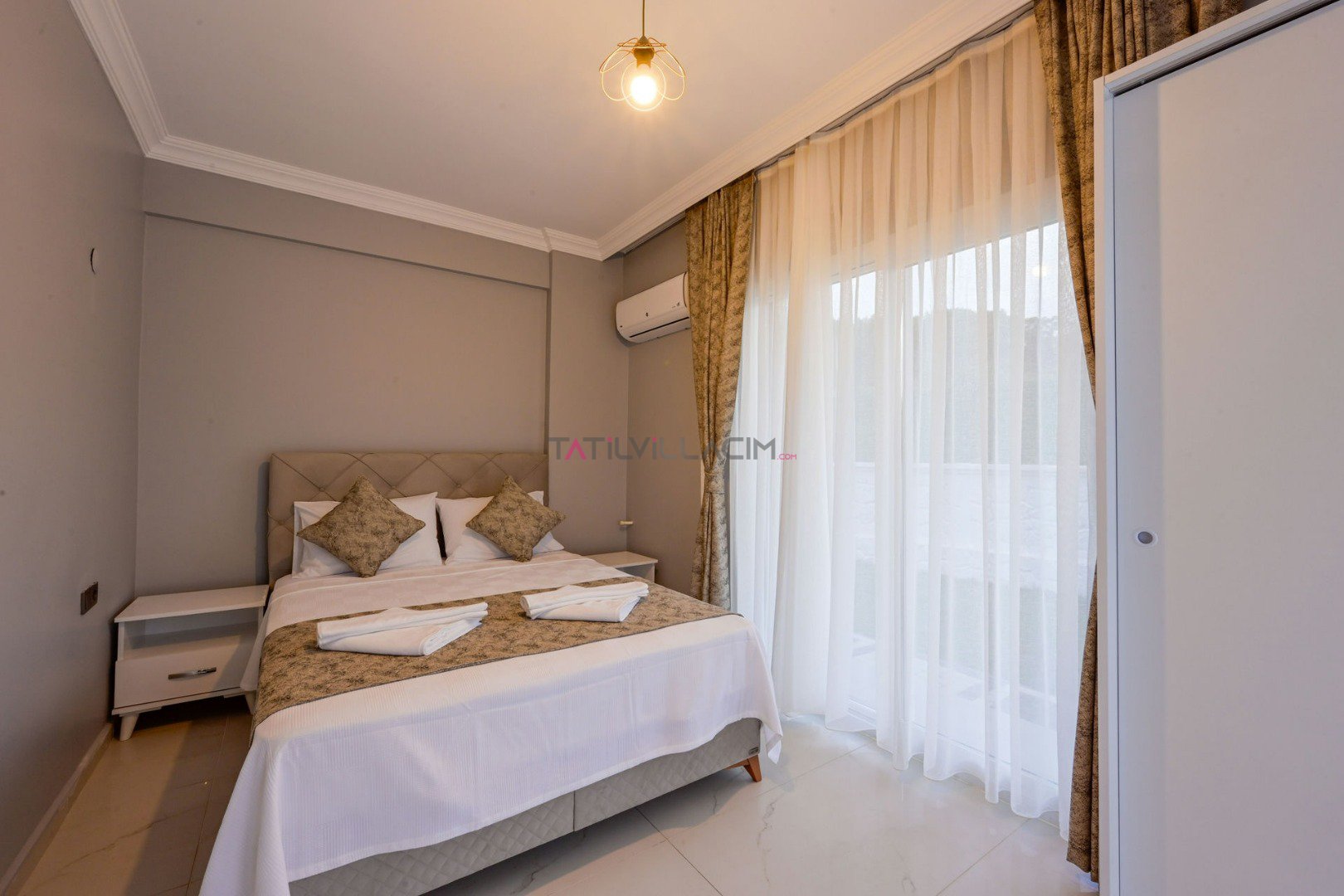 4 yatak odası ve 8 kişilik kapasitesi ile aileler ve arkadaş grupları için konforlu bir konaklama imkânı sunan villa, modern ve sade tasarlanmış iç mekânlarıyla rahatlığı ön planda tutar. Tüm odalarda klima, 3 banyo ve ferah yaşam alanları tatiliniz boyunca ihtiyaç duyacağınız konforu sağlar.