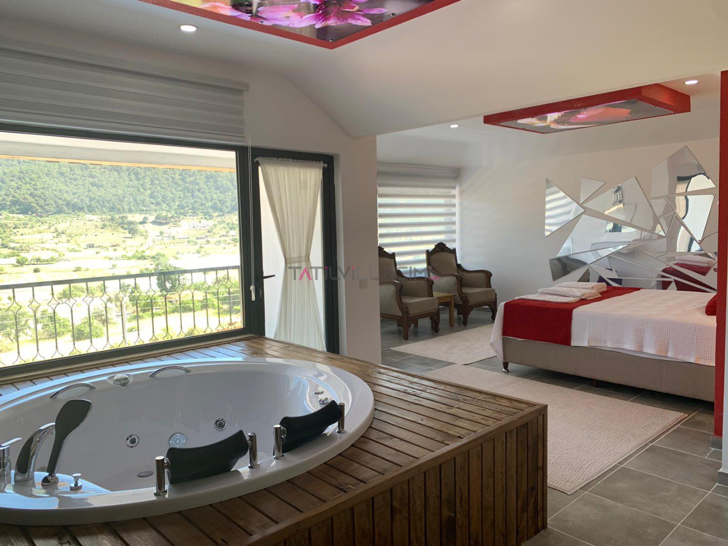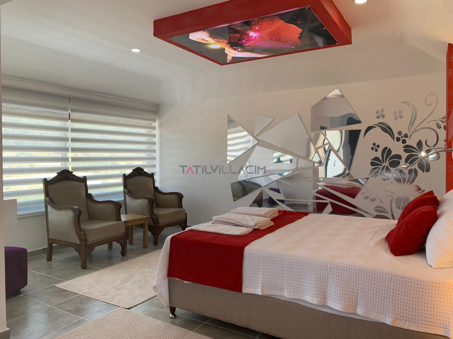 2 kişi konaklama kapasitesine sahip olan villamızın 1 adet yatak odası, 1 adet banyosu ve jakuzisi mevcuttur.