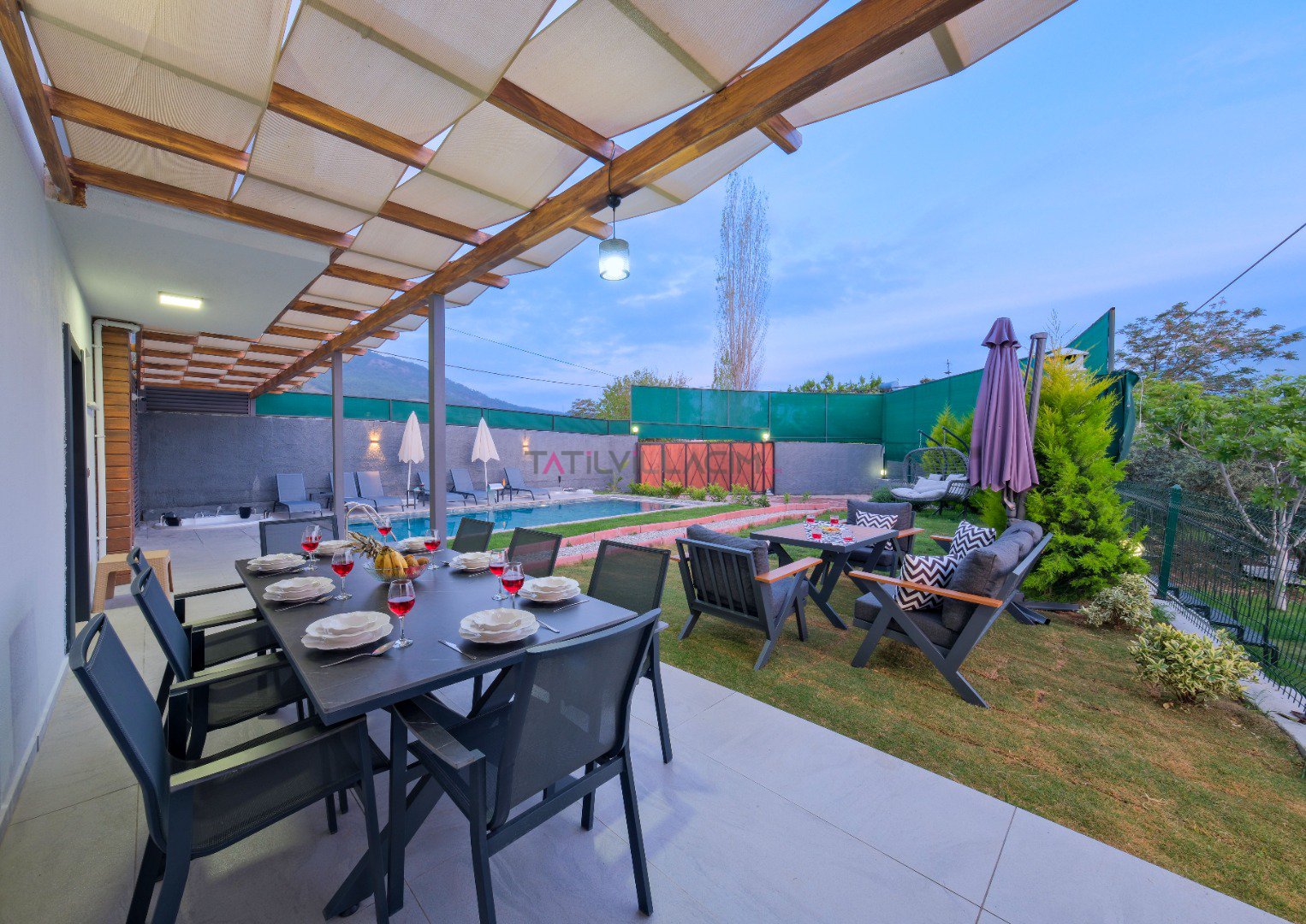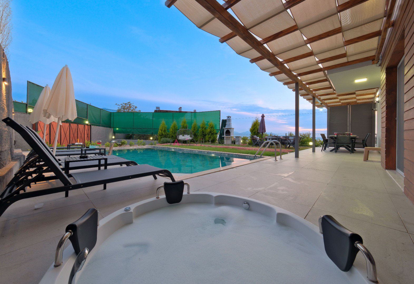 Villa Özellikleri 1 Çift Kişilik Yatak Amerikan Mutfak Ankastre 4 lü Ocak Ankastre Fırın Barbekü (Mangal) Bardak Takımı Bulaşık Makinası Buzdolabı Çamaşır Makinası Balkon/Deck/Teras Dağ Doğa Full Eşyalı ve Mobilyalı Havuz Terasına Çıkış İnternet Bağlantısı Kablosuz Modem Kaşık Çatal Bıçak Takımı Klima Otopark / Park Yeri Oturma Grubu Özel Bahçeli Özel Havuz Sandalyeler Sehpa Şemsiye Şezlong Su Isıtıcısı Tencere ve Tava Takımı TV Uydu Alıcı Yemek Masası Yemek Takımı Jakuzi Barbekü Geniş Ailelere Uygun Doğa Manzaralı Çift Jakuzili Bahçeli
