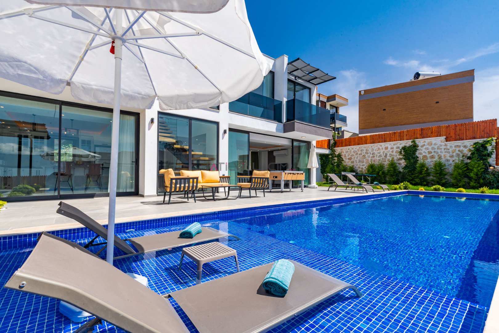 Kalkan'ın Akbel bölgesinde yer alan Villa Fly 2 , 4 kişi konaklama kapasitesine sahip tatil villamızdır. 2 adet yatak odası ve 2 adet banyosu bulunan villamızın, ebeveyn yatak odasında jakuzisi de mevcuttur. Korunaklı havuz alanı sayesinde çevreden izeole tatil fırsatı sunan villamızın, geniş havuz terasında langırt, masa tenisi, yeşil bahçe alanı ve bahçe salıncağı da bulunuyor. Konumu dolayısı ile de bir çok avantaj sunan villamız merkeze ve plaja oldukça yakındır.