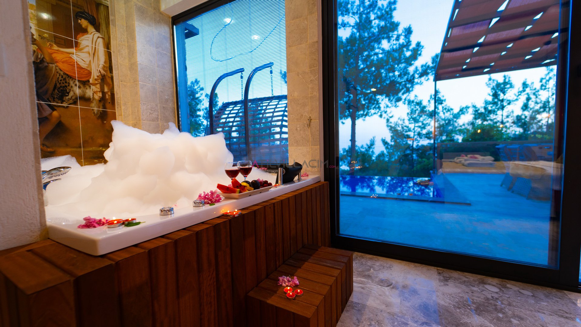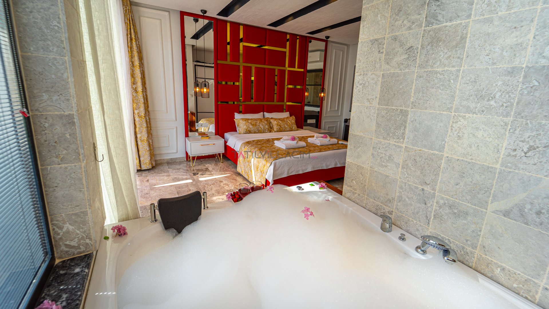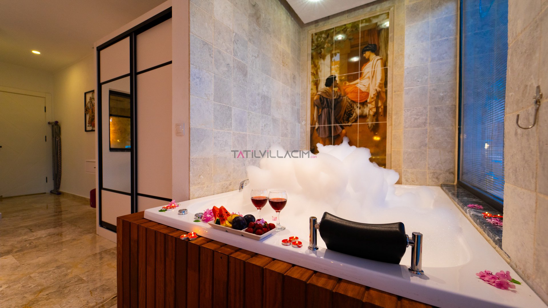 Villanın içerisinde yer alan Türk hamamı, sauna ve jakuzi, tatilinizi sıradanlıktan çıkararak size özel bir spa deneyimi sunar. Günün stresini atmak, bedeninizi ve ruhunuzu yenilemek için her detay özenle düşünülmüştür.