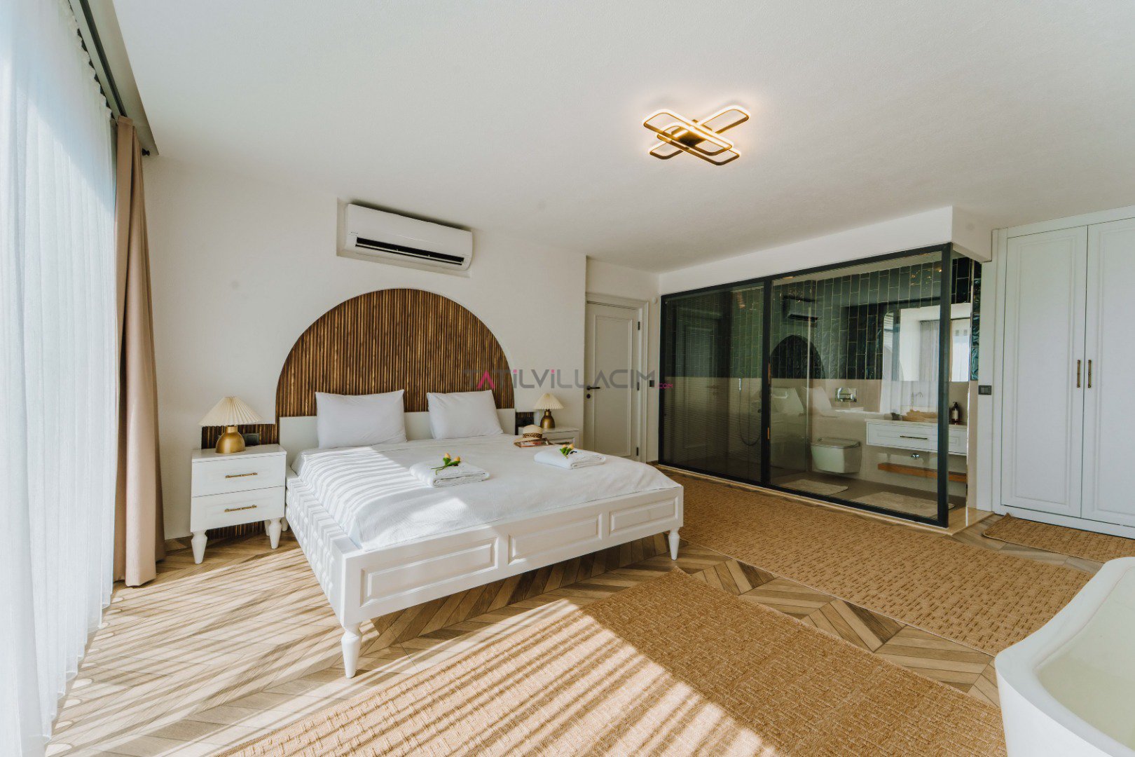 Gün doğarken Akdeniz’in kokusunu içinize çekip, akşam güneşi batarken denize karşı kahvenizi yudumlayabileceğiniz bu villa, konforlu iç tasarımı ve modern detaylarıyla beklentilerin ötesinde bir konaklama sunuyor. Tam korunaklı havuzu sayesinde, misafirler gönül rahatlığıyla mahremiyetlerini koruyarak yüzmenin tadını çıkarabilir.