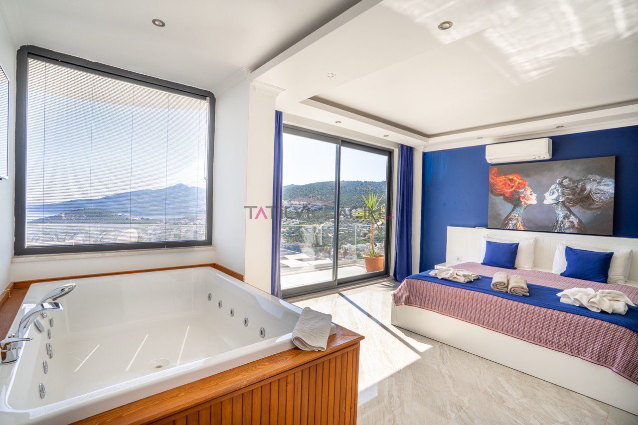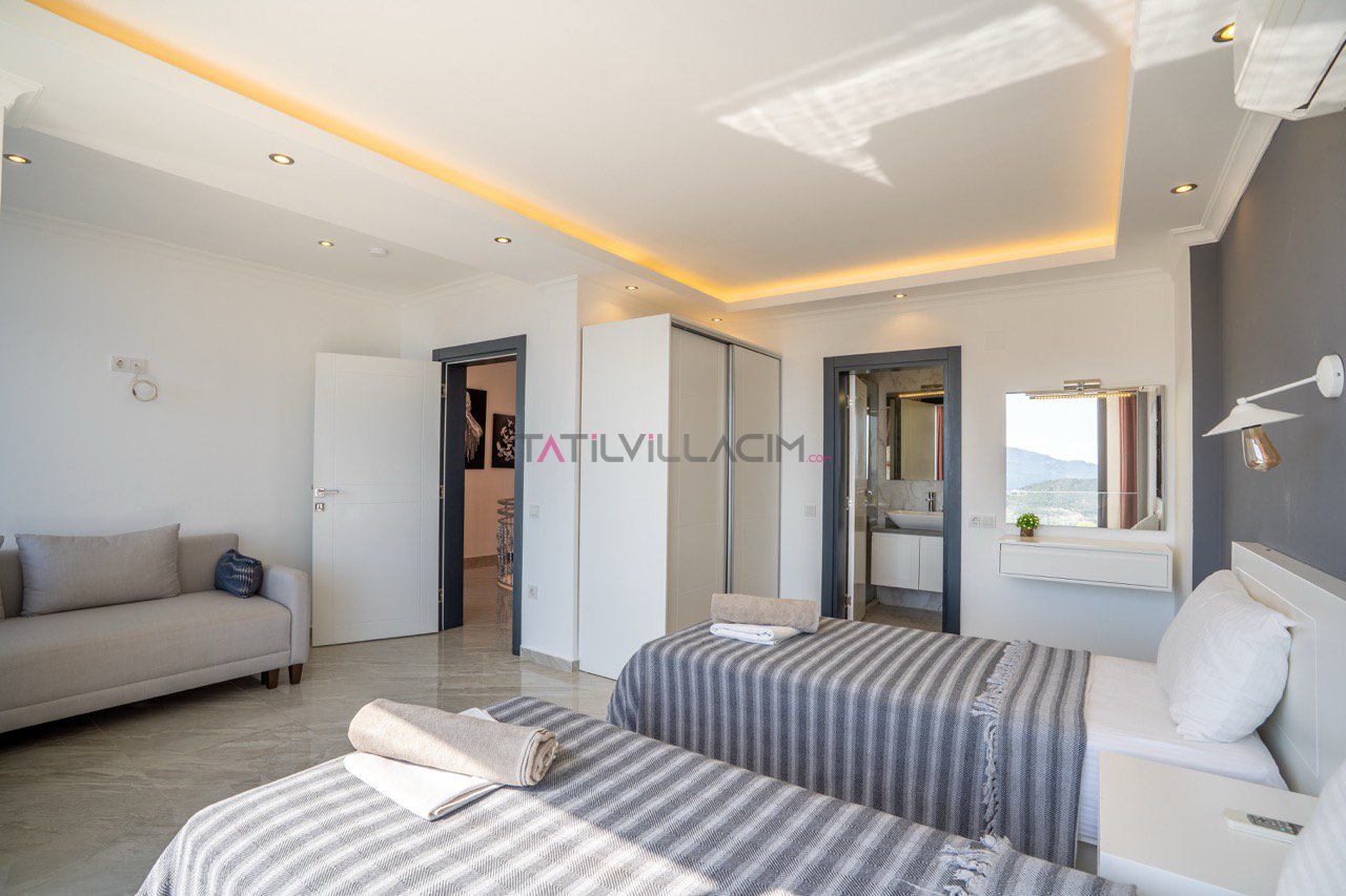 6 kişilik konaklama kapasitesine sahip olan villamızın 3 adet yatak odası, 3 adet banyosu ve 2 yatak odasında da çift kişilik jakuzi mevcuttur.