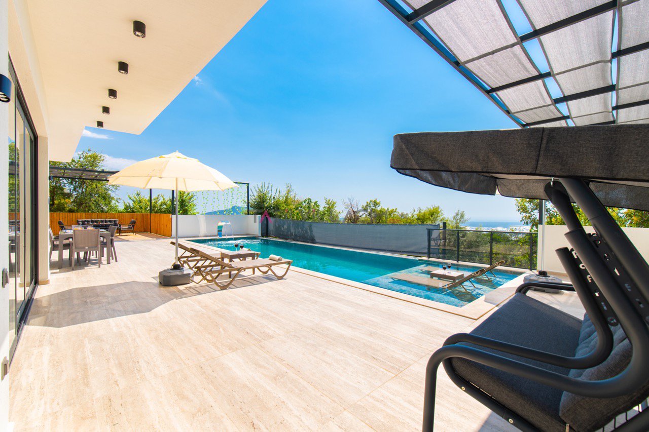 Villa Kaila, Kalkan Üzümlü Mevkii'nde yer alan, geniş aileler için ideal, deniz manzaralı ve jakuzili lüks bir villadır. Huzurlu bir tatil için mükemmel bir tercih olan bu villa, konforlu yaşam alanlarıyla unutulmaz bir deneyim sunar."