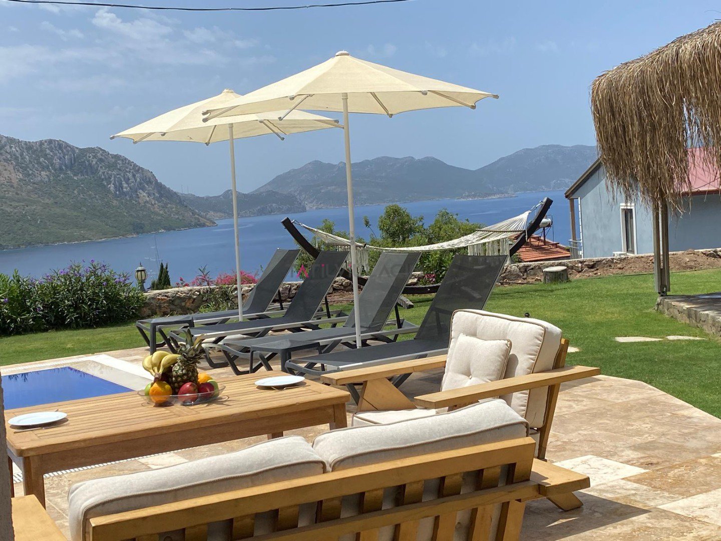 Villa Kızılcık Şerbeti, Marmaris’in sakin ve huzurlu beldesi Söğüt’te yer alan, deniz manzaralı, plaja yakın, jakuzili ve bahçeli özel bir tatil villasıdır.