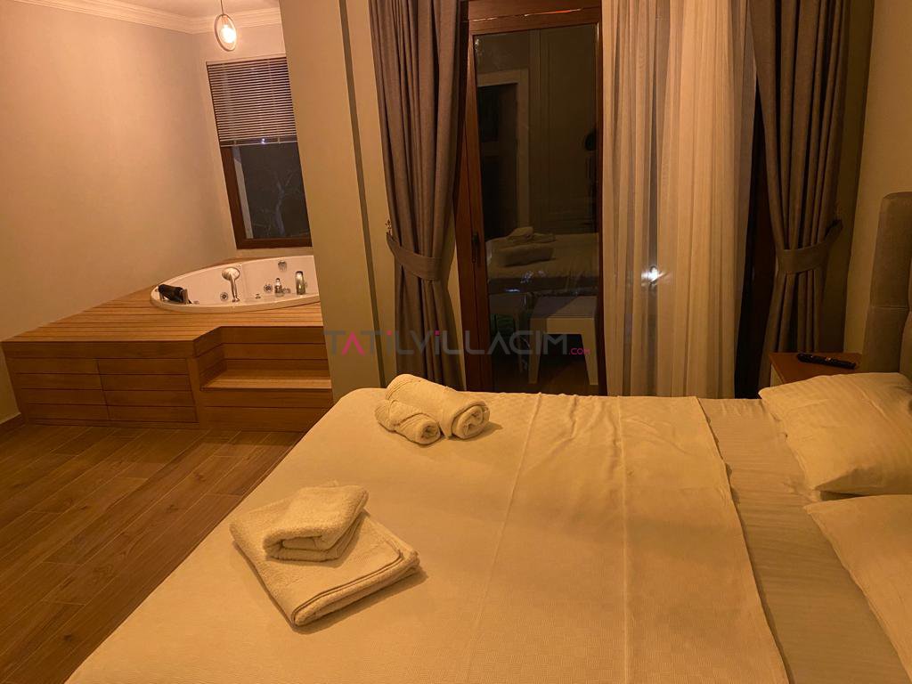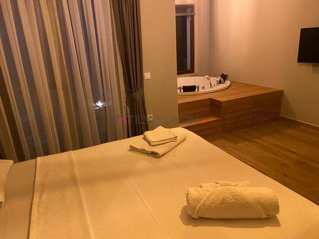 İki katlı olarak tasarlanmış villamızda 2 adet yatak odası ve her odada özel jakuzi yer almaktadır. Tam donanımlı mutfağı, ferah yaşam alanı ve doğayla iç içe büyük bir bahçesi bulunan Villa Kızılcık Şerbeti, deniz manzaralı çardağında keyifli sofralar kurabileceğiniz özel bir atmosfer sunar.