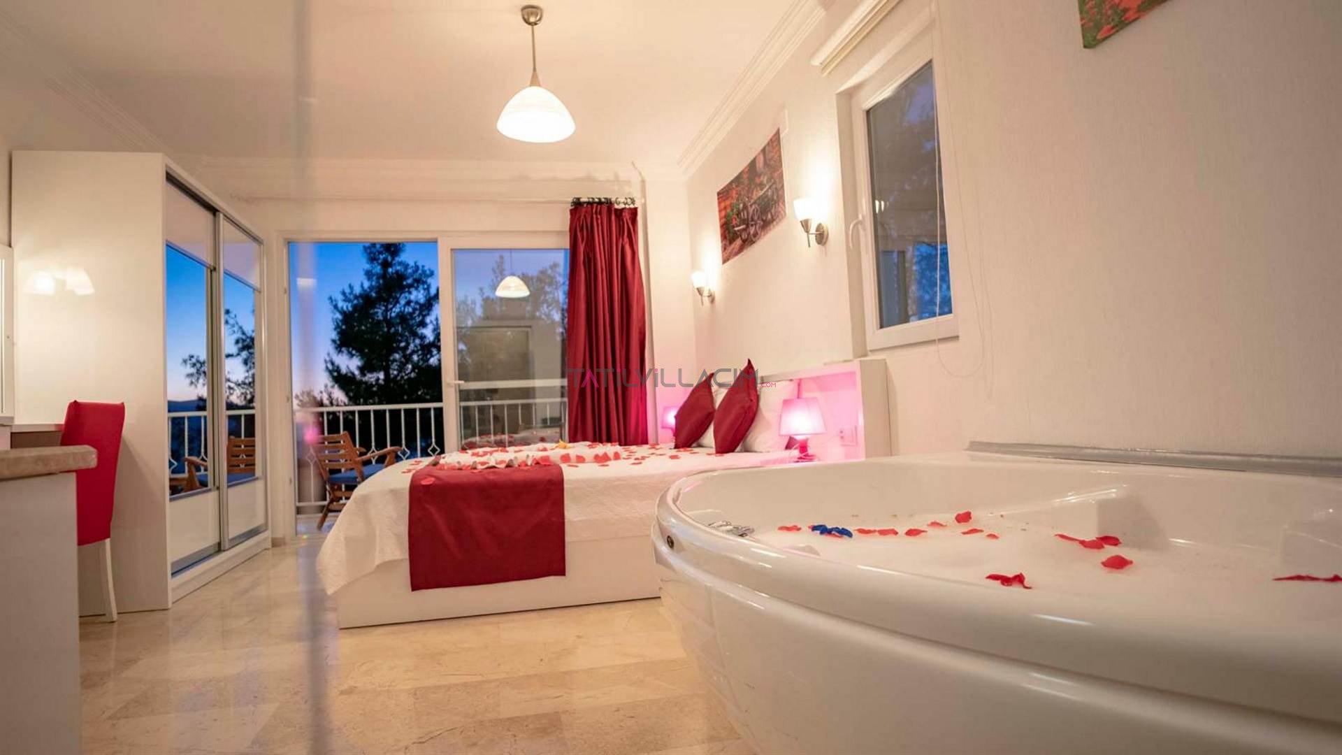 İki yatak odasıyla toplam 4 kişilik konaklama kapasitesine sahip olan Villa Kızılçık Şerbeti, konforlu ve şık iç tasarımıyla da misafirlerine ev sıcaklığında bir atmosfer sunar. Villanın yatak odasında yer alan jakuzi ise yıl boyunca biriken yorgunluğu geride bırakmanız ve tatilinizi daha keyifli hale getirmeniz için sizleri bekliyor.