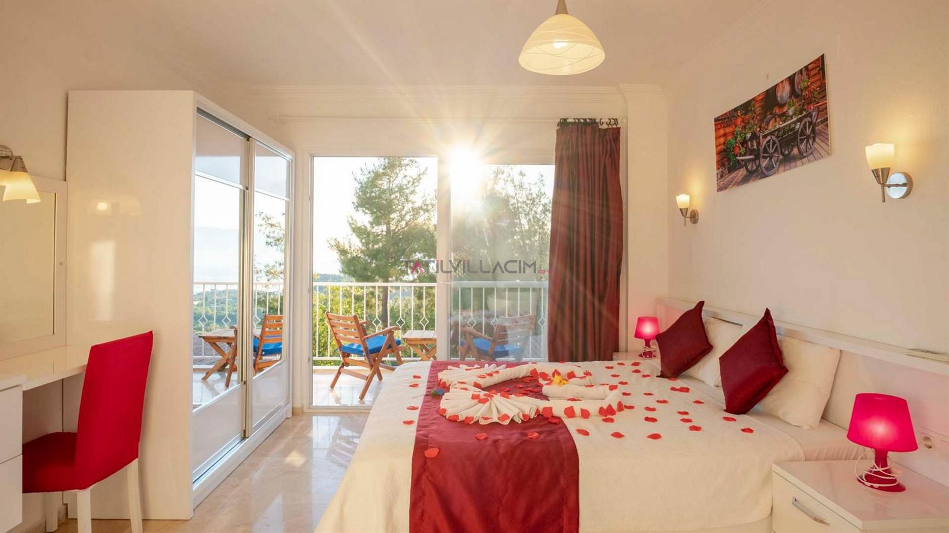Kalkan Üzümlü’nün doğayla iç içe, huzur dolu atmosferinde konumlanan Villa Kızılçık Şerbeti, şehir hayatının yoğun temposundan uzaklaşıp romantik ve sakin bir tatil hayal eden misafirler için özenle tasarlanmıştır. Doğanın dinginliğiyle çevrili bu özel villa, özellikle balayı çiftleri ve muhafazakâr aileler için konfor, mahremiyet ve huzuru bir arada sunar.