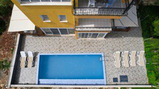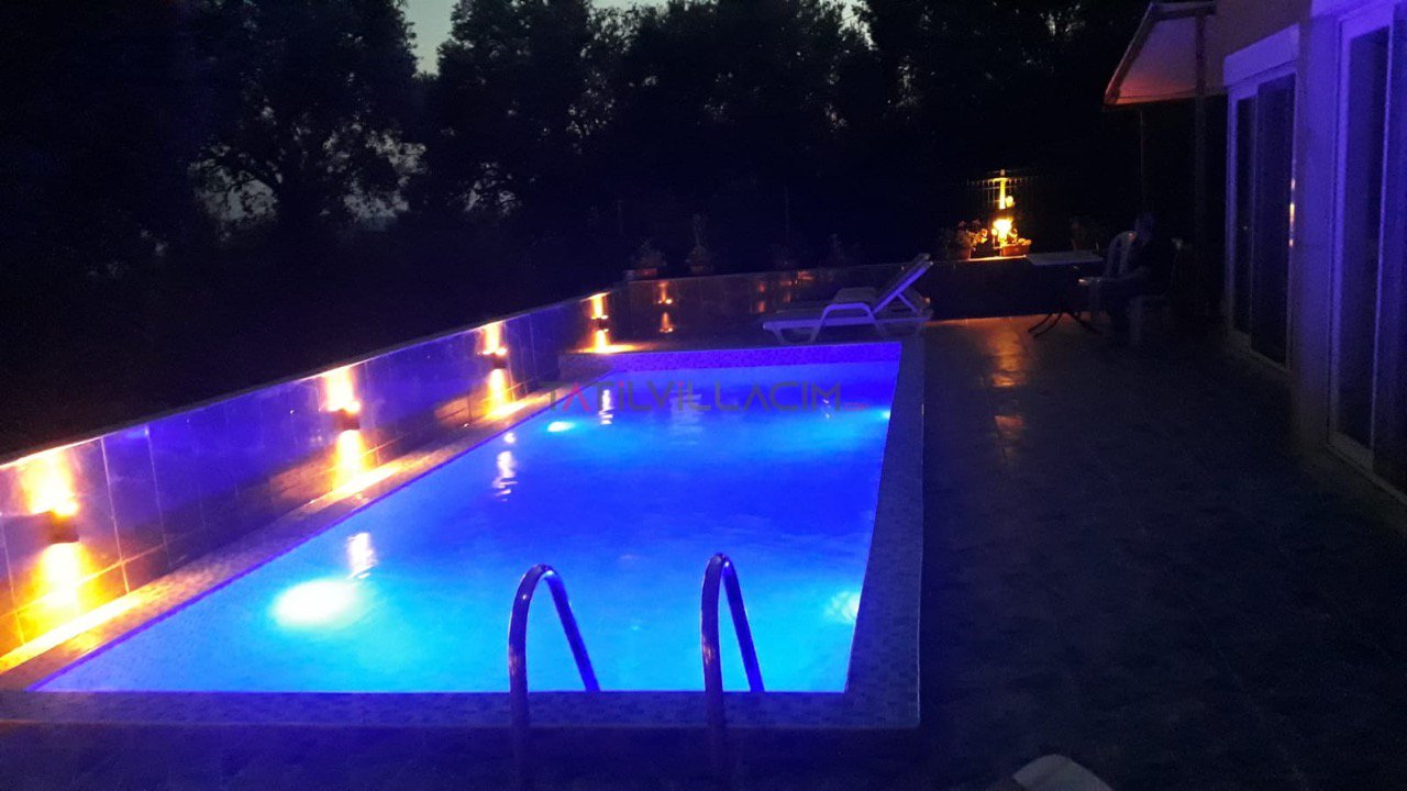 Villanın geniş özel yüzme havuzu gün boyu serinletici bir mola alanıyken, taş zeminli güneşlenme terasında kendinize ait sessizliği bulursunuz. İç mekânda ise modern mutfak ve konforlu salon, tatil boyunca evinizdeki rahatlığı aratmaz.