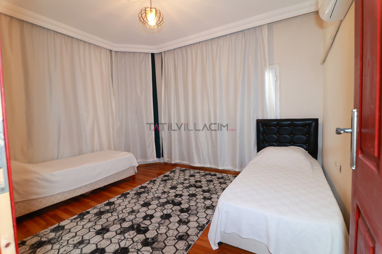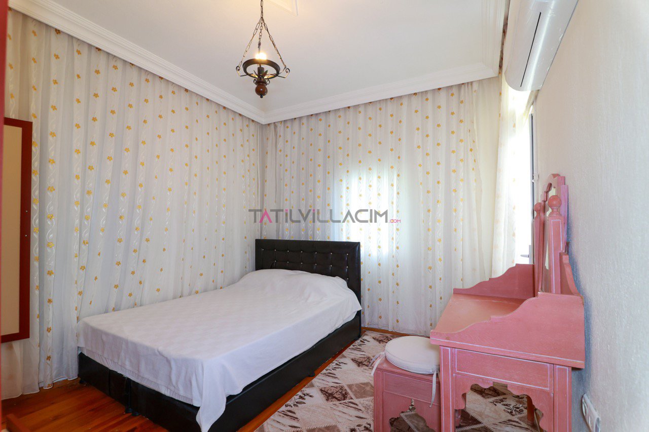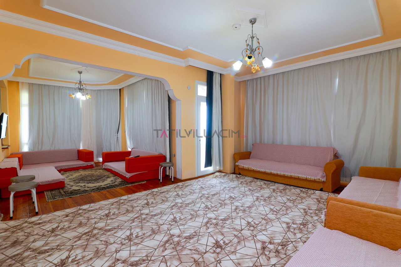 4 ferah yatak odası, 3 banyosu ve geniş iç yaşam alanları ile Villa Kumdağı, standart olarak 8 kişilik konaklama sunar. Ancak salonundaki geniş oturma grubu sayesinde toplam 12 kişiye kadar rahat bir tatil imkânı sağlar. Kalabalık gruplar ve çocuklu aileler için ideal bir alan planlamasına sahiptir.