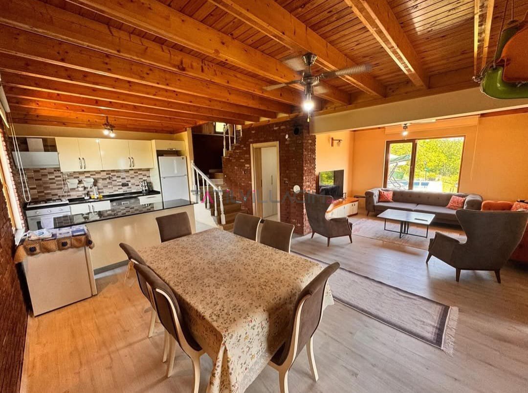 Geniş ve ferah iç yapısı, 4 yatak odası ve 8 kişilik kapasitesi ile kalabalık aileler veya arkadaş grupları için ideal bir konaklama sunar. Villanın sıcak atmosferi, günün her saatinde sizi sarar; sabahları doğanın içinde uyanmanın huzurunu, akşamları ateş çukurunun başında sohbet etmenin keyfini doyasıya yaşarsınız.
