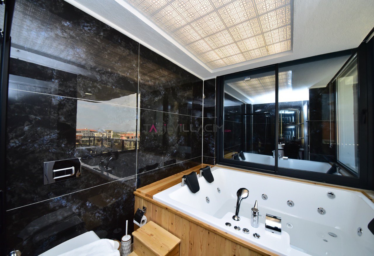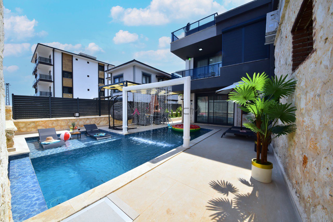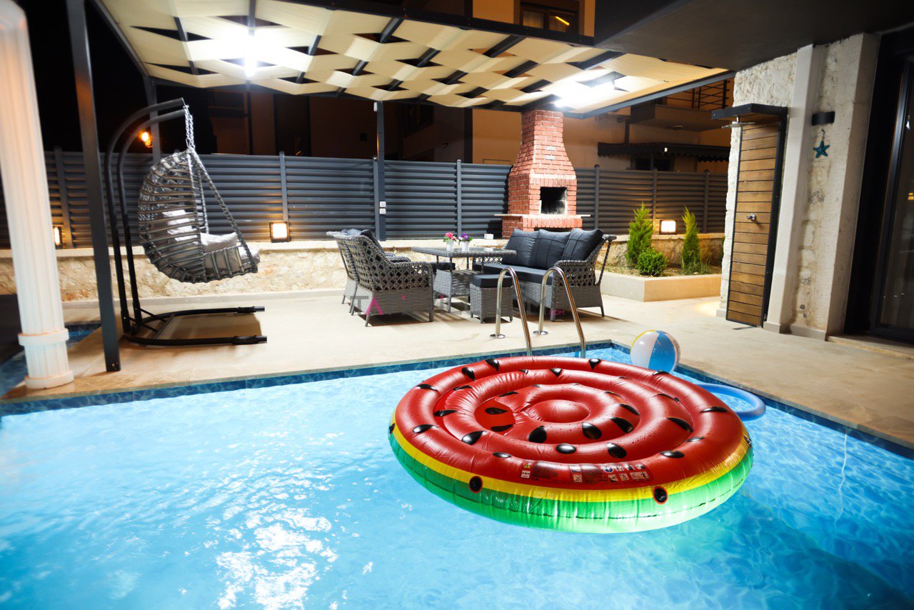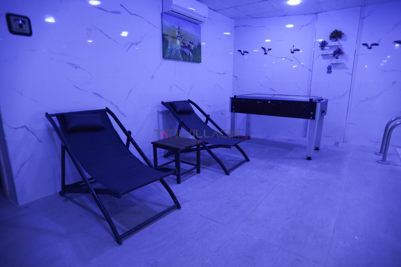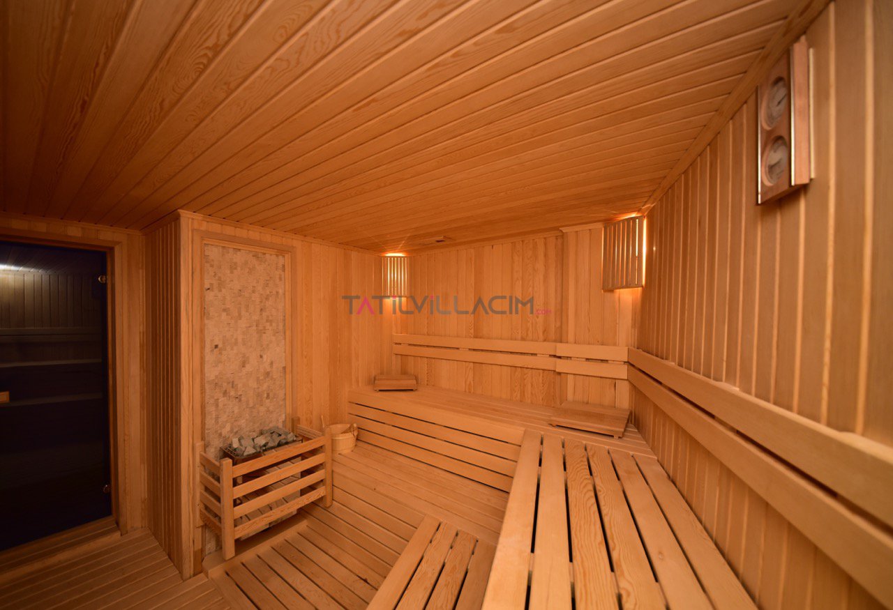 Dış alanda yer alan özel yüzme havuzu, tatilinizin en keyifli anlarına ev sahipliği yaparken, entegre sığ havuz hem çocuklar hem de dinlenmek isteyen misafirler için idealdir. Villanın iç kısmında ise kapalı havuz, sauna ve jakuzi yer almakta olup, misafirlerine dört mevsim boyunca benzersiz bir rahatlama deneyimi sunar.