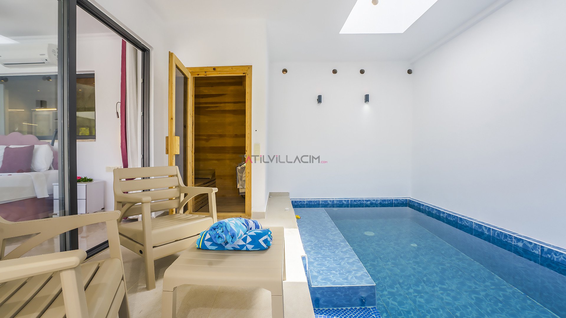 Yalnızca yaz aylarında değil, kış mevsiminde balayı tatili planlayan misafirlerimiz için de oldukça cazip olan villamızda ısıtmalı kapalı havuz ve sauna bulunmaktadır. Modern Amerikan mutfağa sahip Villa Mel’de tüm odalar havuz alanına direkt çıkışlı olarak tasarlanmıştır.