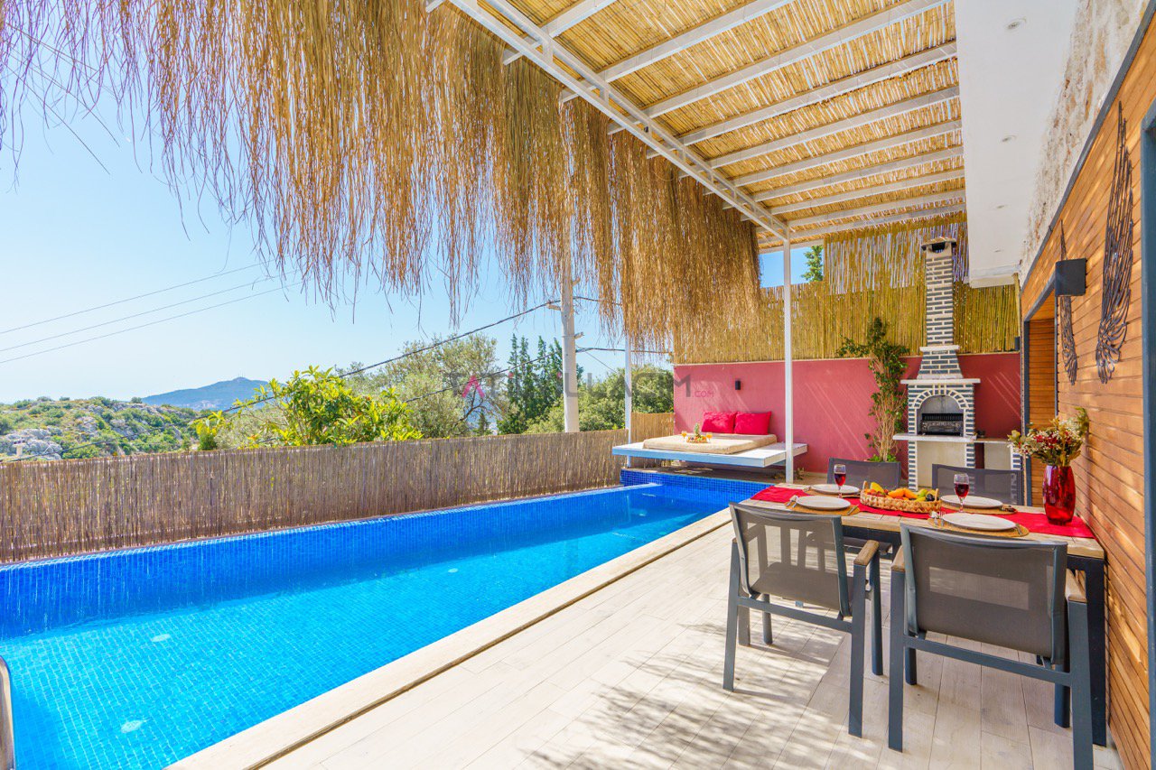 Kalkan Ordu bölgesinde bulunan Villa Mira Queen 2 kişi konaklama kapasitesine sahip tatil villasıdır.Havuz çevresi korunaklı olan villamızda tüm detaylar şık ve modern bir şekilde tasarlanmıştır.Şehir merkezinede oldukça yakın bir konumda yer alan villamızda ulaşım da kolaylıkla sağlanmaktadır.Tatiliniz boyunca ihtiyacınız olan tüm ekipmanlar villamızda bulunmaktadır.